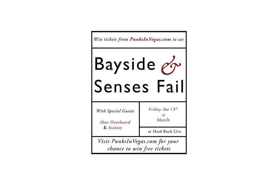 Punks in Vegas has teamed up with Hard Rock Live to give away a free pair of tickets to see Bayside, Senses Fail, Man Overboard and Seaway on March 13.