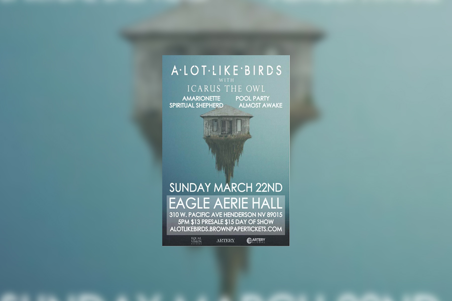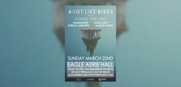 Punks in Vegas has teamed up with Pulsar Presents to give away a free pair of tickets to see A Lot Like Birds, Icarus The Owl, Amarionette, Spiritual Shepherd, Pool Party, Almost Awake March 22 at the Eagle Aerie Hall.