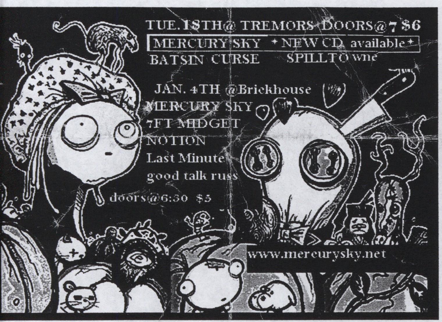 Thanks to Aaron Bautista for providing the Mad Caddies and 7 Angels 7 Plagues flyers and to the members of Mercury Sky for their flyer!