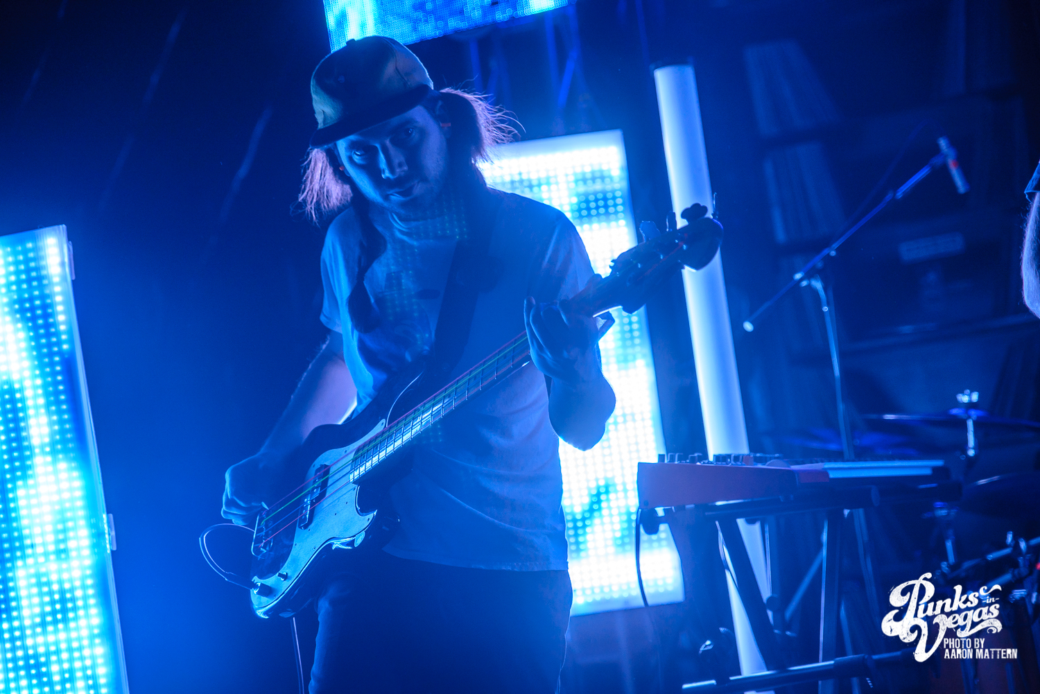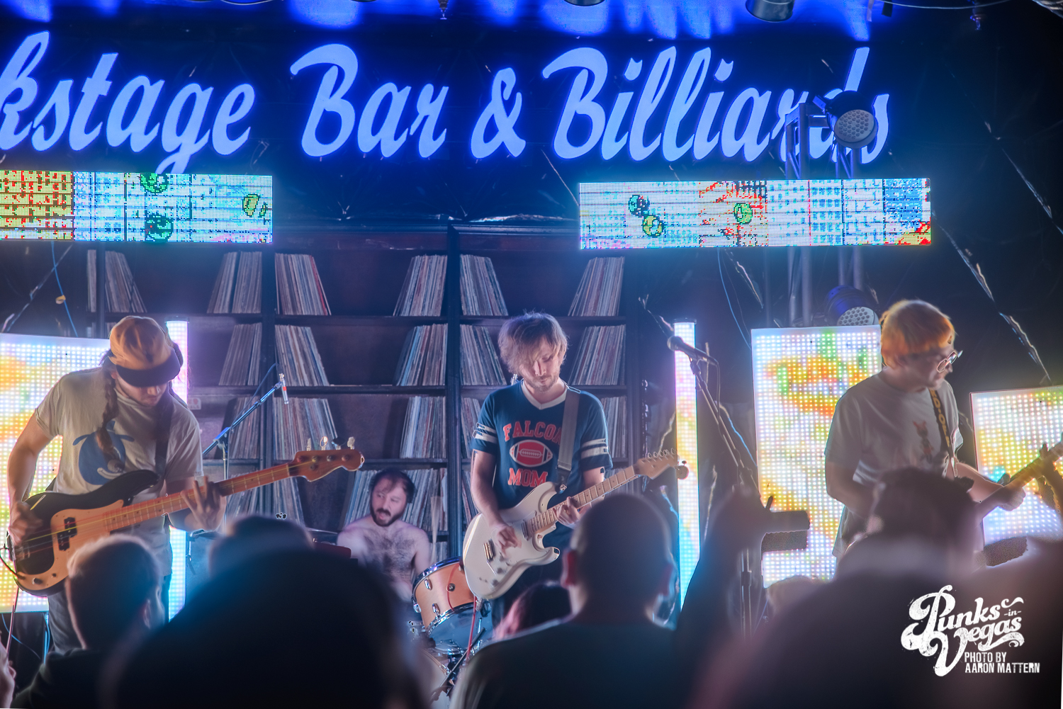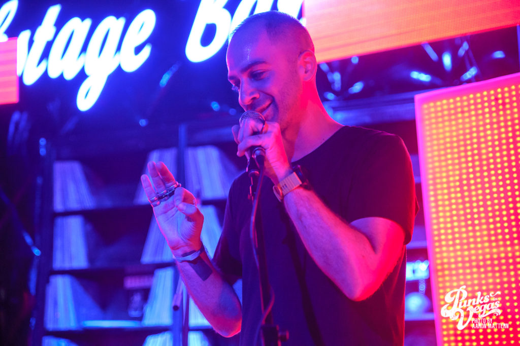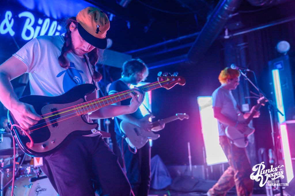 Berkman and company – guitarist Ary Warnaar, bassist James DeVito and drummer Luke Silas – seemed shocked and visibly happy at the turn out, and to be honest, so was I. I’m admittedly not tuned in (no pun intended) at all to the chiptune scene in Vegas, even though I do enjoy the music, so I had no idea what to expect. With no expectations, I was pleasantly surprised to see Backstage Bar closer to capacity than I had ever seen it outside of a Punk Rock Bowling club show.