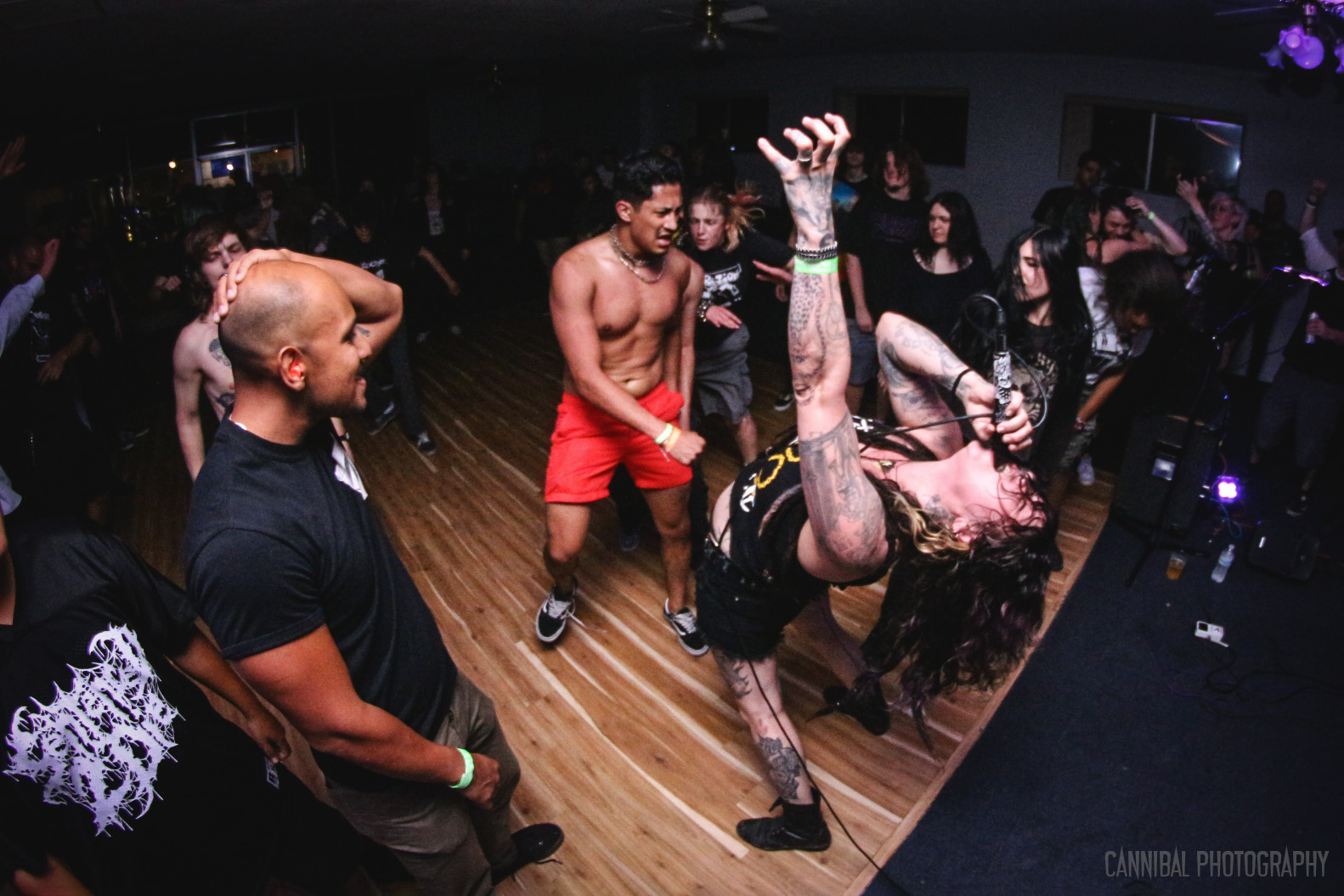 The setup at Post 8 is always a little different depending on who booked the show. This night they were rocking no stage, you basically walked into ‘stage left’ and had to shimmy your way across the wall or get swallowed into the crowd. I walked in during HpH’s set. I promised to never say a kind word about them, so here are some objective facts. There was a full-blown pit during what I caught of their set. People were singing along with the band. This has been my experience over the many years I have seen them. This would lead one to believe that this long-standing Vegas staple has historically and to date appealed to some contingent of Vegas folks.