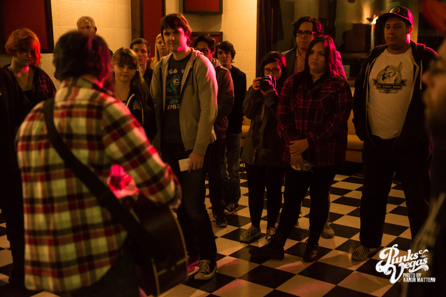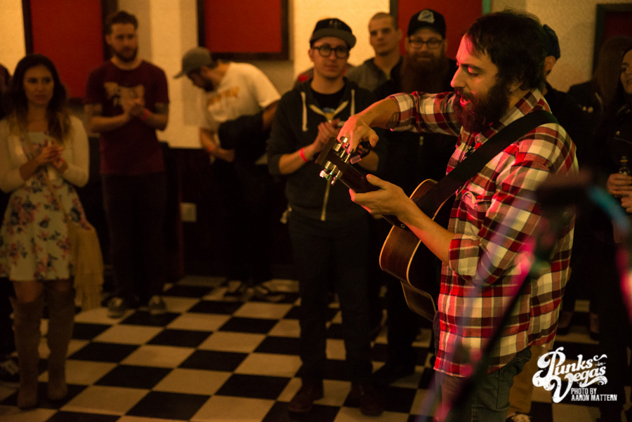 Standing in front of the “stage” with no microphone, he is a warm presence, regaling the crowd of around 20 or so with stories of growing up, staying stupid, failed relationships and seeing Anti Flag in the same venue a year ago. And when he encouraged people to sing along, such as the chorus of “Pet Sematary,” he’s rivaled only by Koji in making it feel natural and not forced.