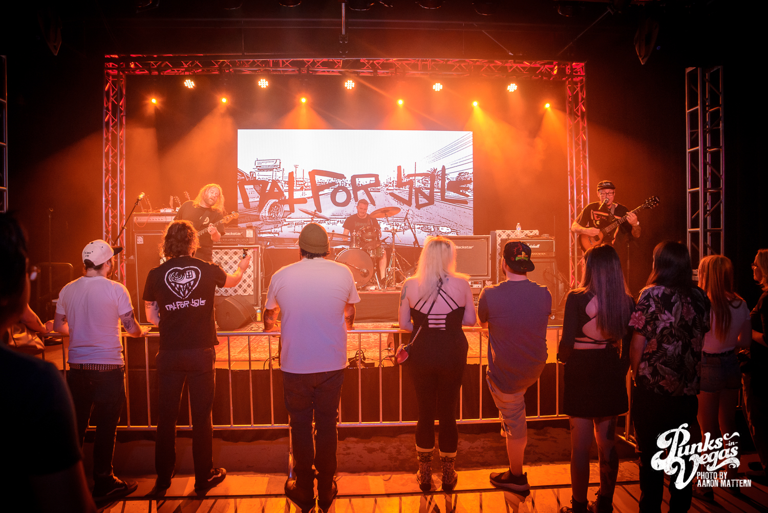 First band to start off the show was Vegas’ own Not For Sale. They’re made up of several members from other bands in town including Asteroid-M owner Cody Leavitt, and Anti-Vision’s Robbie Malvin. They had great energy, combining ska/reggae elements into their punks songs. Behind them during the full set, a video looped superimposing their logo over black and white Hellcat Records-esque POV footage driving down the streets of Vegas. Maybe they only prepared it for The Space… but it was quite effective at sharing the band’s name and giving them a great backdrop. They definitely got everyone started for a good night.