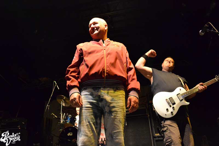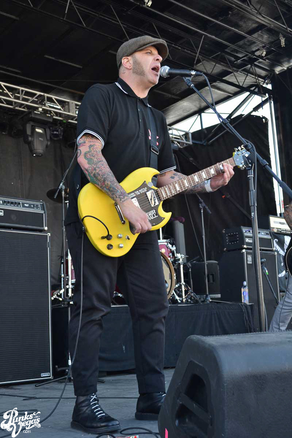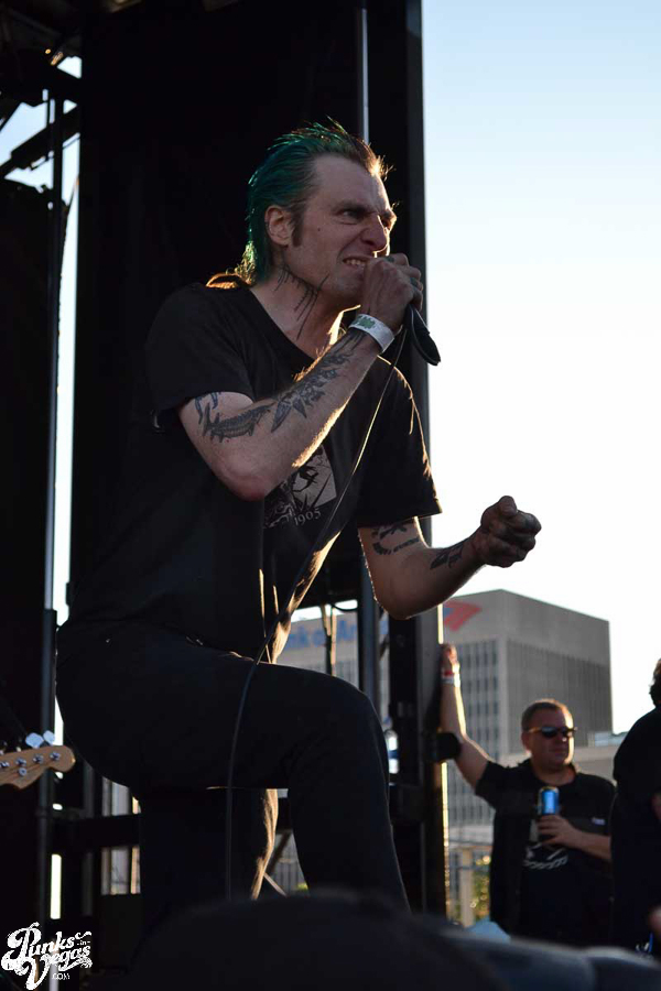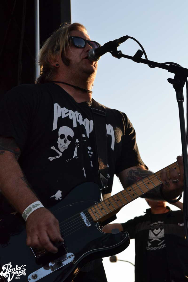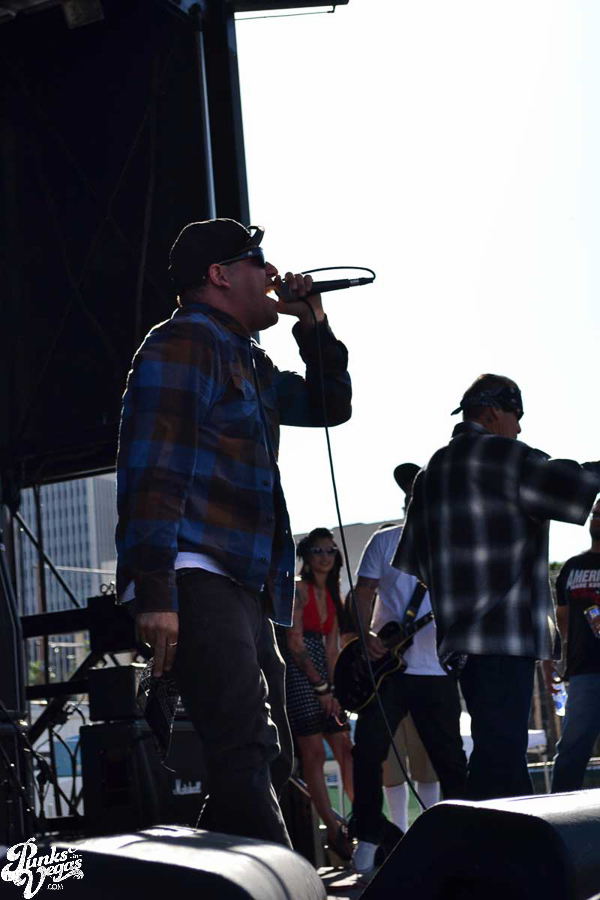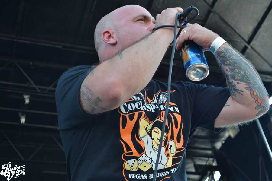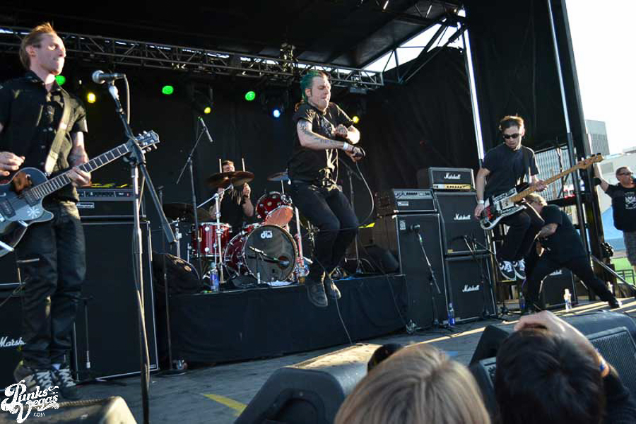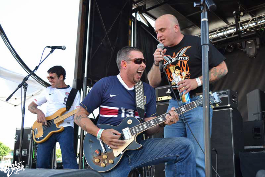 The final day of Punk Rock Bowling started with bluegrass punks Old Man Markley playing a pool party at the Gold Spike. Over on the blacktop at Fremont East, the music festival was well underway with Stagger and Fall, Reducers SF, Citizen Fish, Manic Hispanic, The Dwarves, Leftover Crack, Agnostic Front, and finally Cock Sparrer, who expressed excitement to be playing their first shows ever in Vegas.