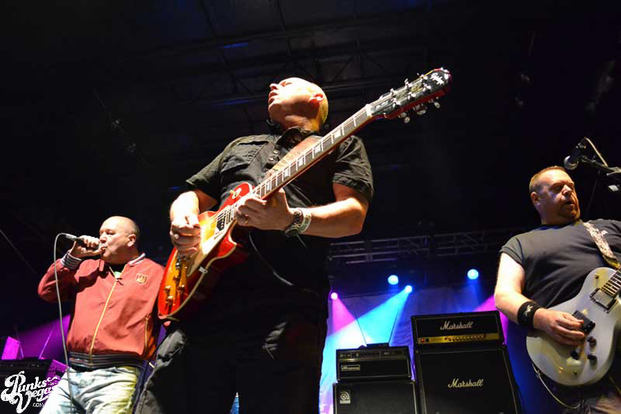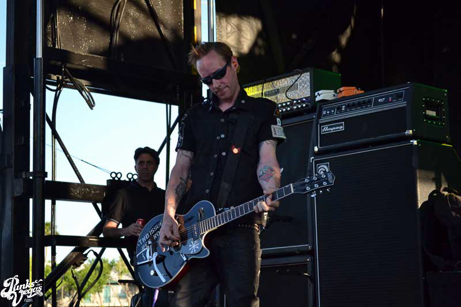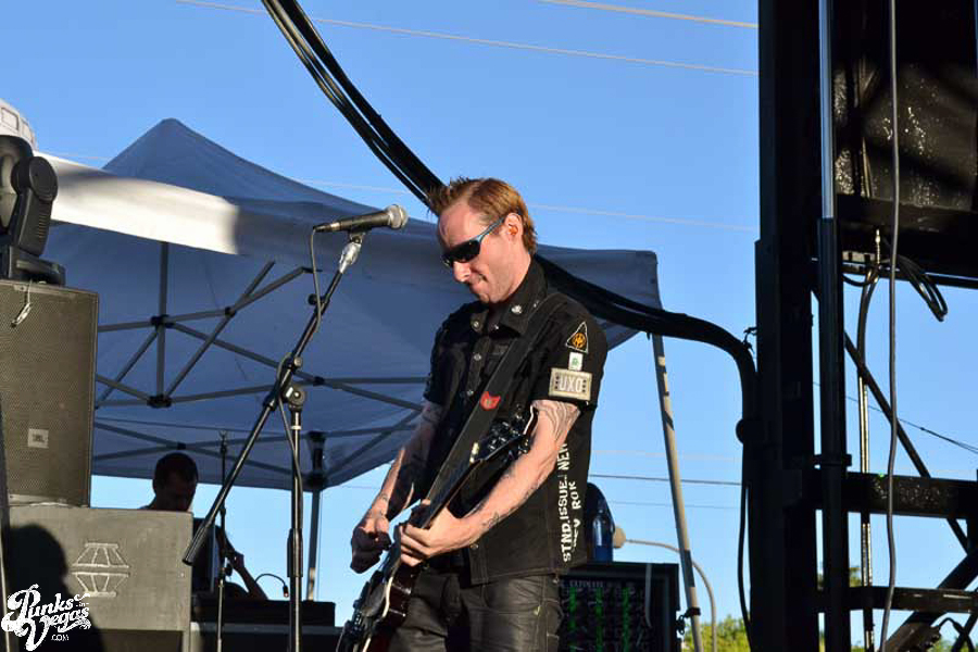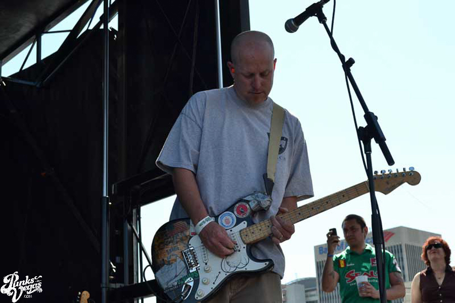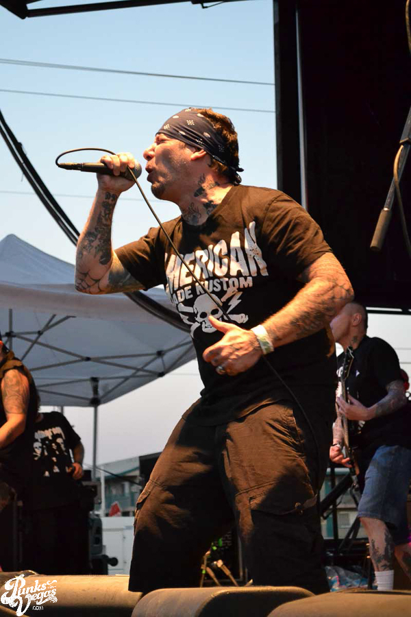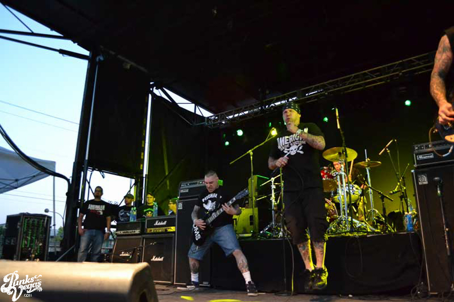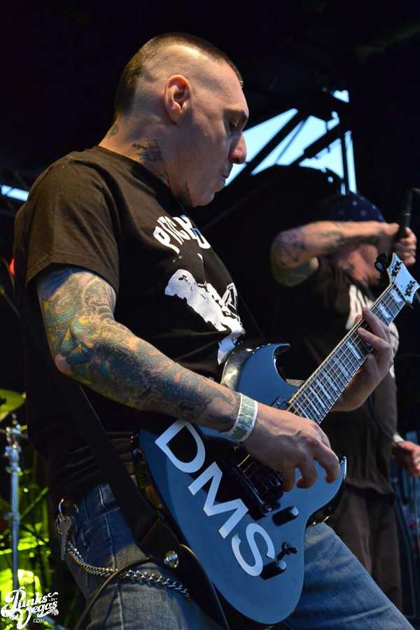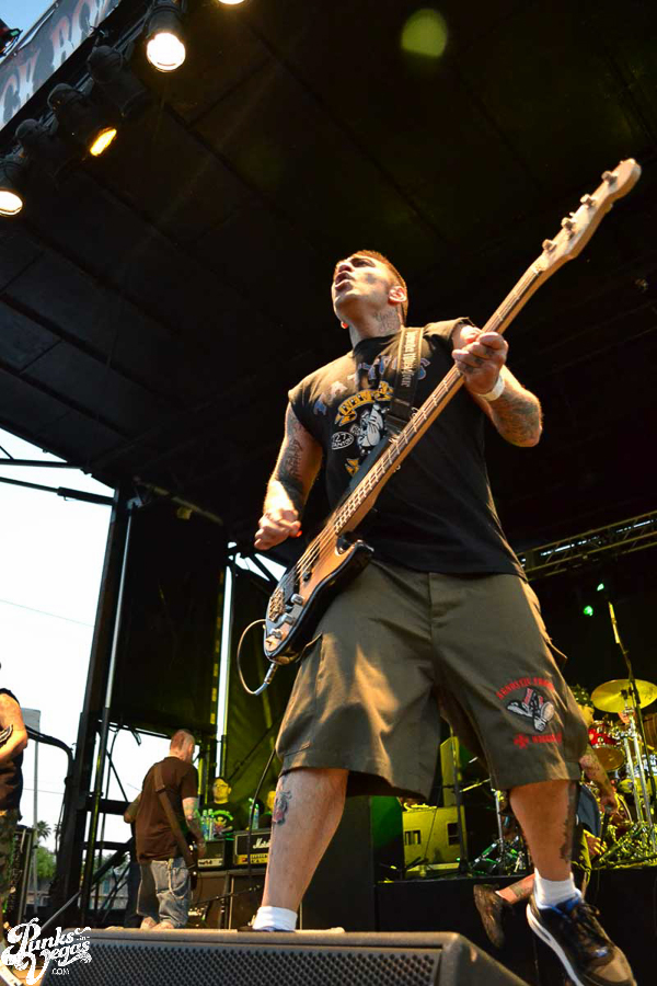 The final day of Punk Rock Bowling started with bluegrass punks Old Man Markley playing a pool party at the Gold Spike. Over on the blacktop at Fremont East, the music festival was well underway with Stagger and Fall, Reducers SF, Citizen Fish, Manic Hispanic, The Dwarves, Leftover Crack, Agnostic Front, and finally Cock Sparrer, who expressed excitement to be playing their first shows ever in Vegas.
