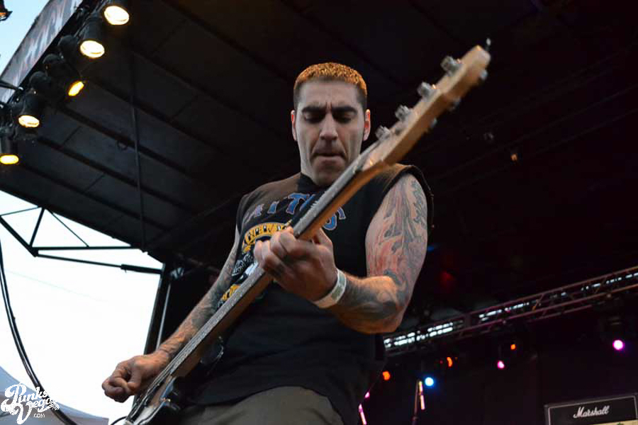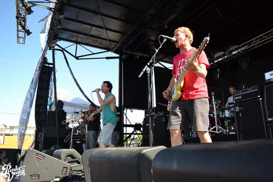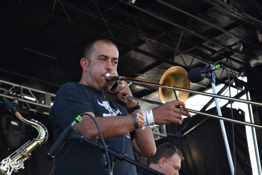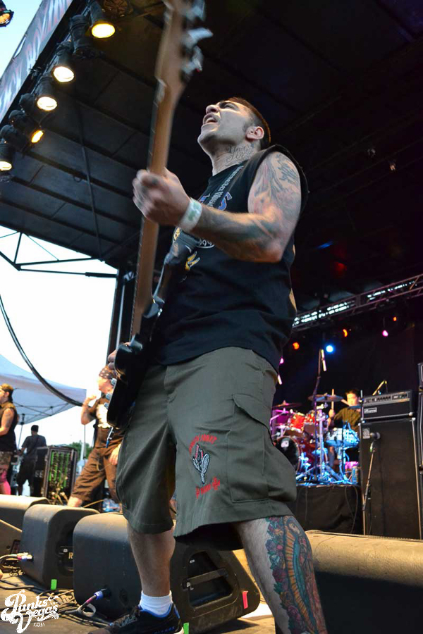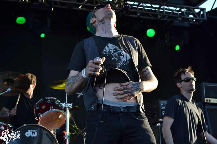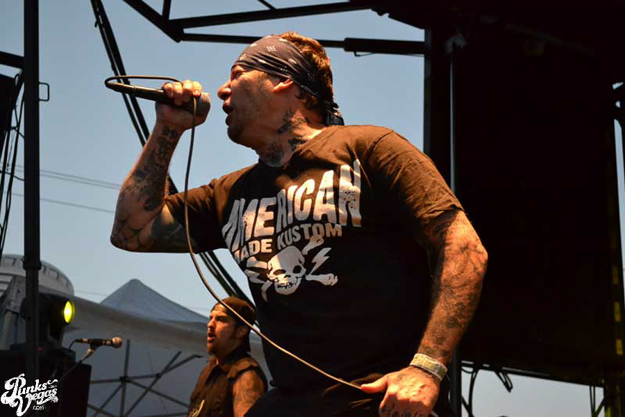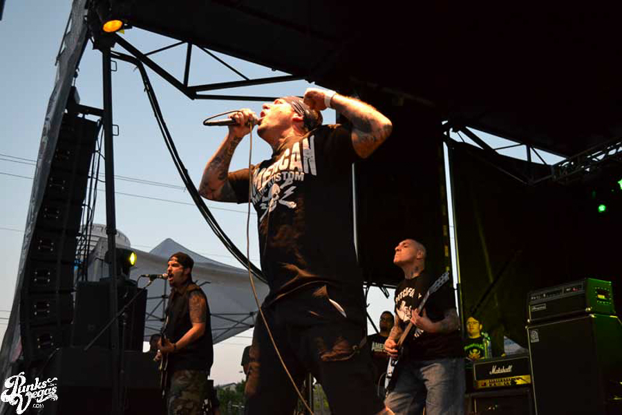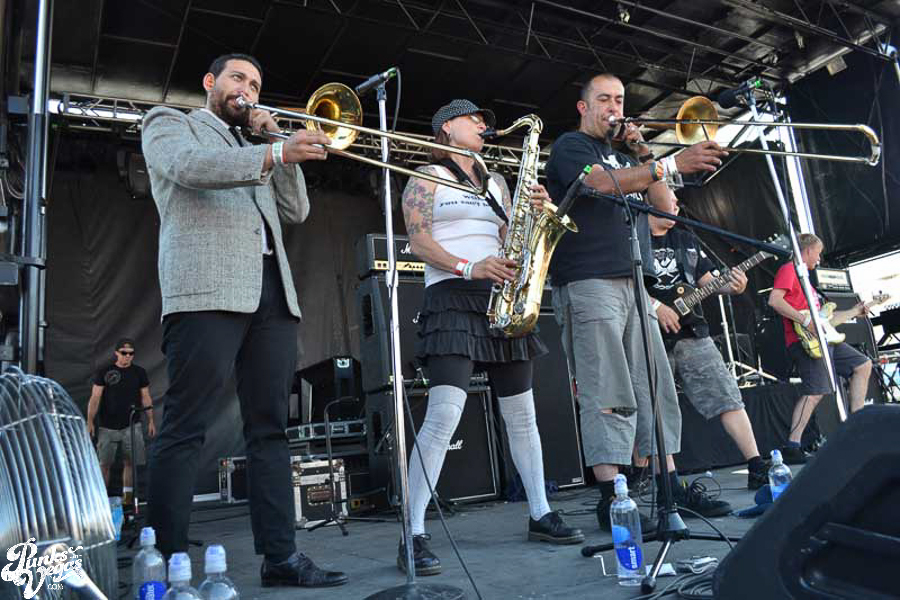 The final day of Punk Rock Bowling started with bluegrass punks Old Man Markley playing a pool party at the Gold Spike. Over on the blacktop at Fremont East, the music festival was well underway with Stagger and Fall, Reducers SF, Citizen Fish, Manic Hispanic, The Dwarves, Leftover Crack, Agnostic Front, and finally Cock Sparrer, who expressed excitement to be playing their first shows ever in Vegas.