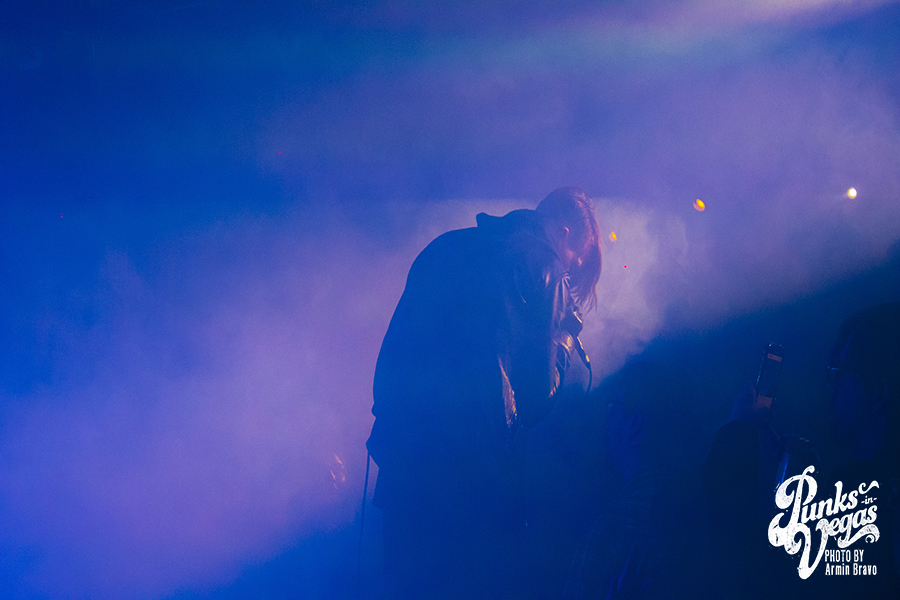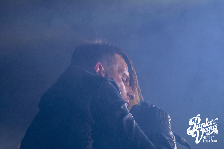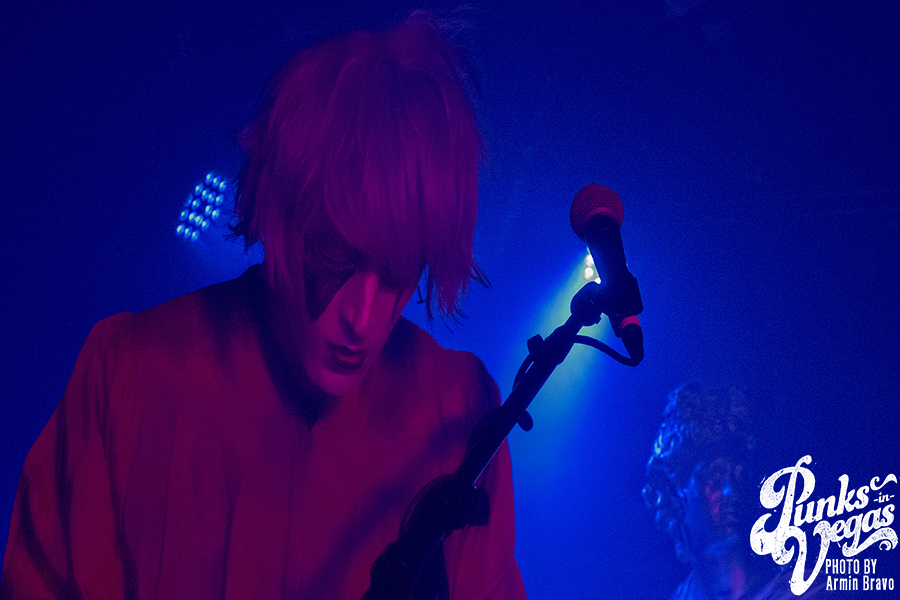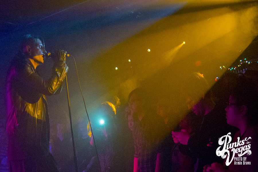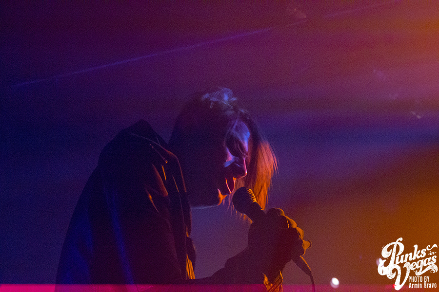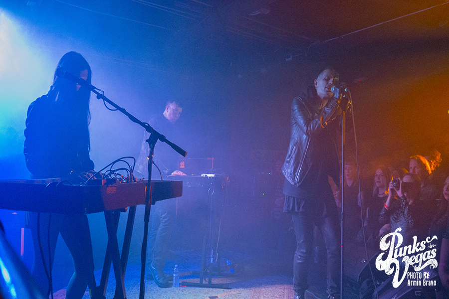 Fast forward to Jan. 12 at the Bunkhouse Saloon in Vegas, and I was about to see Cold Cave again, under much different circumstances of 47 degree weather. DJ Allen warmed up the crowd, setting the mood with a mix of postindustrial and punk. As the hand of the clock hit 11 p.m., Drab Majesty, a two piece band, hit the stage in face paint, surrounded by miniature Greek statues. Fifteen minutes into their set, with the venue completely shrouded in fog, they’d gained new fans in Las Vegas with their shoegaze sound and excellent stage presence.