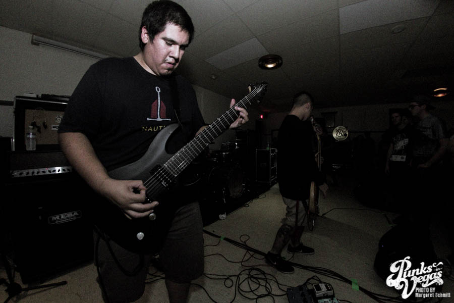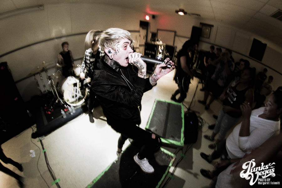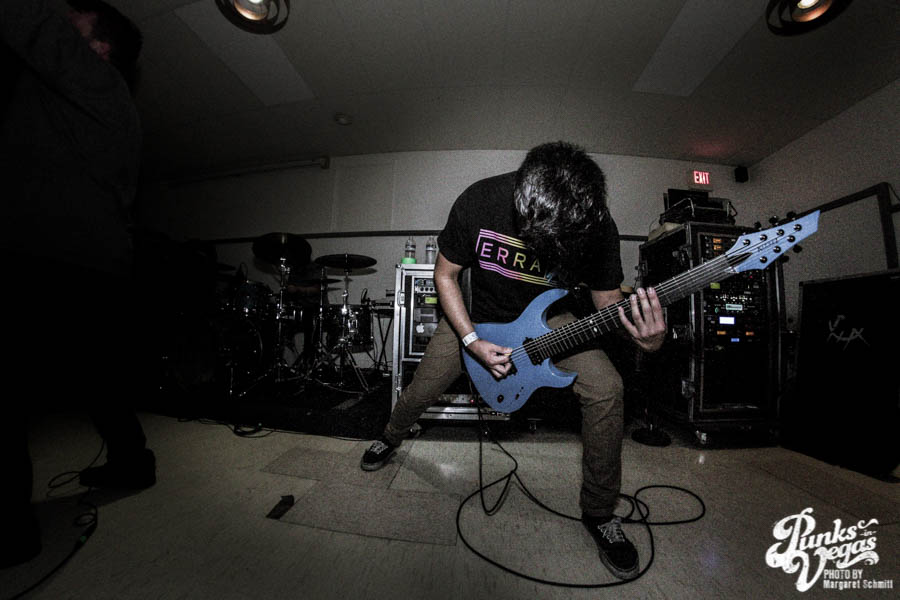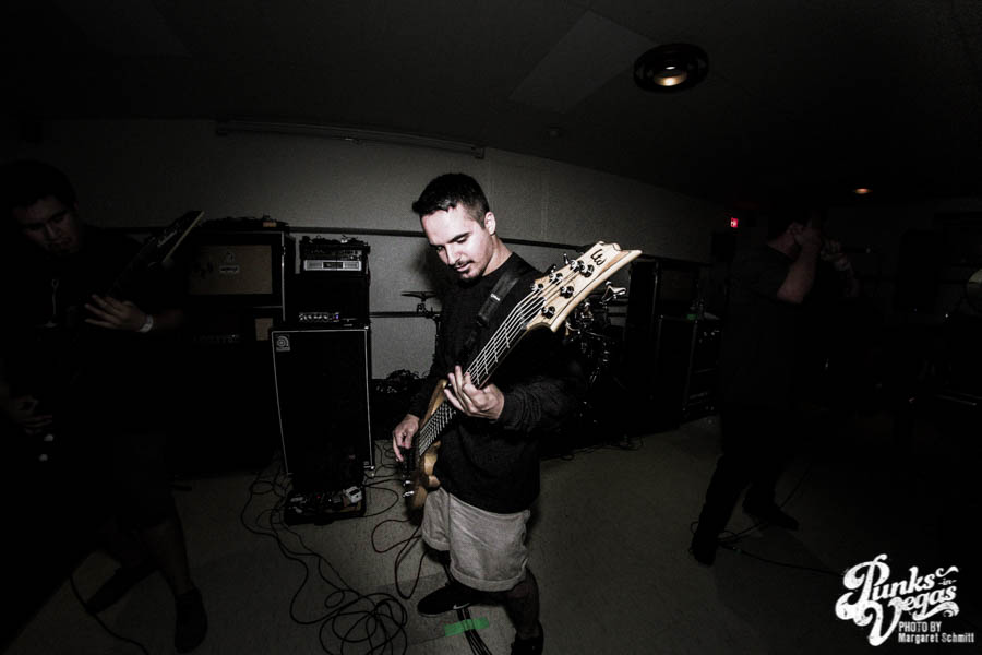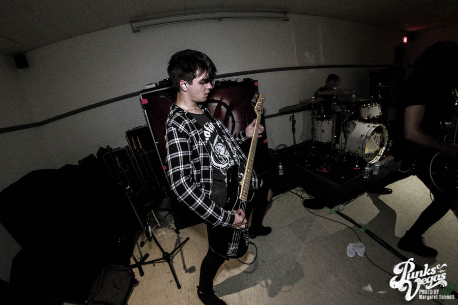 Starting off the night was local metalcore band A Fight at Daybreak. I noticed all their instruments were wireless which made it easier for them to walk around, and they definitely took advantage of this, moving into the crowd throughout their set as the audience banged their heads.