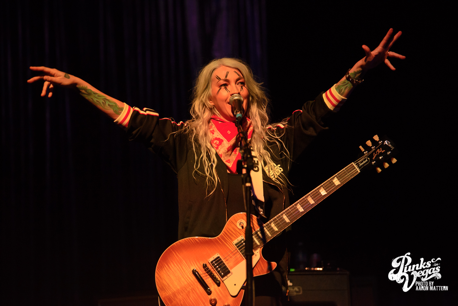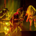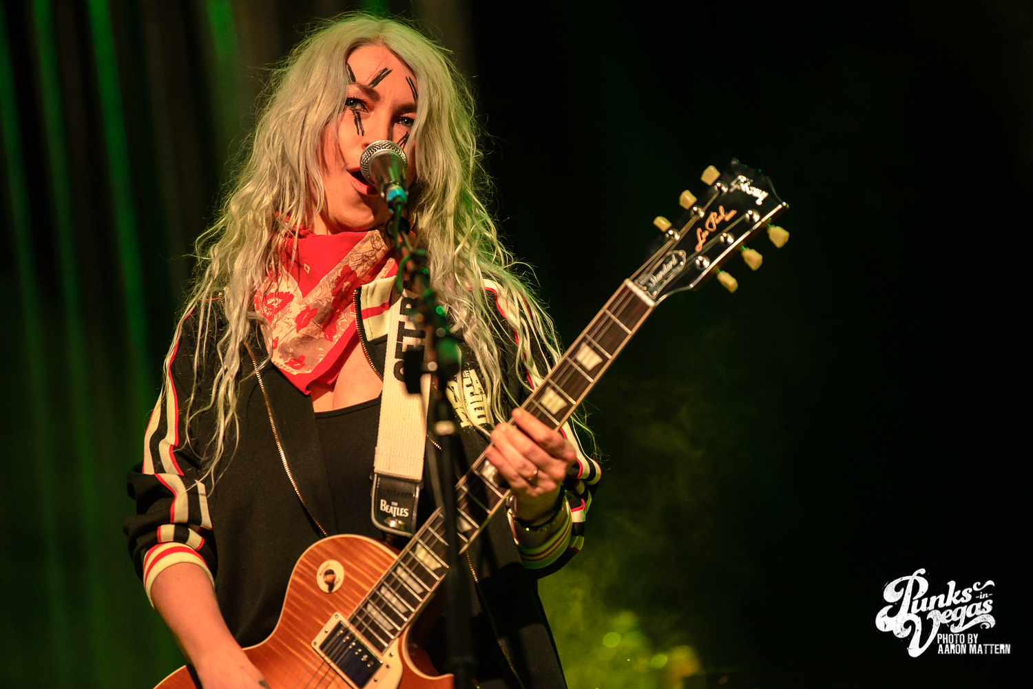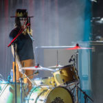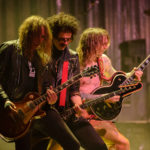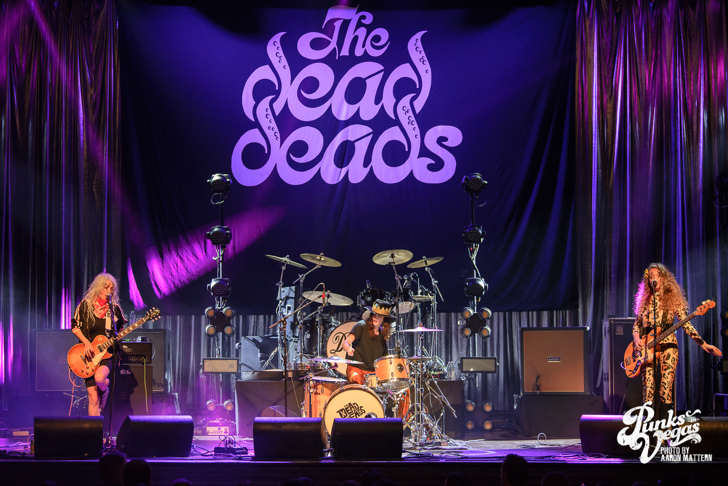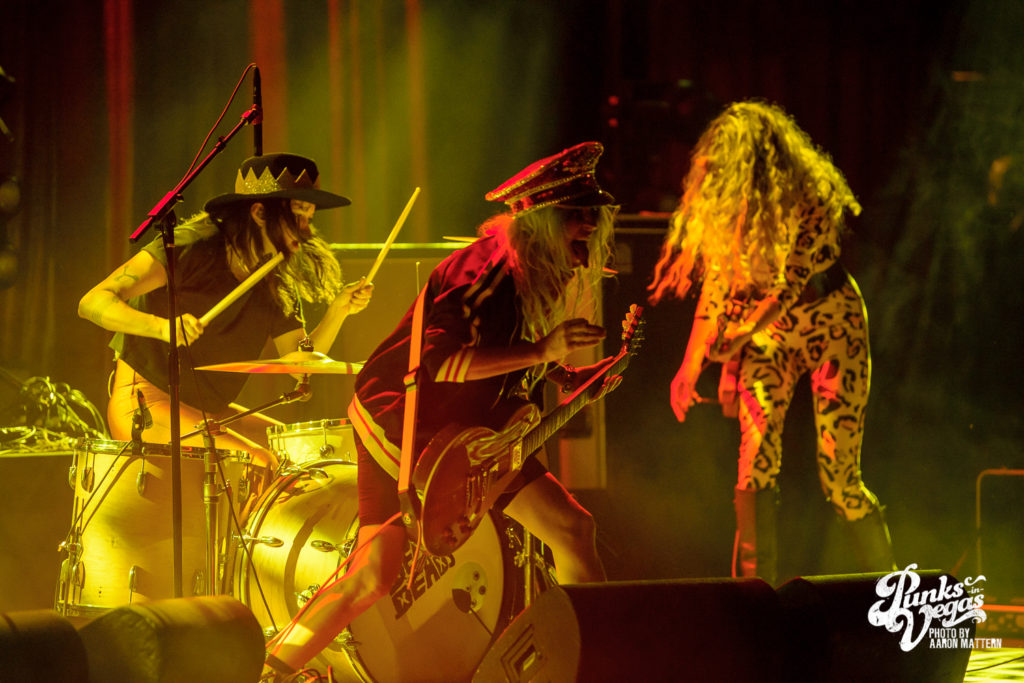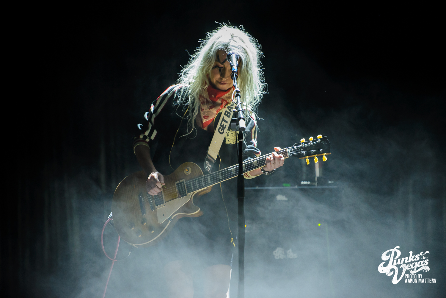 Filling out their opening spot was Nashville’s The Dead Deads, whom I had never heard of at all before. I had no idea what to expect from an opening band for the Darkness, but these three women were so intriguing to watch. Dressed in loud bright clothes, hats, some animal print and with X’s painted in black over their eyes, their image juxtaposed perfectly with their music which is heavy rock n roll with an indie, grungy, vibe. Singer Meta Dead’s voice has a deep, guttural tone which was a big hit with the crowd. The people really loved them and there were many people in the crowd singing along which was cool to see.