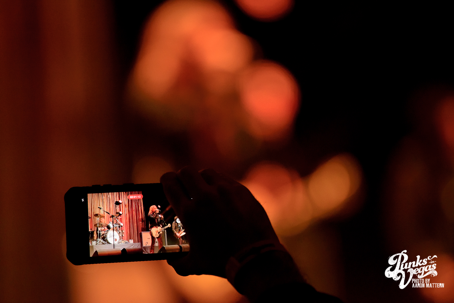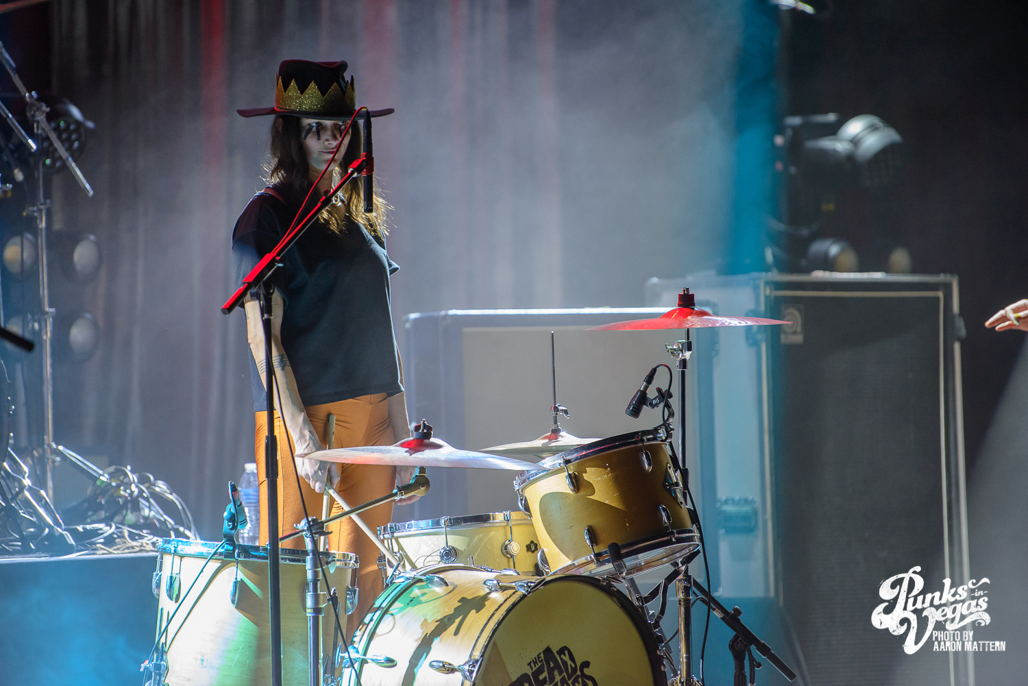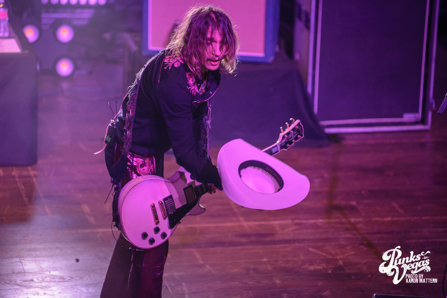 Despite an outfit that was already pretty close to perfect, throughout their set singer Justin borrowed various items of clothing from the audience. A majority of the show he played barefoot, but during one song was given a pair of checkered vans, and in another song a cowboy hat. Though complimenting his outfit perfectly, he wasted no time jokingly talking shit to the fan that threw it on stage for having such a small head.