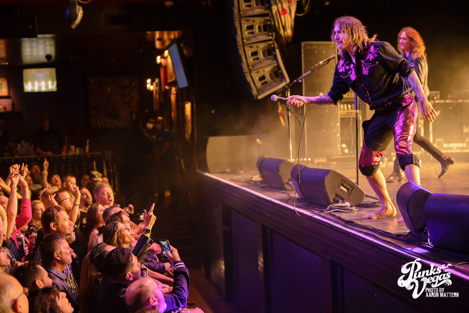 The House of Blues started to get a little more packed at this point, and the crowd started piling onto the floor, anticipating The Darkness finally playing a show two years in the making (original dates had been canceled due to the pandemic). Singer Justin Hawkins made an impressive entrance as he burst from the back in sparkly pink chaps over tight black pants and started to sing his heart out. After the first few songs he began a chant “ give me a D!” “Give me an Arkness! “We are the mother fucking Darkness!!! which made the crowd get even more into the performance, me included. I love a good cheer. The crowd was singing every word, dancing, and everyone was having a great time, the band included.