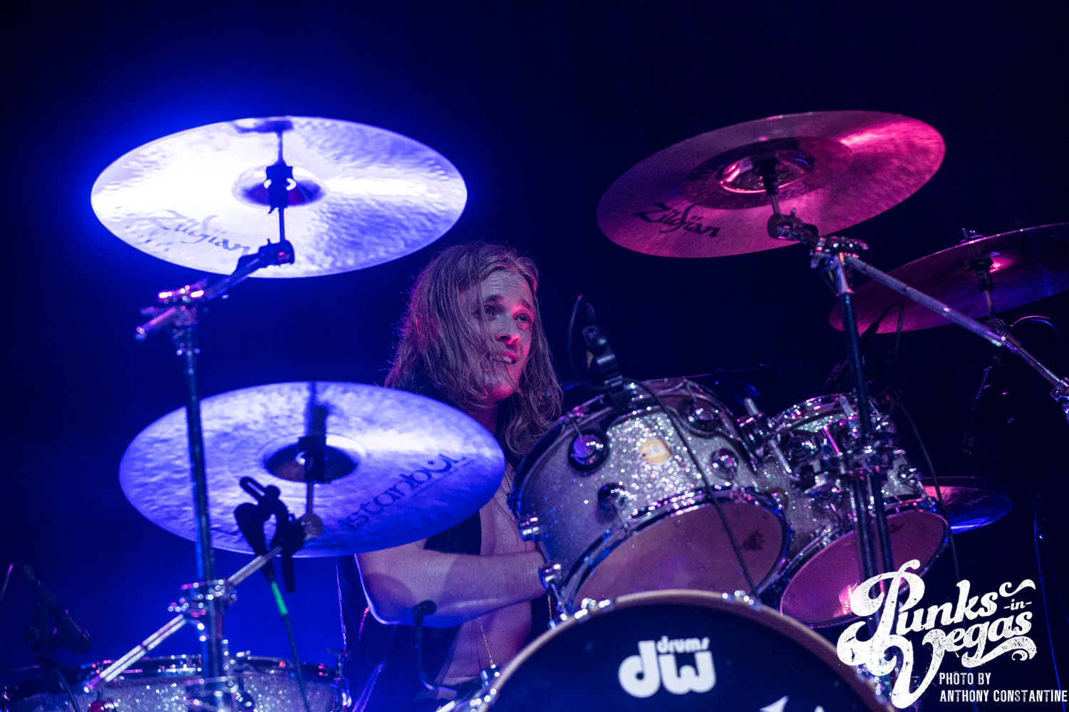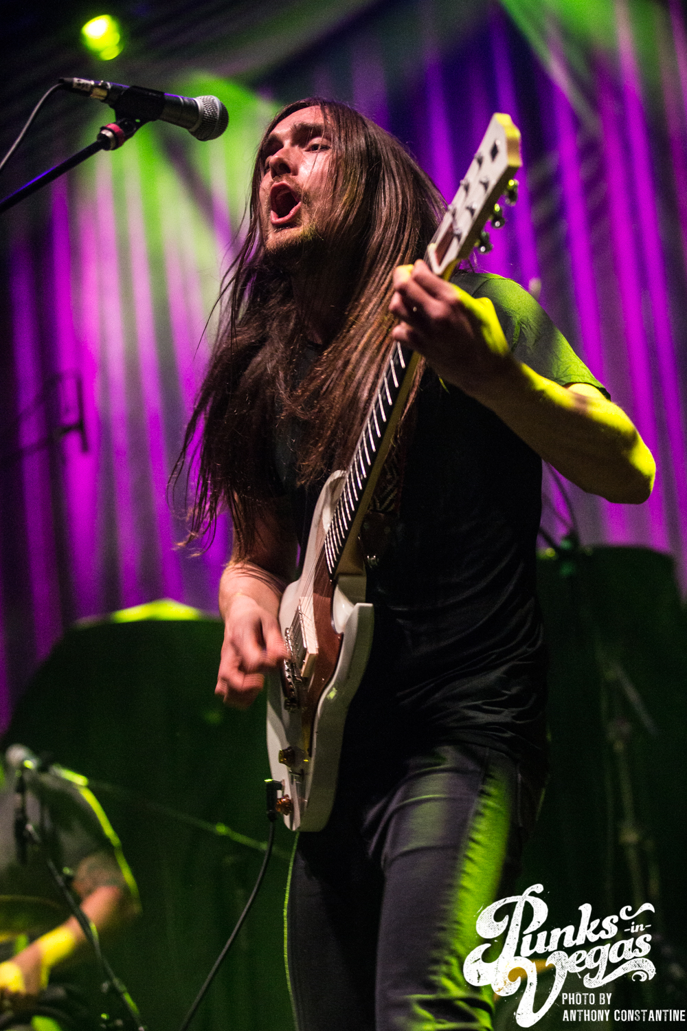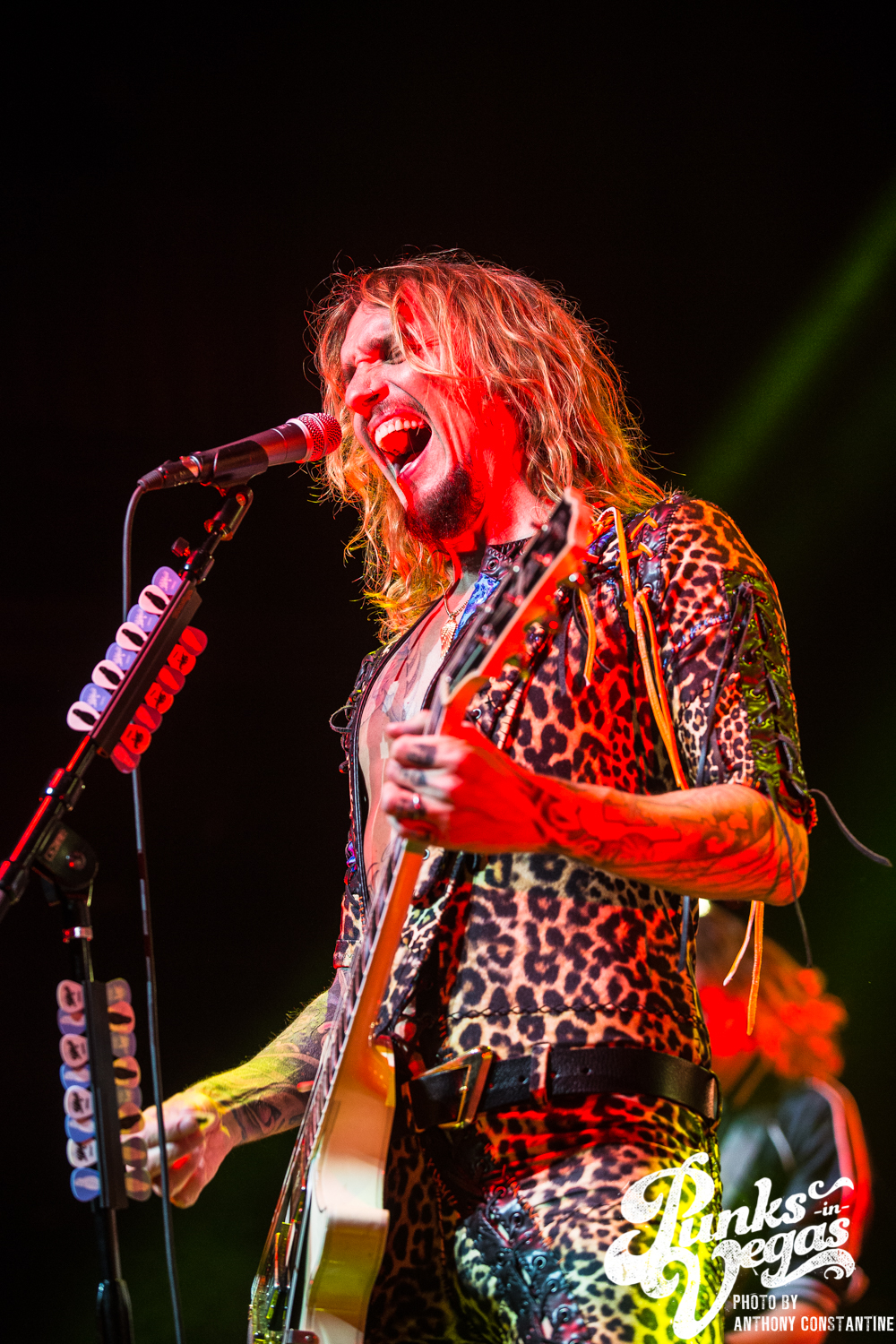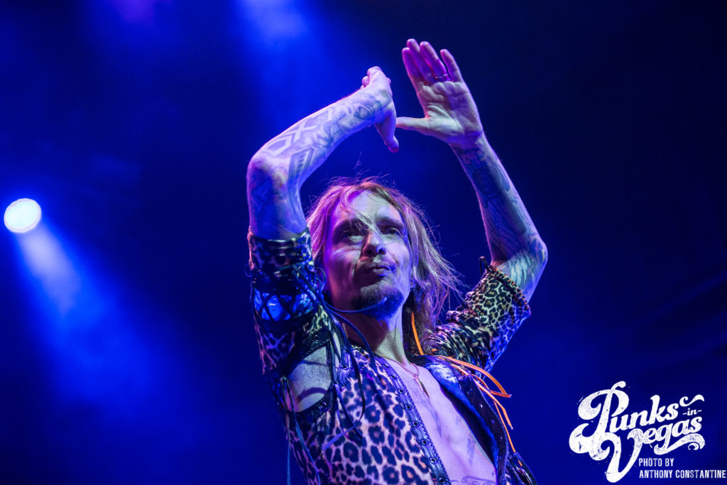 It had been a long time since I had been to a show at the Brooklyn Bowl, and really a show in general. I was stoked to be invited back to see The Darkness after two years since the last time they had been in Vegas. Up in the front row near the stage I ran into a group of people who had been to the show two years ago. They had remembered me from that show because I handed them a guitar pick that had been flung into the photo pit. So after a long chat with them it was time for the show to begin.