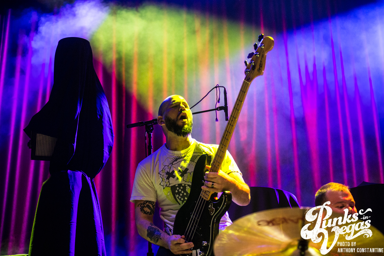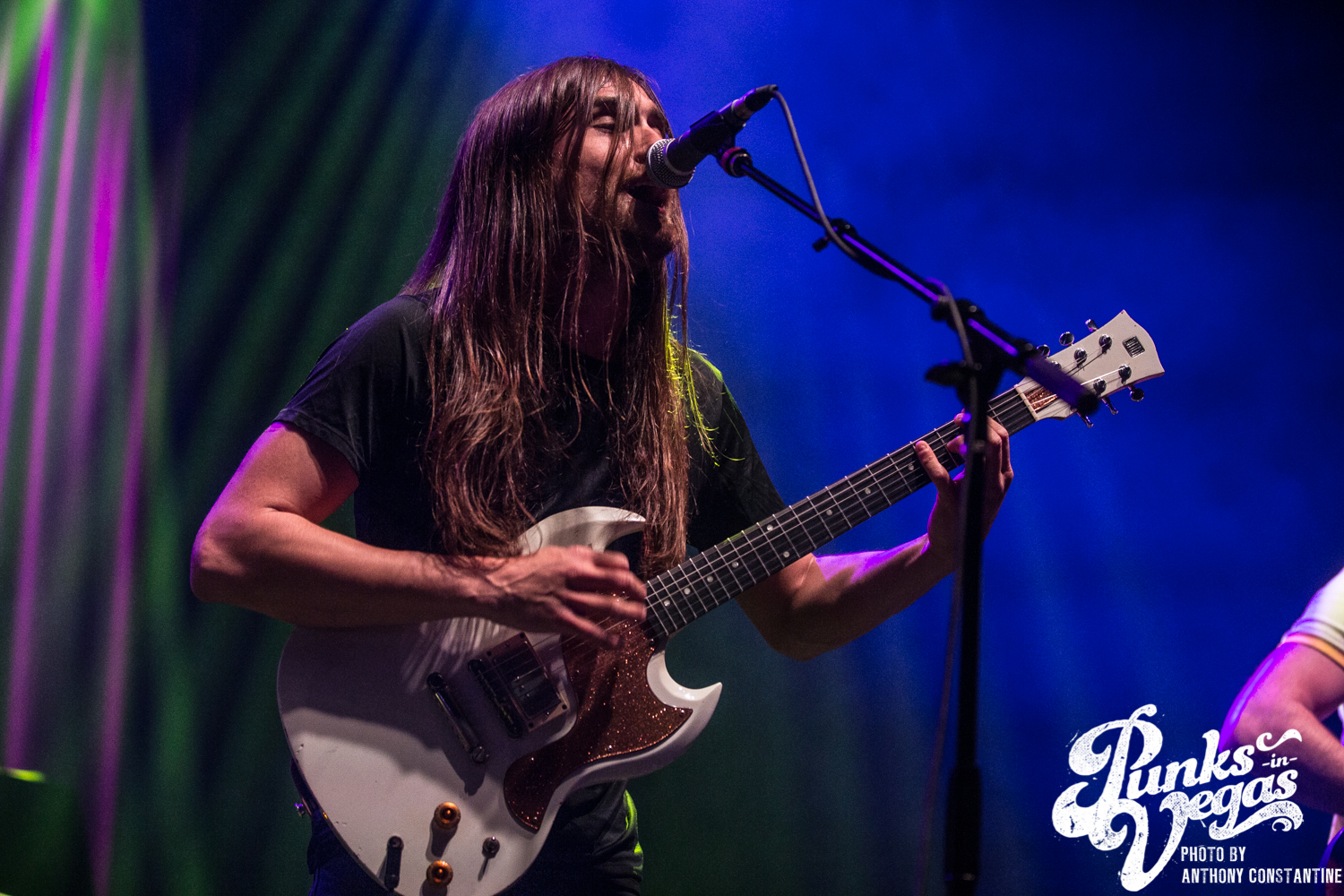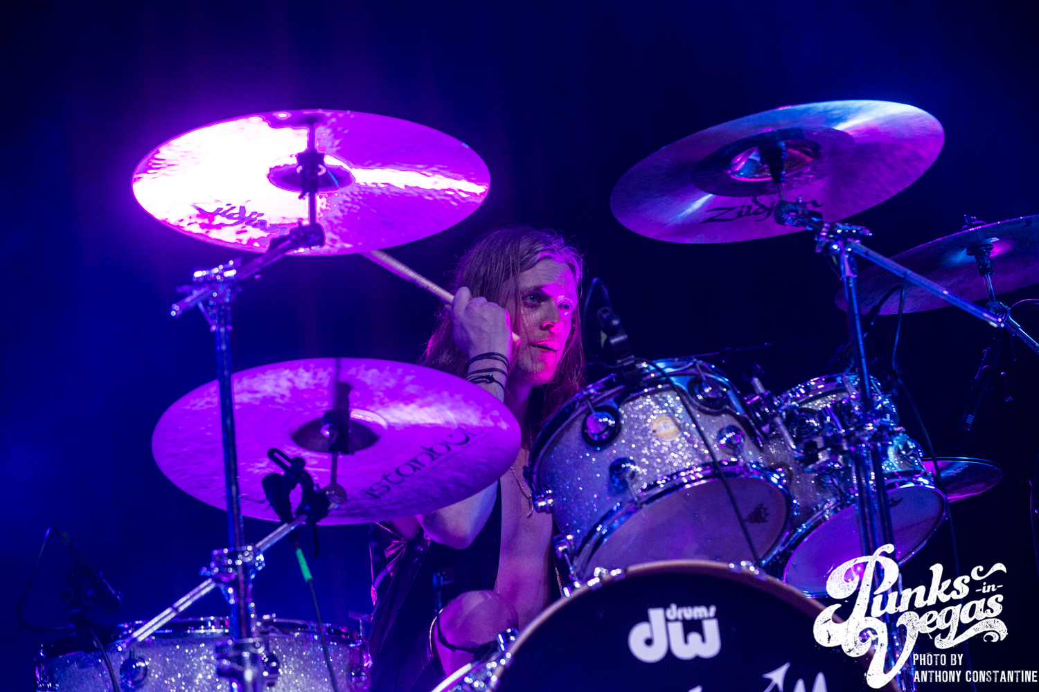 It had been a long time since I had been to a show at the Brooklyn Bowl, and really a show in general. I was stoked to be invited back to see The Darkness after two years since the last time they had been in Vegas. Up in the front row near the stage I ran into a group of people who had been to the show two years ago. They had remembered me from that show because I handed them a guitar pick that had been flung into the photo pit. So after a long chat with them it was time for the show to begin.