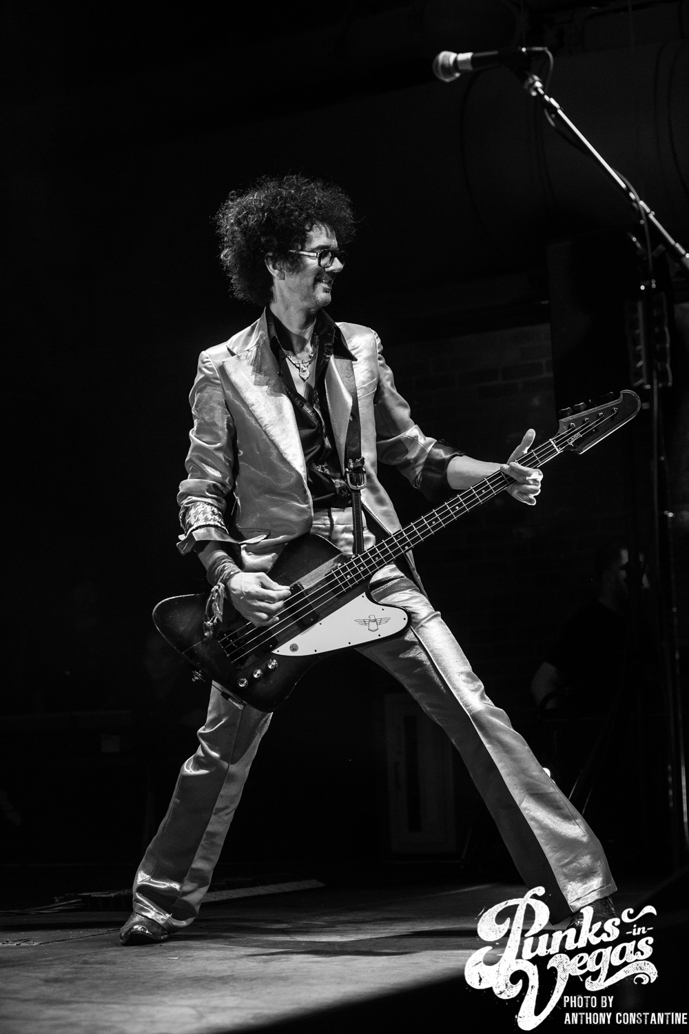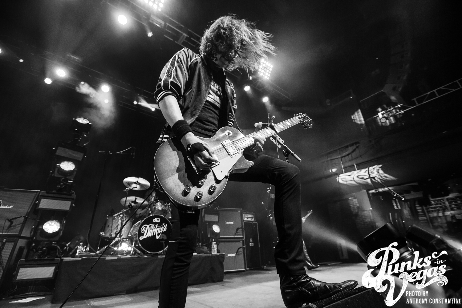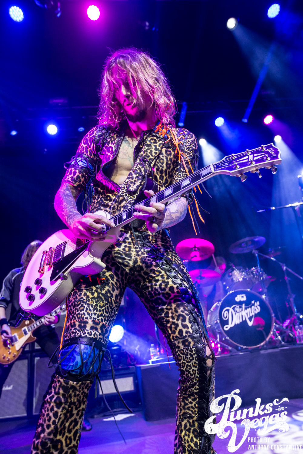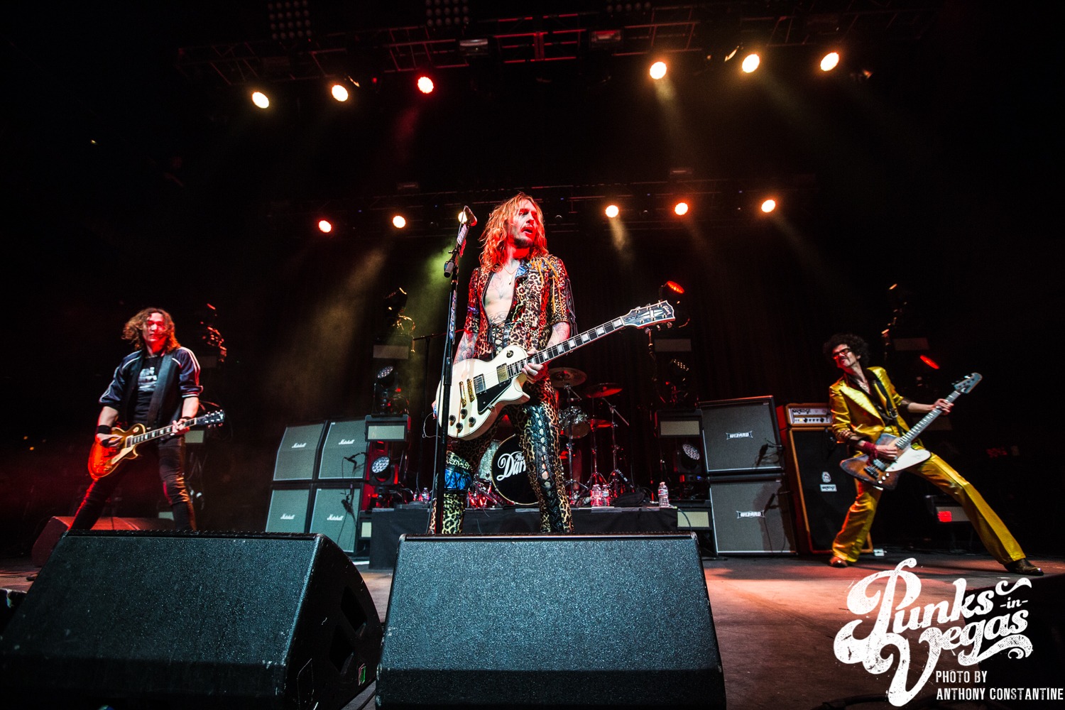 The Brooklyn Bowl went dark and the lights on stage began to flicker and then out came the boys of The Darkness. Lead singer Justin Hawkins strides towards the center mic with arms out wide, adorned in a skin tight, leopard print jumpsuit. The crowd was completely ready for the party to start and from the moment they ripped into the first song the party was in full swing.