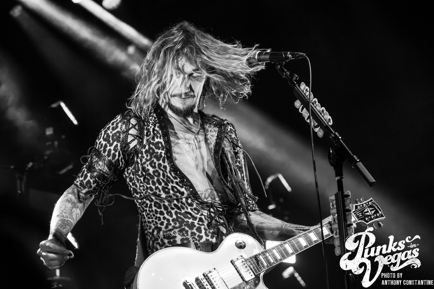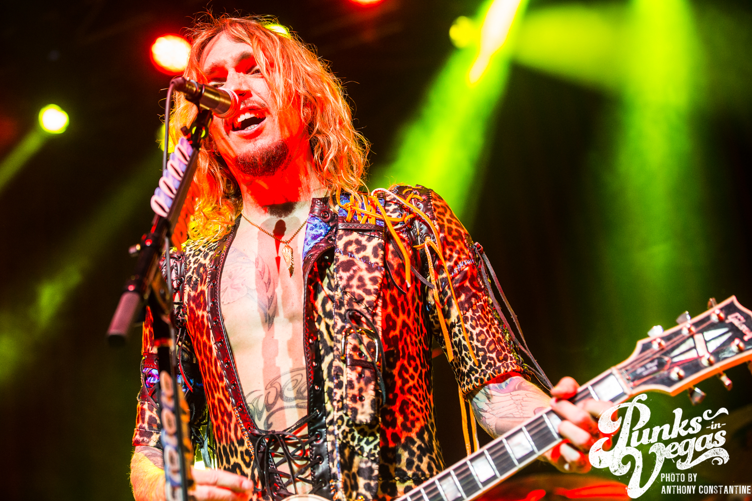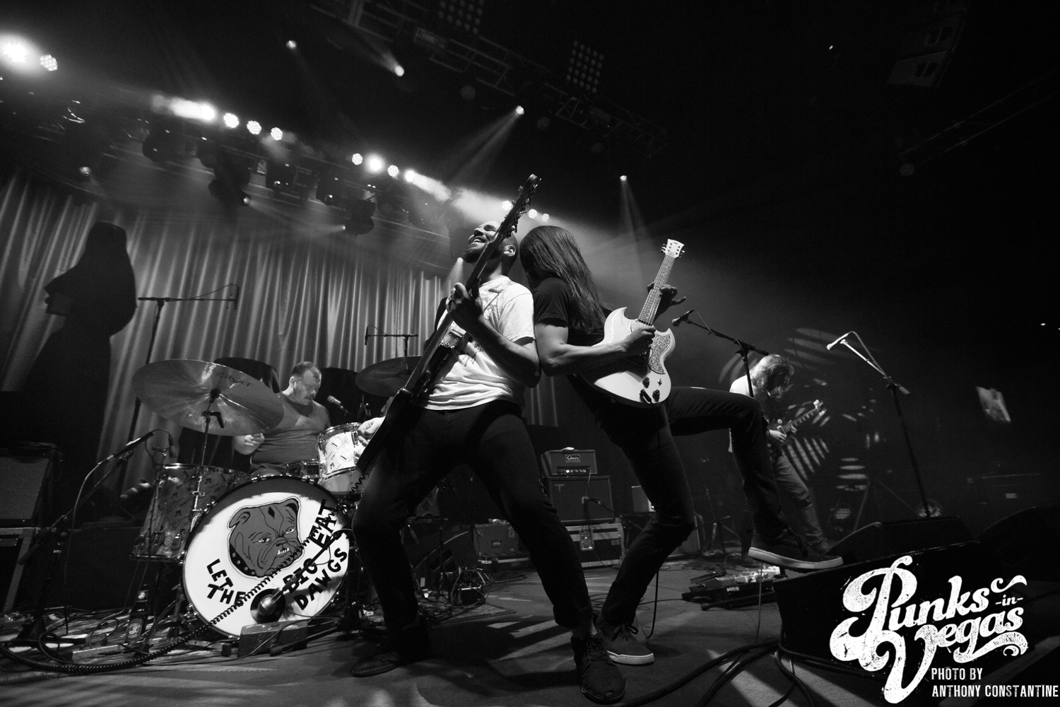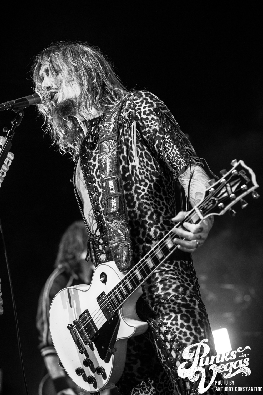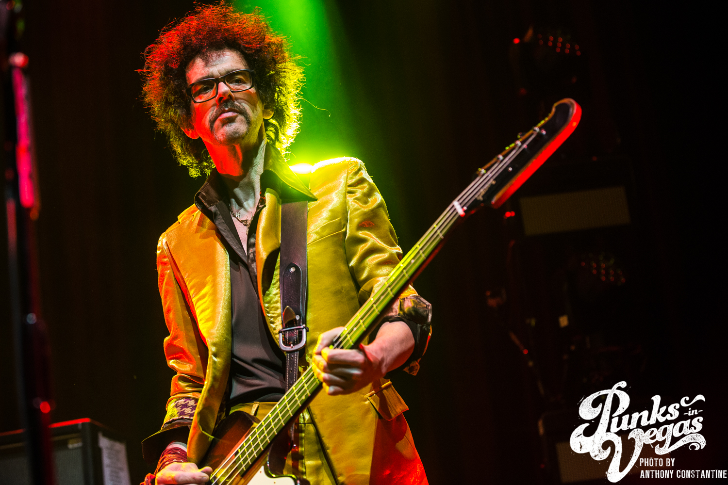 The Brooklyn Bowl went dark and the lights on stage began to flicker and then out came the boys of The Darkness. Lead singer Justin Hawkins strides towards the center mic with arms out wide, adorned in a skin tight, leopard print jumpsuit. The crowd was completely ready for the party to start and from the moment they ripped into the first song the party was in full swing.