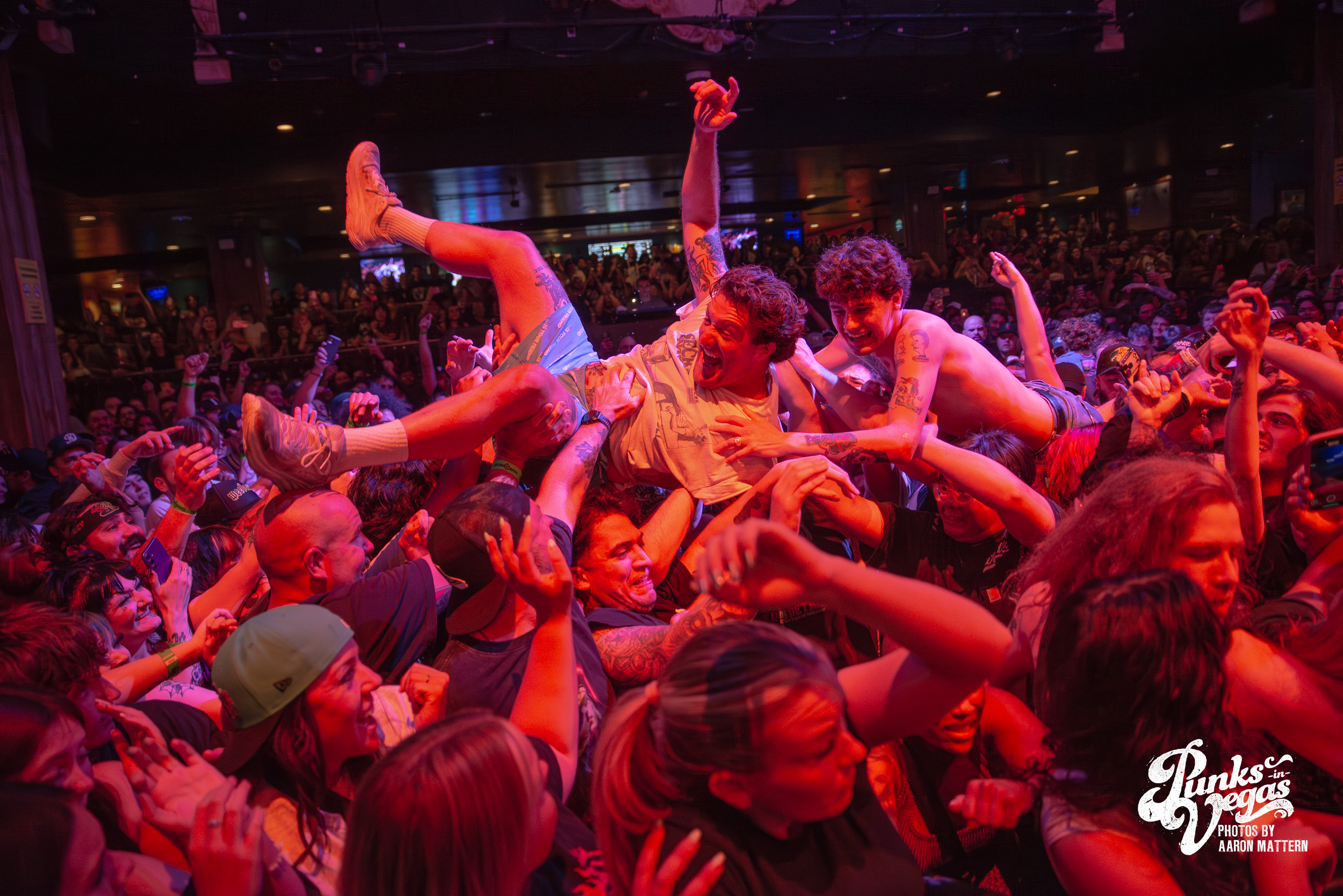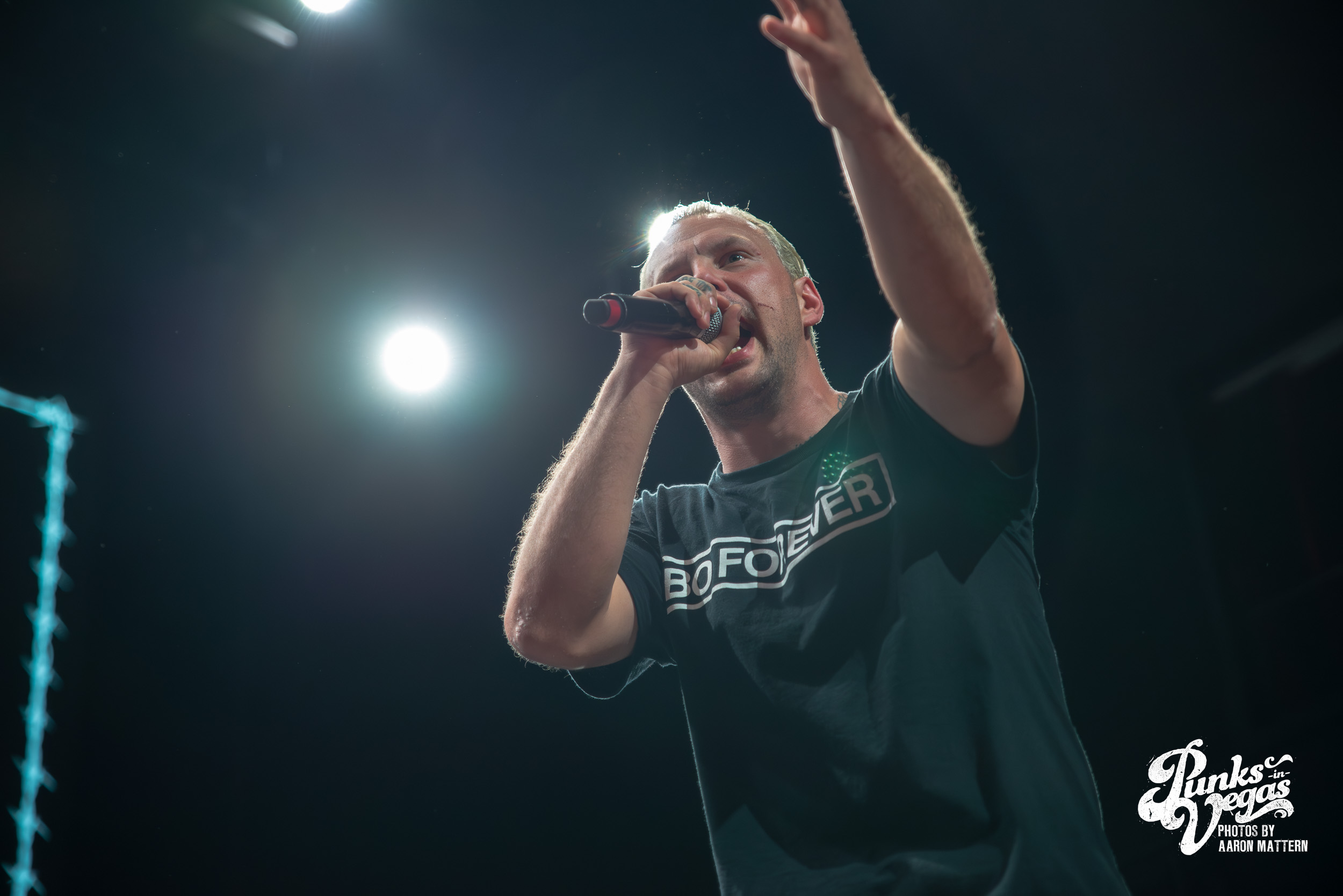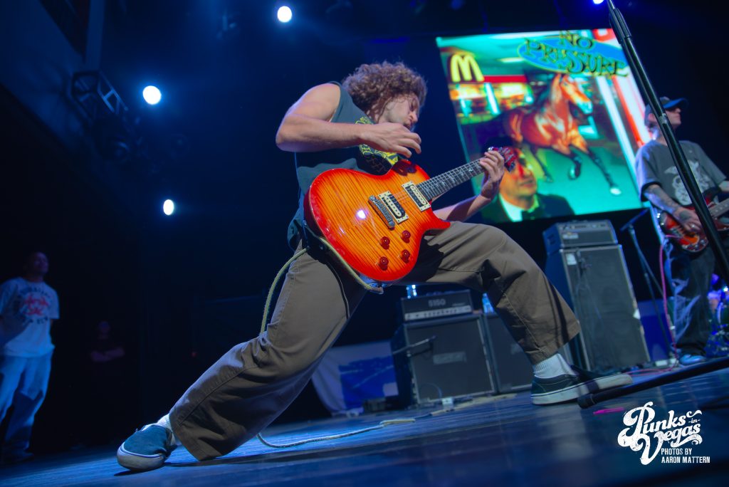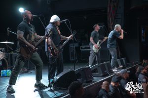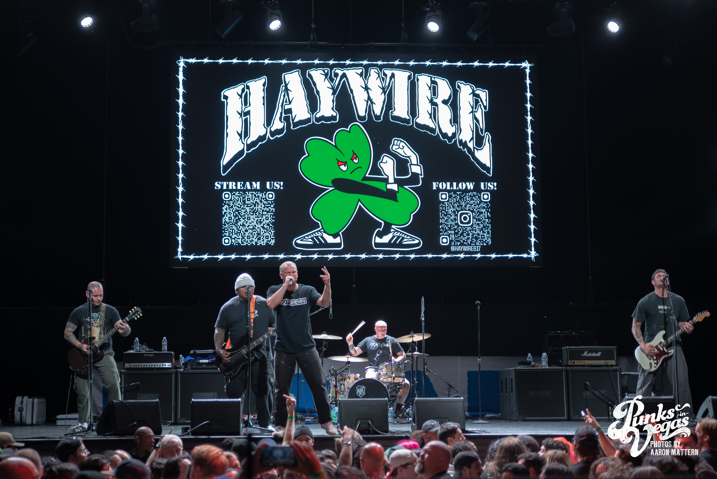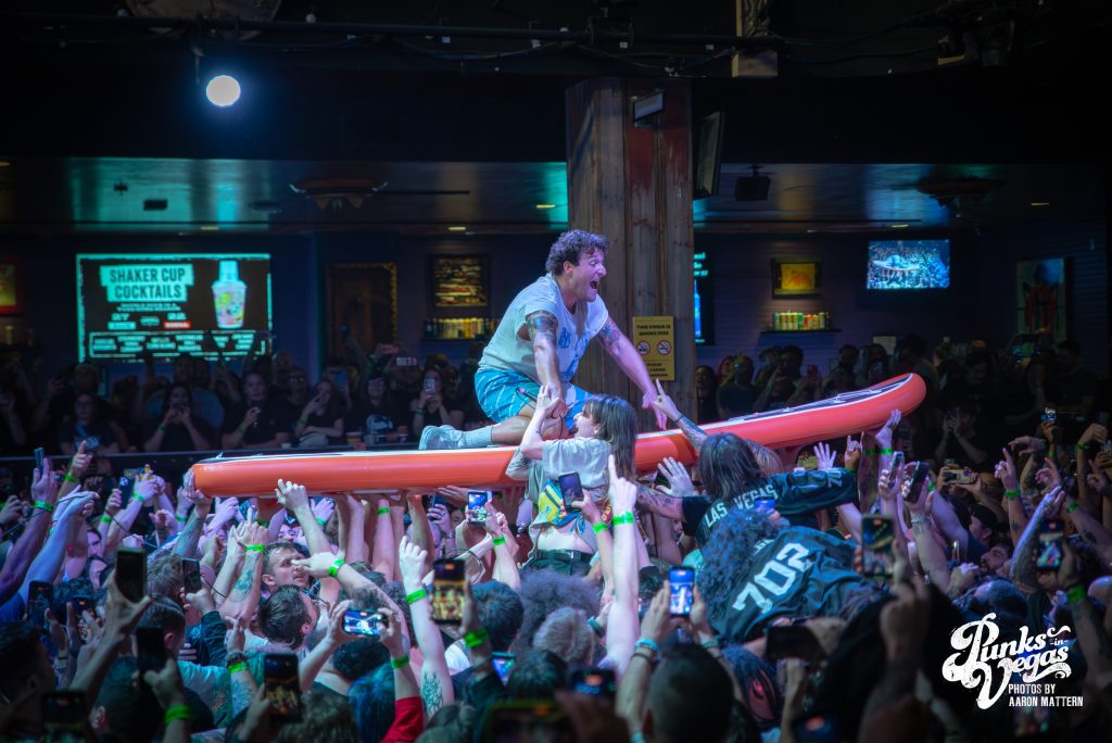 Up second, and switching Punk genres every so slightly: the hardest working band in hardcore, Boston boot-boys Haywire! The band has been seemingly on tour for years. In 2025 they played a massive year- long tour across all fifty states and still haven’t stopped. Introducing the band was classic sing-along original Neil Diamond’s “Sweet Caroline”. The band sang the classic along-with the crowd immediately launching into their self-titled “Haywire” getting the crowd going. This is such a fun band to watch live, as they are energetic, aggressive, passionate, and chaotic. Recently Haywire put out a split with notorious Boston locals, Dropkick Murphys, and included the track “New England” forever from it. Appropriately for Las Vegas, they recoined the lyrics “Nevada forever, tattooed across our chest” for our stop of the tour that night. The pit was constant throughout the set, as well as the crowd screaming back lyrics at Austin Sparkman. Everyone obviously was having a super fun time.