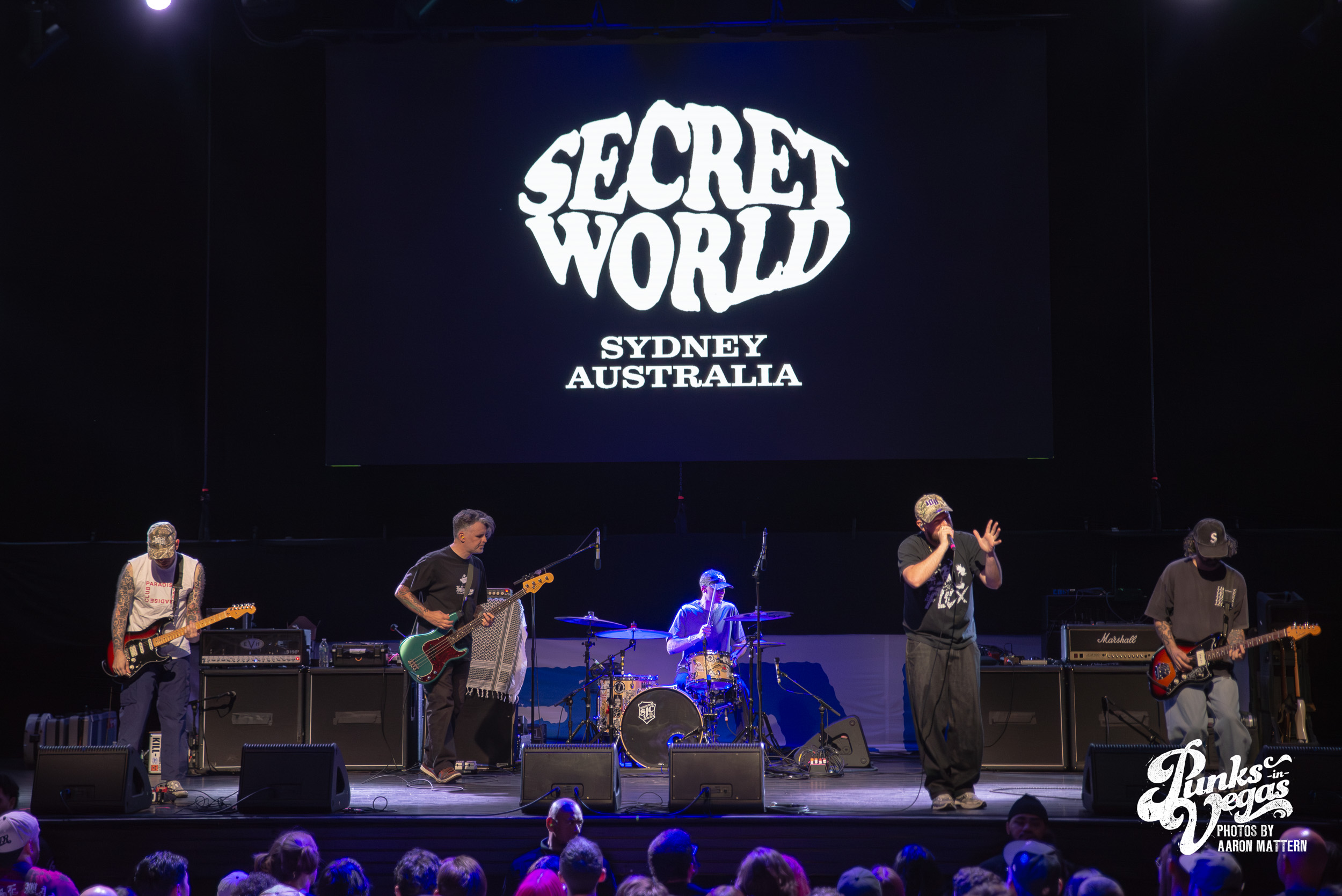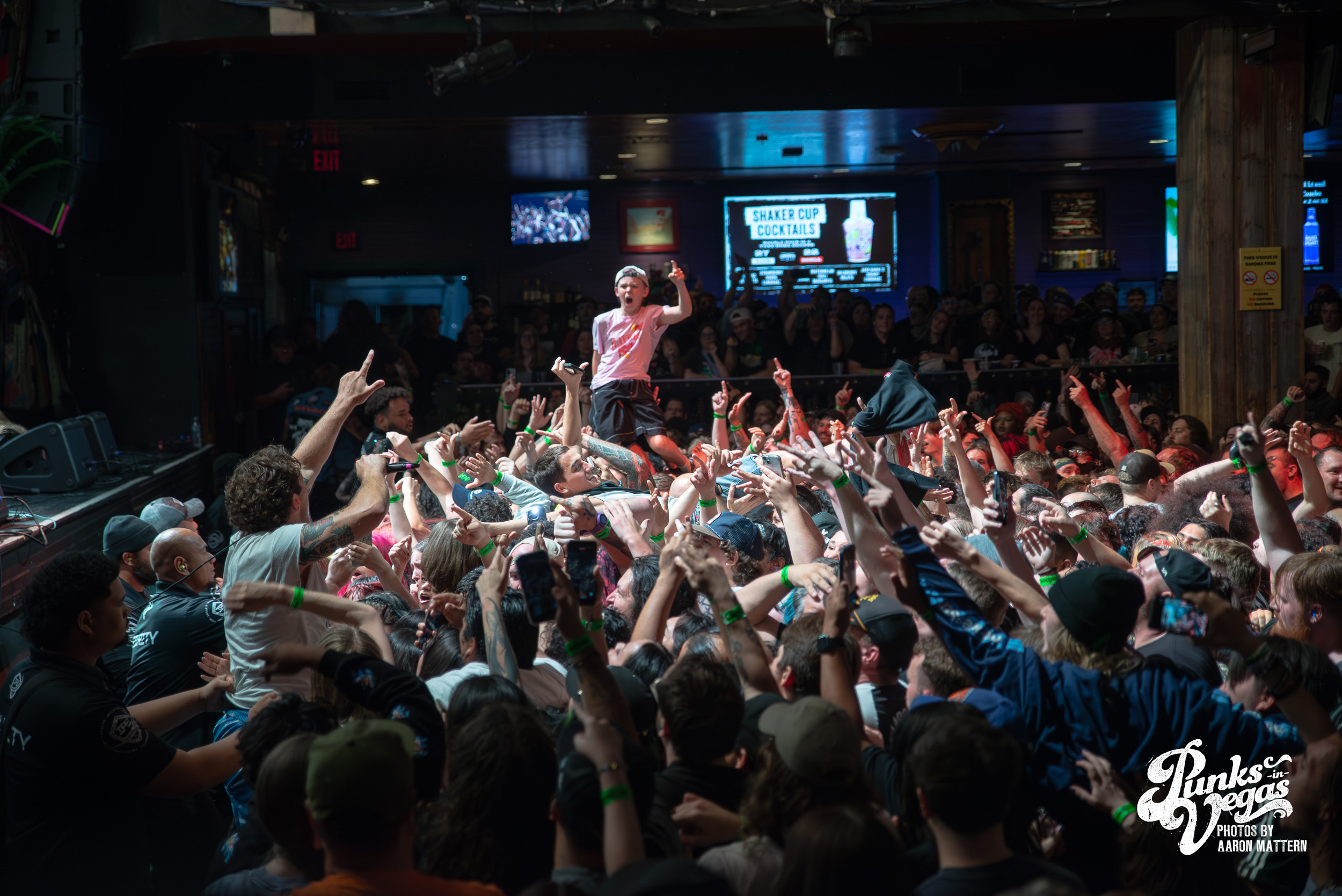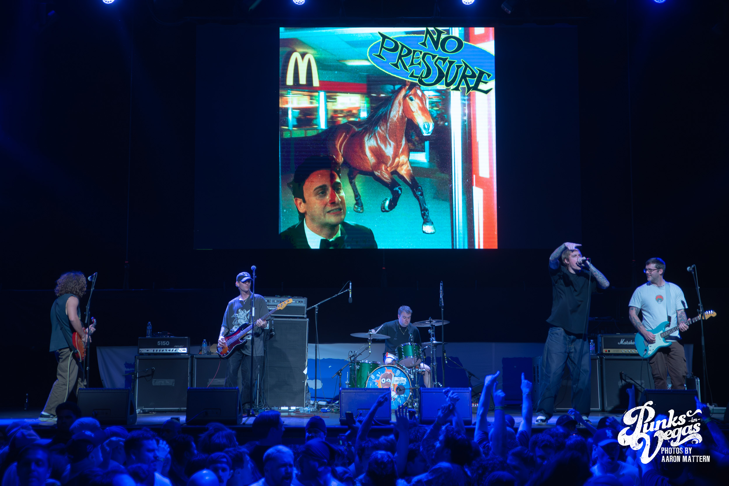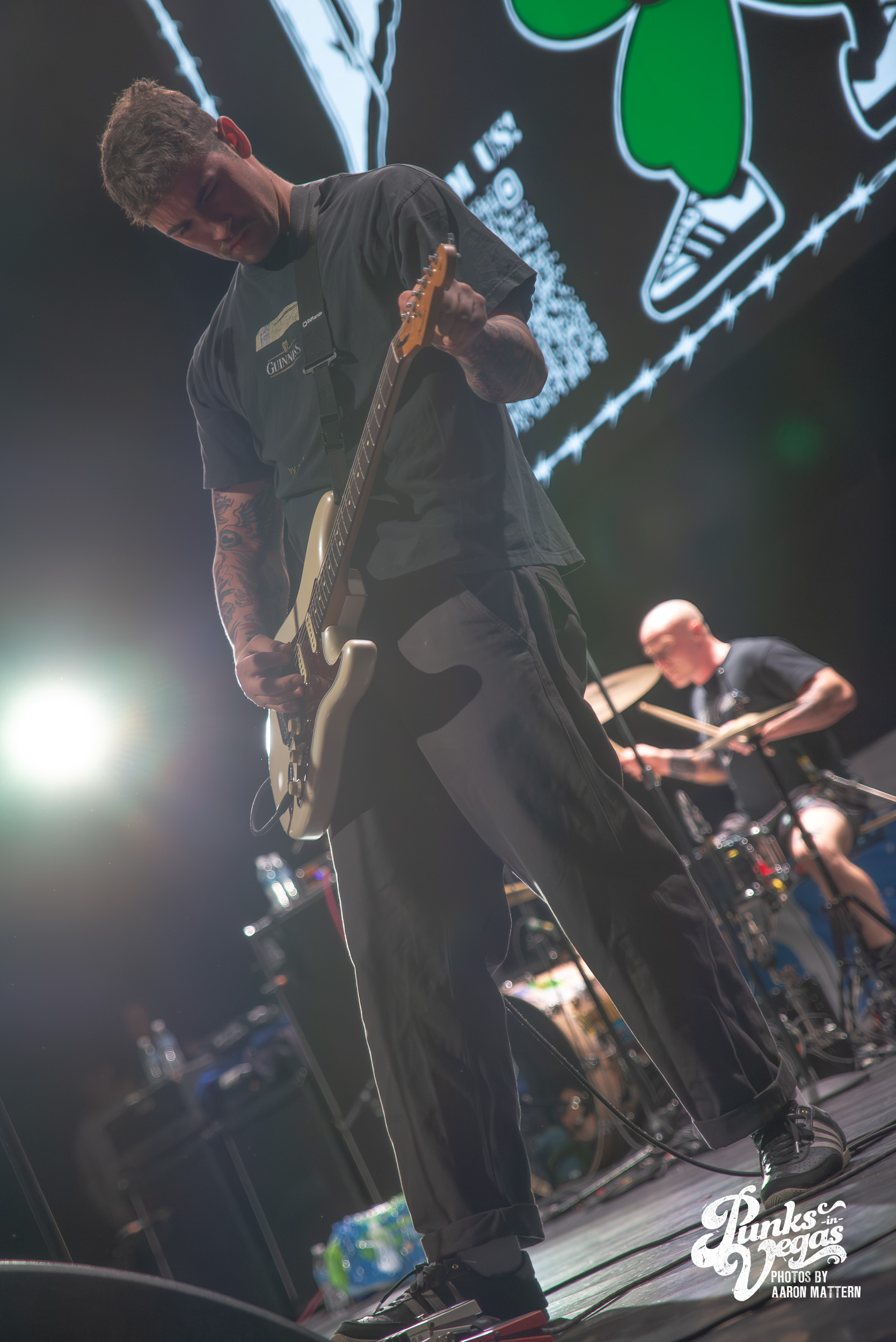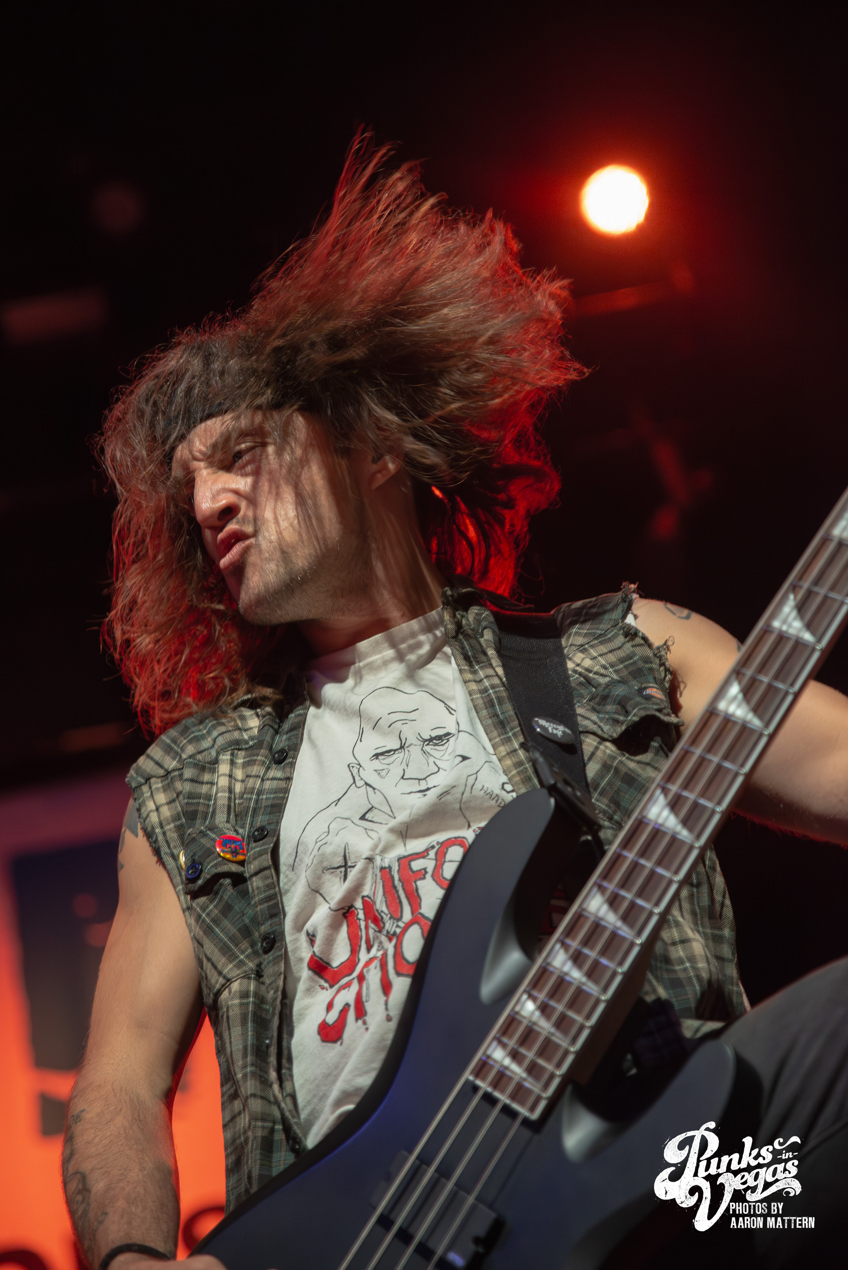 Up second, and switching Punk genres every so slightly: the hardest working band in hardcore, Boston boot-boys Haywire! The band has been seemingly on tour for years. In 2025 they played a massive year- long tour across all fifty states and still haven’t stopped. Introducing the band was classic sing-along original Neil Diamond’s “Sweet Caroline”. The band sang the classic along-with the crowd immediately launching into their self-titled “Haywire” getting the crowd going. This is such a fun band to watch live, as they are energetic, aggressive, passionate, and chaotic. Recently Haywire put out a split with notorious Boston locals, Dropkick Murphys, and included the track “New England” forever from it. Appropriately for Las Vegas, they recoined the lyrics “Nevada forever, tattooed across our chest” for our stop of the tour that night. The pit was constant throughout the set, as well as the crowd screaming back lyrics at Austin Sparkman. Everyone obviously was having a super fun time.