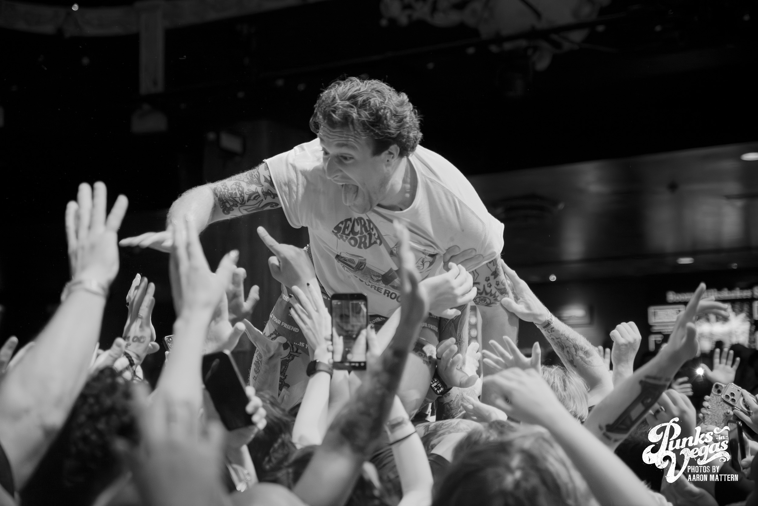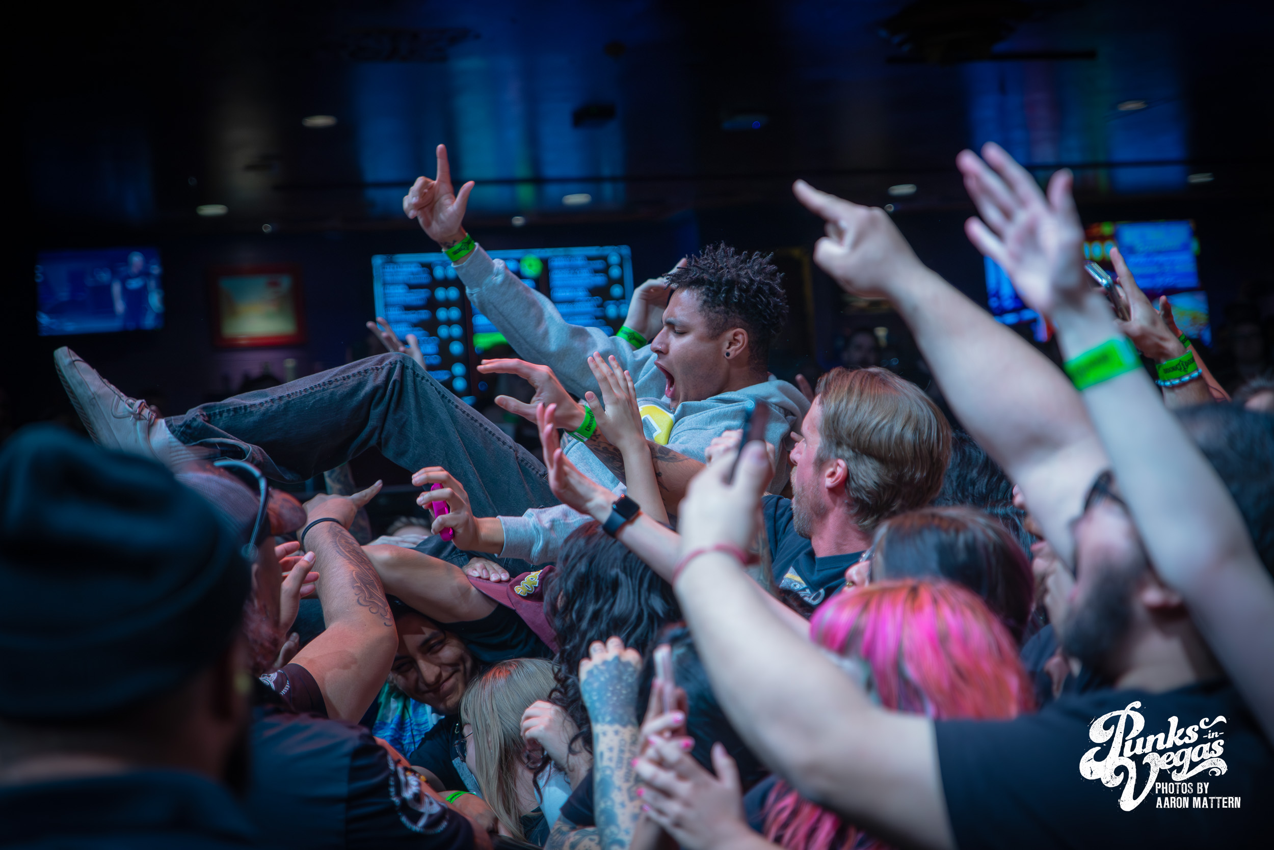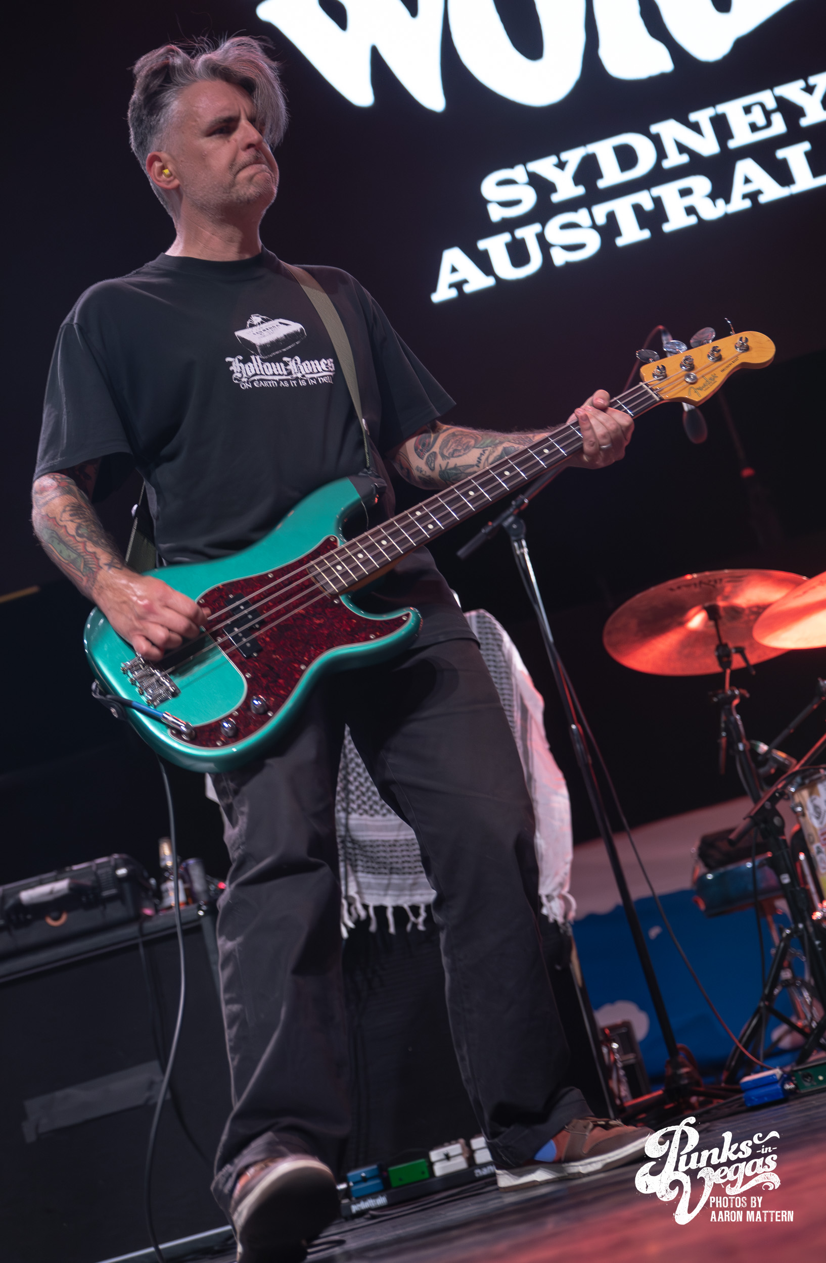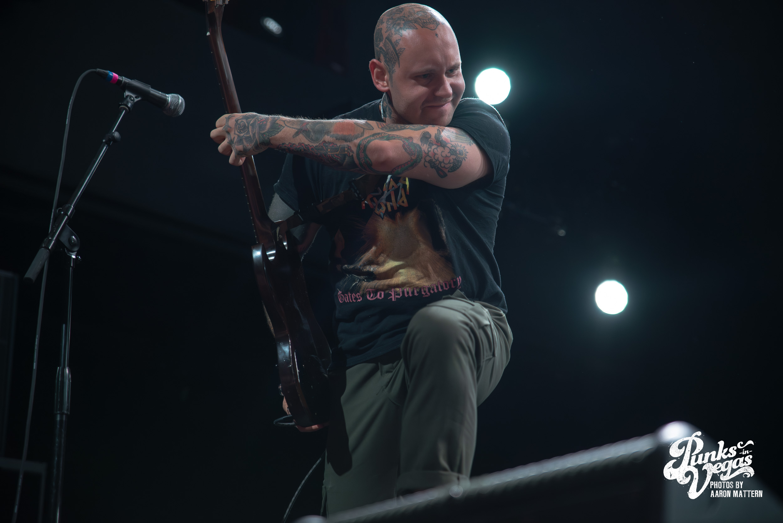 Up second, and switching Punk genres every so slightly: the hardest working band in hardcore, Boston boot-boys Haywire! The band has been seemingly on tour for years. In 2025 they played a massive year- long tour across all fifty states and still haven’t stopped. Introducing the band was classic sing-along original Neil Diamond’s “Sweet Caroline”. The band sang the classic along-with the crowd immediately launching into their self-titled “Haywire” getting the crowd going. This is such a fun band to watch live, as they are energetic, aggressive, passionate, and chaotic. Recently Haywire put out a split with notorious Boston locals, Dropkick Murphys, and included the track “New England” forever from it. Appropriately for Las Vegas, they recoined the lyrics “Nevada forever, tattooed across our chest” for our stop of the tour that night. The pit was constant throughout the set, as well as the crowd screaming back lyrics at Austin Sparkman. Everyone obviously was having a super fun time.