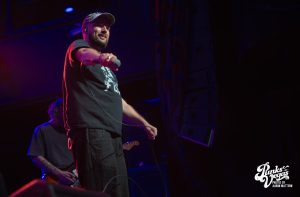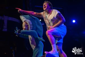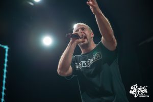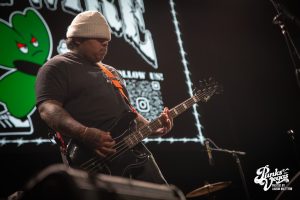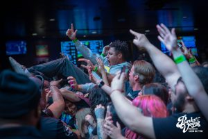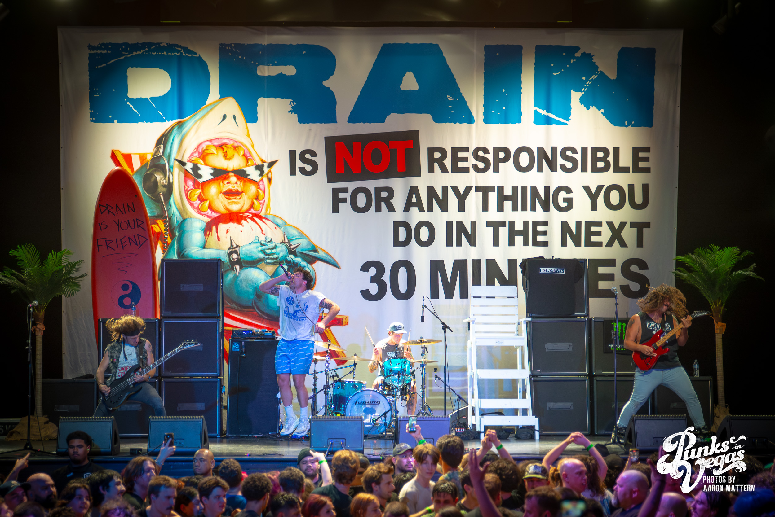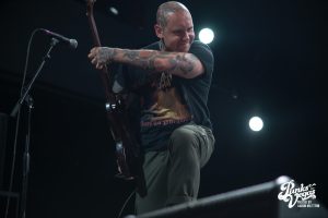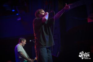 Finally after 3 bands, my personal favorite: Drain. The stage was decorated with a beach party backdrop perfectly going hand in hand with their California surf punk vibes. These Santa Cruz hardcore kids are very clear about their band motto “Drain is your friend”, and these shows are ours. The band was immediately ready to party, opening with “Feel the Pressure” and high-energy singer Sammy Ciaramitaro launching deep into the crowd from the stage. The band has the ability to somehow include every member of the audience even without direct contact and their shows are undeniably the most fun hardcore shows in existence. Security literally had its hands full throughout the entire set of never-ending crowd-surfers. A highlight of the performance (of course besides the Drain shark dropping it low the entire time) was towards the end of the set when the surfboard (not just stage decoration) was removed from the stage and Sammy literally surfed on top of everyone to a killer cover of “Good Good Things” by the Descendents. Unbelievably, the already rowdy ocean of people became an even greater storm, as wave after wave surfed their way to the top, climb aboard, and help him sing along.