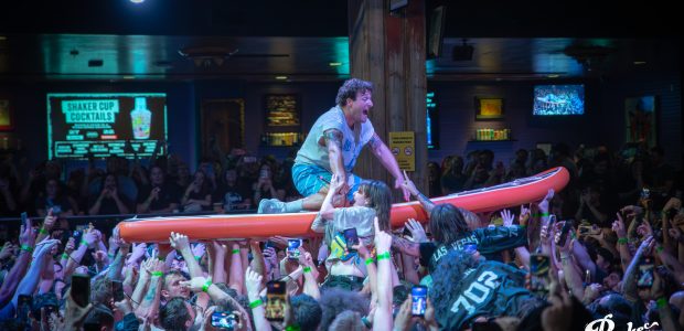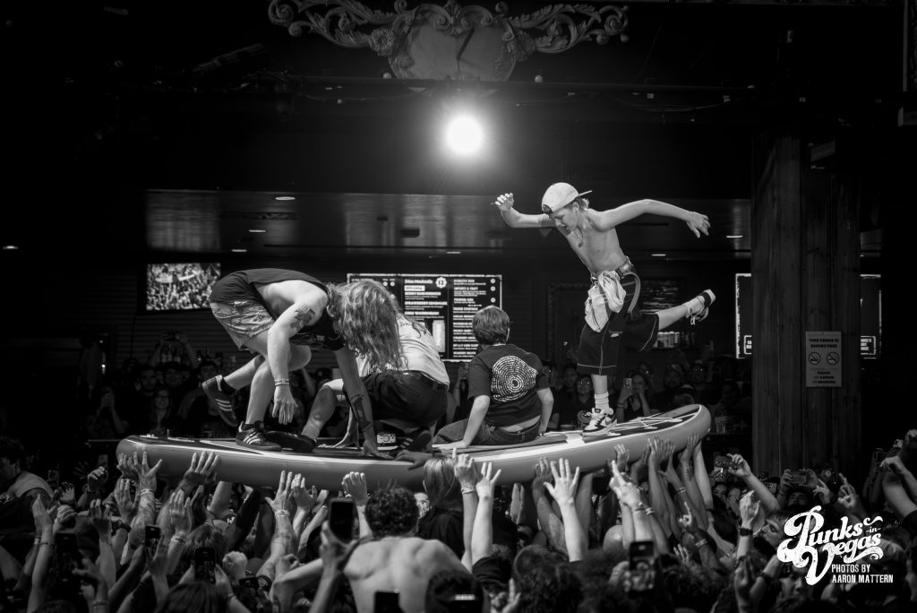 Just because the surfboard was returned to the stage, it didn’t mean that it was time for security to rest just yet. Final song and crowd favorite “California Cursed” was introduced with a condition, a quota of 300 fans must make it over the barricade. Eager to oblige, people everywhere began jumping off the balcony and almost anything they could find. I watched maybe 20 in a row jump off the bar and stair railings, and it was wild. The last 2:35 of that show was an utter frenzy and there is nothing cooler than having witnessed it live.
