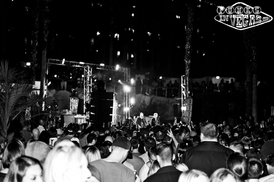 Like many punk bands that make it big outside of the smaller community, Dropkick can be divisive, separating some into new and old song fan camps, but I doubt anyone can find something negative to say about how their live show has progressed. Al Barr is one of the most dynamic frontmen in the punk rock scene, and he seemed to revel in the smaller-than-usual stage his band played on that night. The last two Dropkick shows in Vegas found them on the large Fremont East stage for Punk Rock Bowling and the larger Joint inside the Hard Rock, but because the Joint was occupied by rapper 50 Cent, the band got a chance to be more intimate with their fans. Barr spent the band’s set at the edge of the floor subwoofers, sending hi-fives back as far as he could and extending his mic into a mass of fans eager to sing every word.