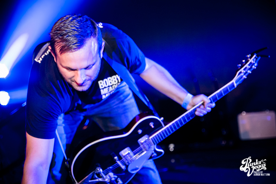 Also in the crowd were members of Alex and His Meal Ticket and Lawn Mower Death Riders, the show’s opening bands and Shelton’s self-proclaimed favorite bands in Vegas. Alex was up first, playing the guitar made famous by Marvin Berry and making his cousin Chuck proud with a soulful voice and bluesy riffs that is like the awesome lovechild of Jon Spencer and the Black Keys.