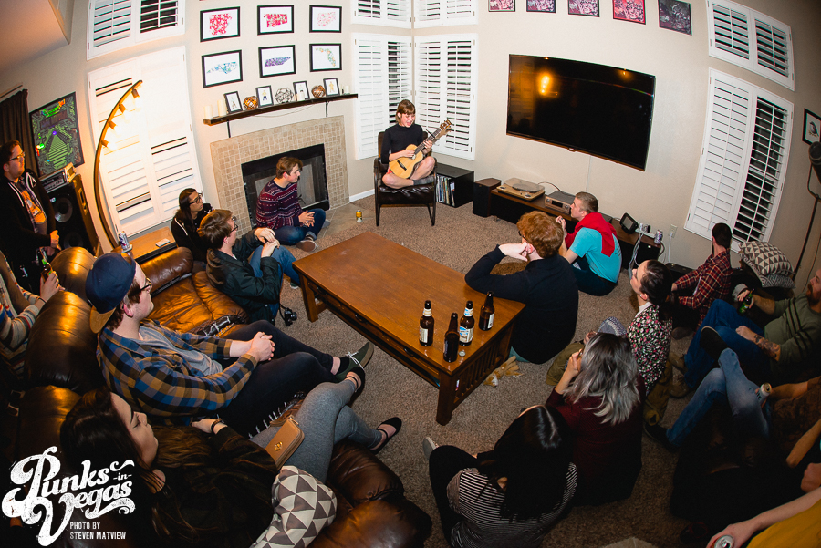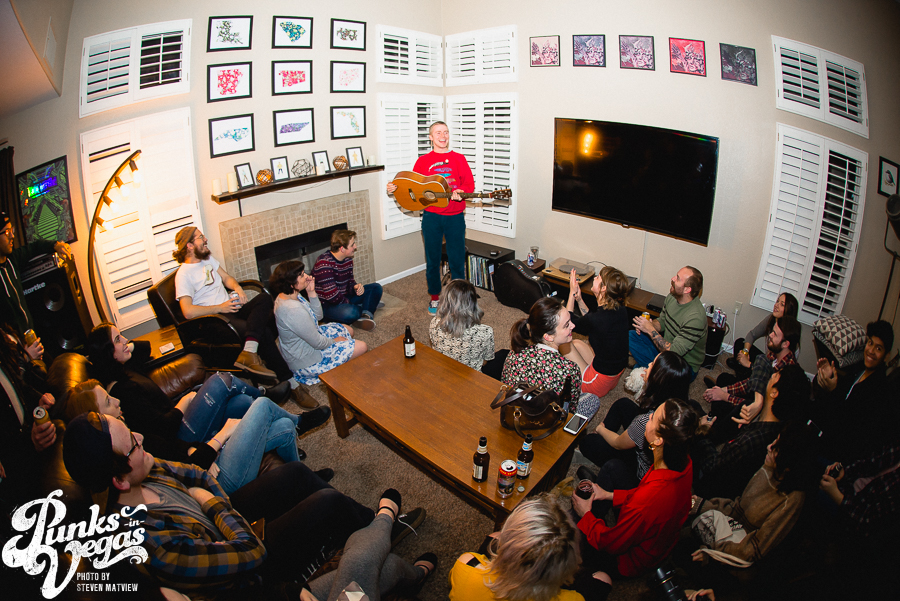 Evan Stephens Hall of Pinegrove & Al of Great Grandpa made their way through Vegas last week, playing a house show on Friday.