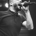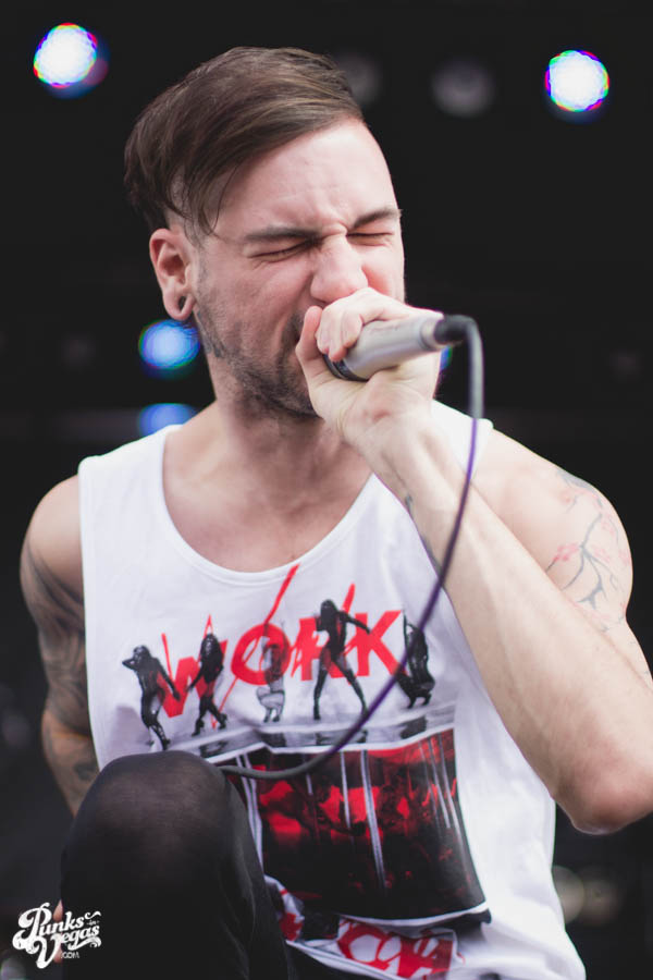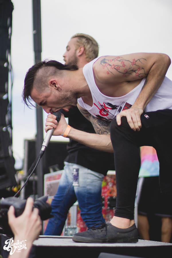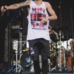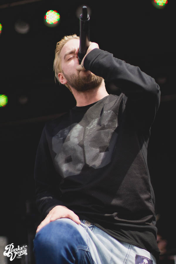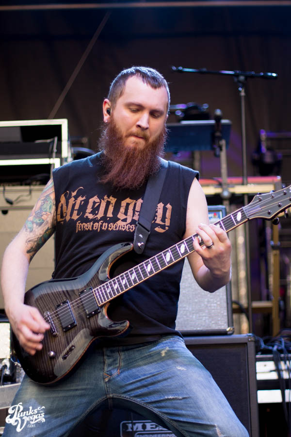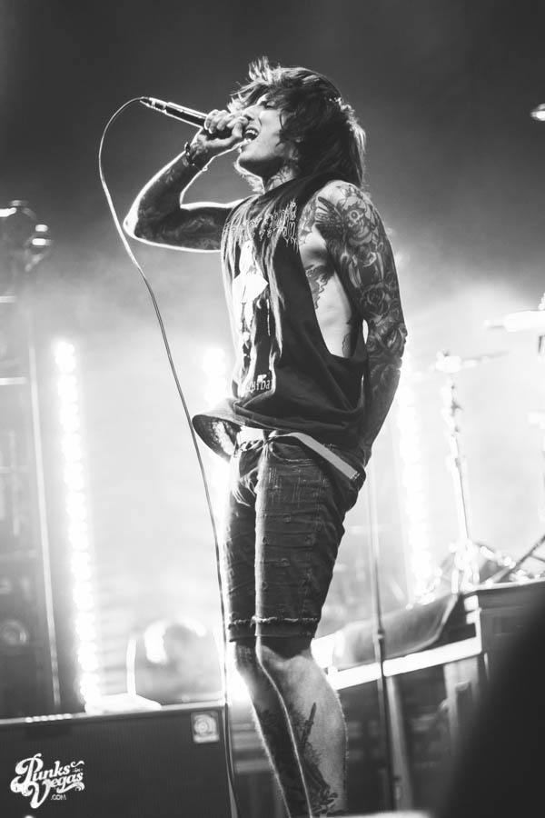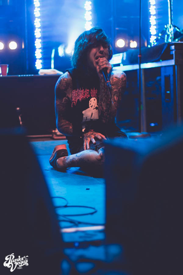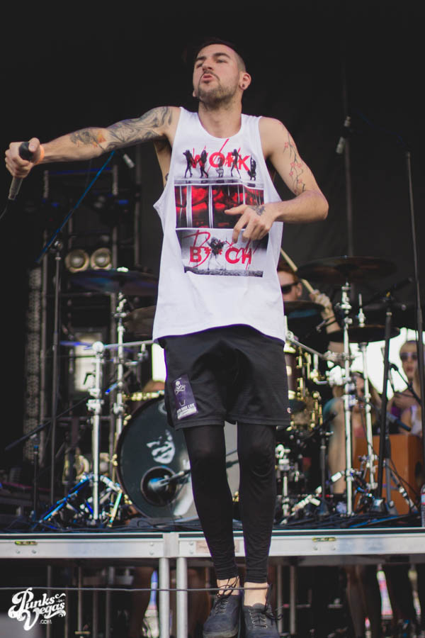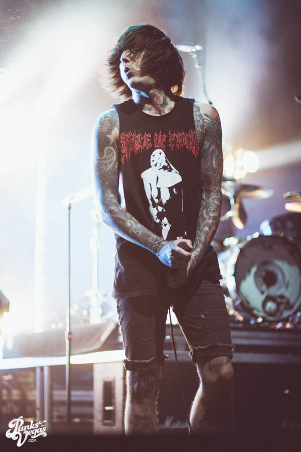 At first Killswitch Engage seemed out of place (playing after Of Mice and Men and before Bring Me The Horizon), but they managed to win the crowd over with bangers like “Arms of Sorrow” and “My Curse.” They had their new-old vocalist Jesse Leach who did a good job performing the hits that were written without him. Some kids in front of me thought he sucked, oh well. The guitarist was wearing an orange bandana and sunglasses the whole time. He did some cool dance moves and made devil horns with his hands quite often, I was into that. His guitar also said “b33r!” (he likes beer). The bassist head-banged a lot and stuck his tongue out, he reminded me of those kids I don’t like. As I sang along I realized that most of the kids were just standing around, and for one moment in time I felt old. Thanks KSE. P.S. should’ve played that Dio cover.