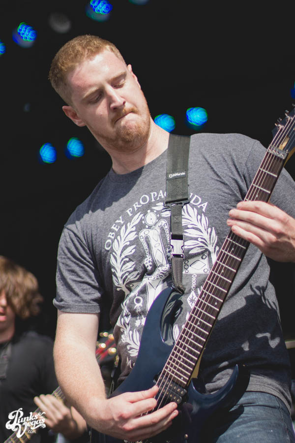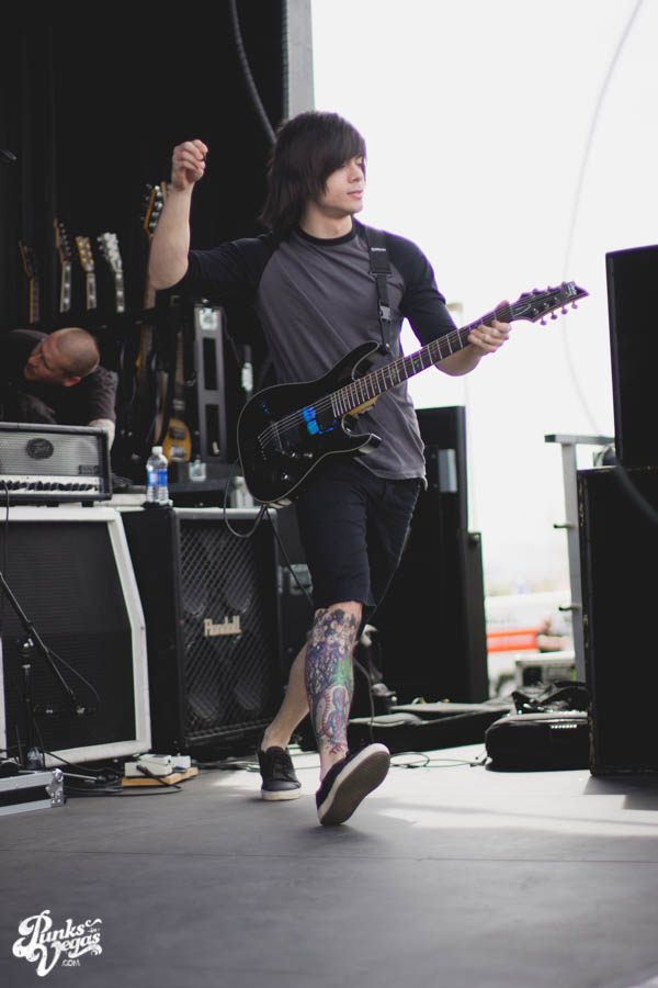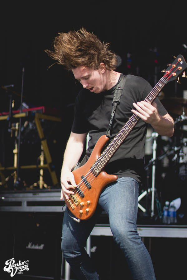 Animals as Leaders was playing on the other side of the fence, so I just watched from there. They played a melodic blend of “djent,” lounge jazz and shred metal. The entire crowd stood wide eyed and dazed through a majority of their set, and at one point there was even a kid hardcore dancing. Since AAL played at the same time as Of Mice and Men, the crowd was shed of the younger concert goers and was predominantly greasy haired twenty year olds. They all gently head banged. AAL played the hits and also stuff from their new album, although all the songs blended together ambiguously, it was still overwhelmingly good. AAL’s lack of vocals worked to their advantage, since whoever was mixing for the main-stage kept putting vocals in a nasty place. All in all, Animals As Leaders had a ton of strings and breakdowns, they showed us that things can be extreme even without swoop hair and screaming. Many, many kudos to those guys.