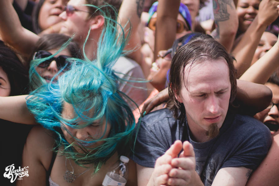Prompting many Myspace users’ first post since last year’s event, Extreme Thing garnered internet hype within its unique subculture of 14-17 year old Las Vegans. Stereotypically attended by throngs of topless and nearly topless teens donning sharpie sprawled “free hugs” on their stomachs, Extreme Thing’s diversity is comparably the inverse to that of Coachella. Miles of swoop haircuts and “Asking Alexandria” shirts (are they playing this year?), dozens of mohawks, hundreds of Vans sneakers, and of course every kid from high school that you never wanted to see again. Surprisingly enough, an abundance of “normal” looking, button up wearing, business-casual-hair-cut having attendees were present, but maybe normal is the new scene? I mean they are at Extreme Thing-chella 2014, where upon entering you can’t help but feel a part of some great horrible undying monster.