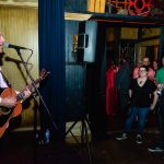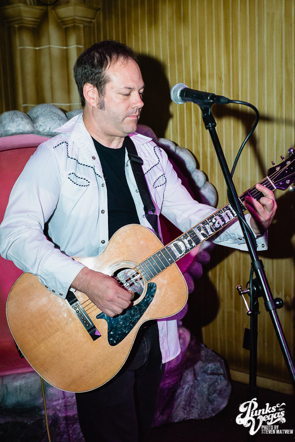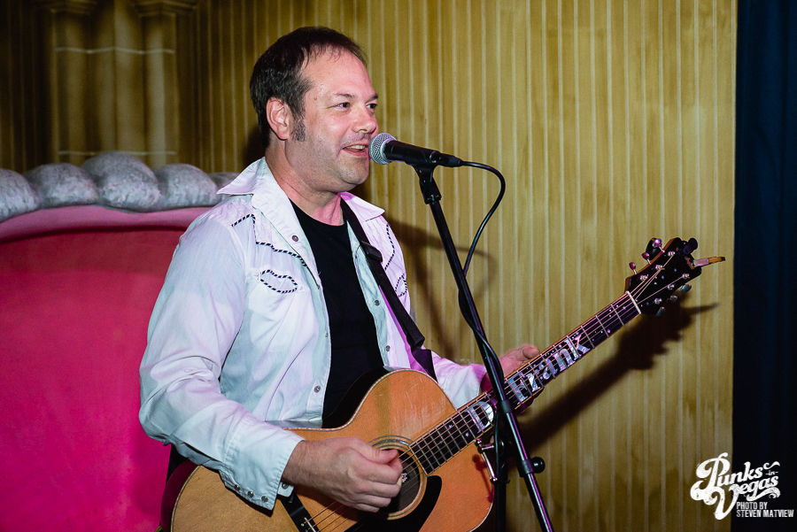 Nowhere is this more apparent than when it’s just Frank and a guitar. His lyrics are allowed to share the focus with the melody and his guitar playing is more articulate. Dr. Frank playing an acoustic guitar…on a small stage in the corner…in front of an oyster shaped love seat. Singing slightly awkward love songs with servers constantly scurrying across the 3 or 4 foot gap between the small crowd of folks gathered…who know all the words. It’s the perfect metaphor for his musical career. Despite a catalog of songs somewhere near the 200 mark and an ear for catchy pop songs with the most clever lyrics, The Mr. Experience never had the mainstream appeal of certain other bay area bands. Bands who were influenced by The Mr. T Experience….