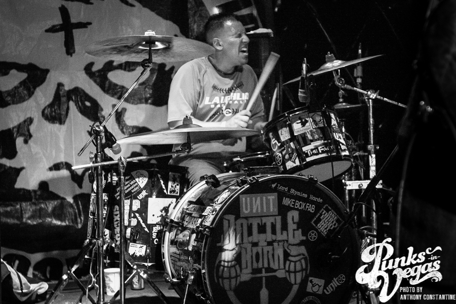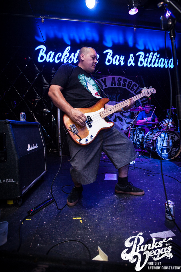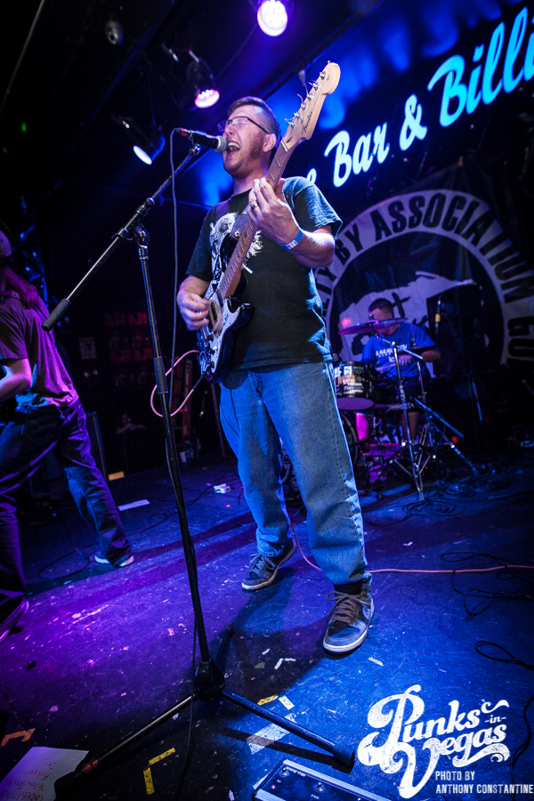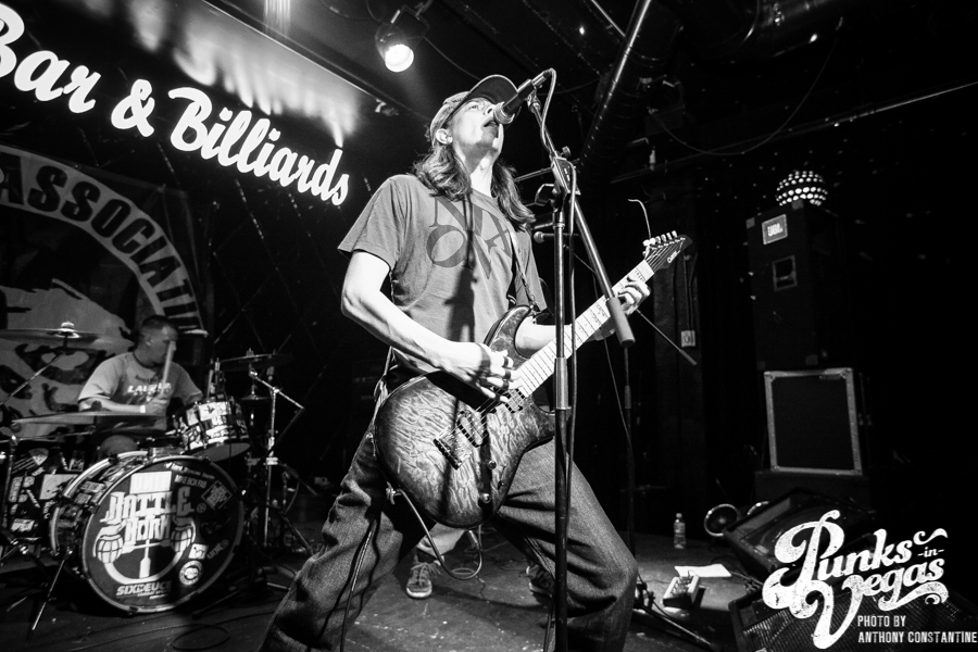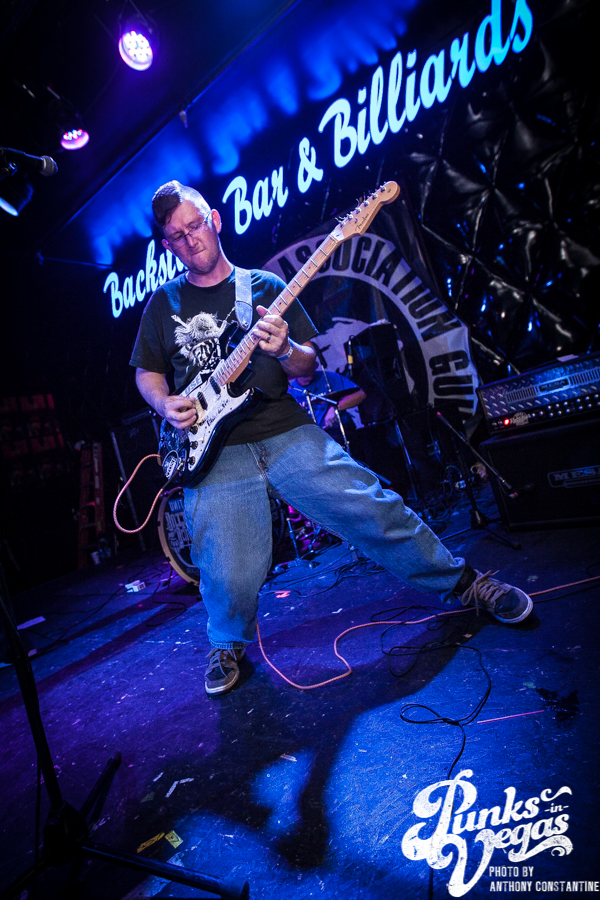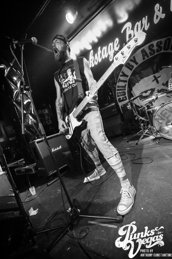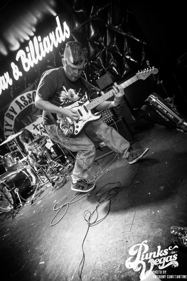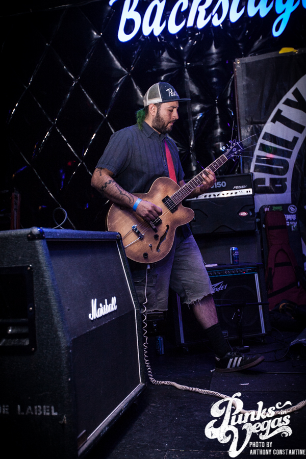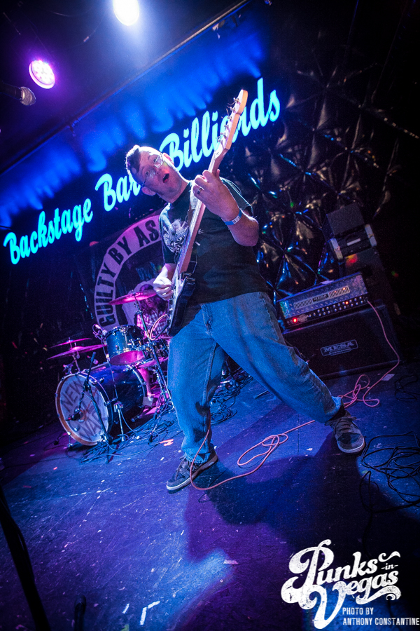 Battle Born has been around for as long as I can remember in the Las Vegas music scene. Their sound is a mix of punk rock and heavy metal. Lead singer and guitarist Chad shreds like no one I have ever seen in the local scene. Blowing my mind once more was John Brown up for his second set of the night. Battle Born had one of the best crowds thus far, but they were about to be outshined in the crowd department, because Guilty by Association was up next.