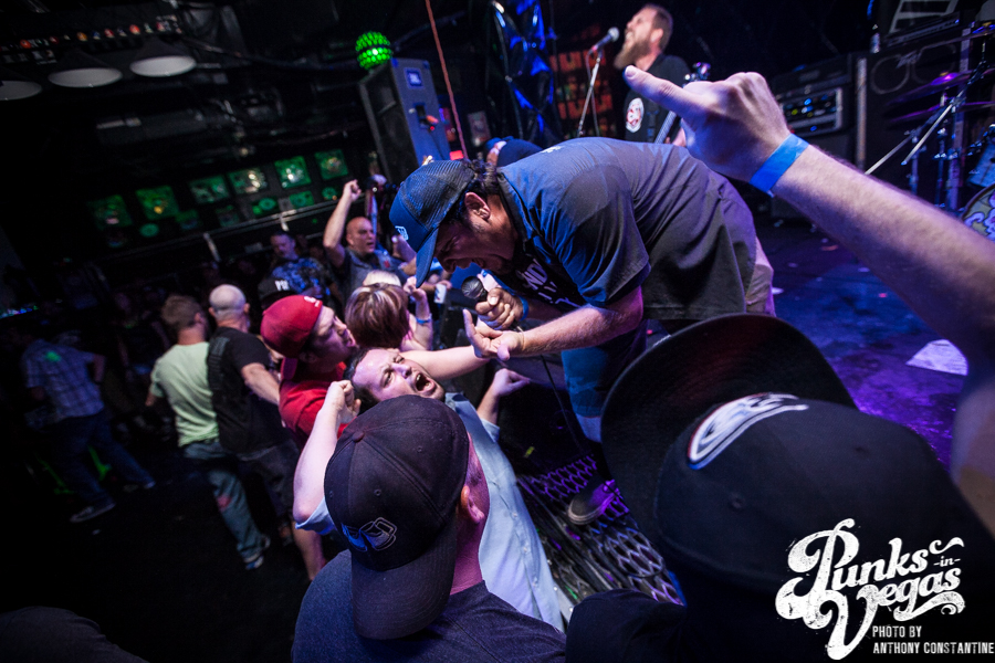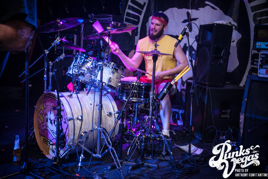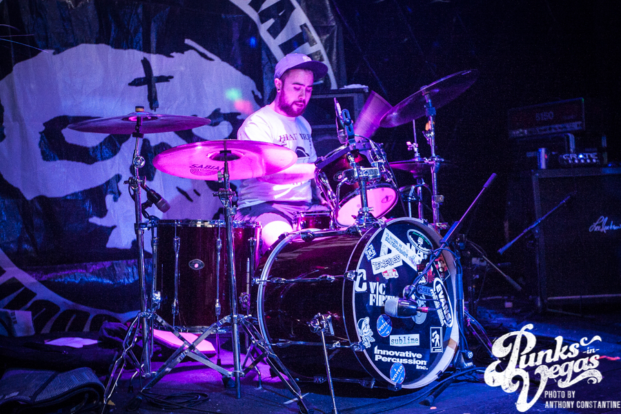 I had somehow never caught Sounds of Threat until Punk Rock Bowling about two weeks before this show. If you have not seen them before, I’ll tell you this much – you are missing out. Opening up with the song “Mental” was probably the perfect one word description of their set. Lead singer Jesse Young was jumping around the stage with the energy of someone like Jello Biafra or Ian Mackaye. As the set continued he jumped into the crowd to sing directly into people’s faces. He grabbed strangers and friends around their shoulders to sing with him, leaving them either excited to be part of the show or very uncomfortable. They ended their set with the metalish “Devil,” and guitarists Amy Pate and Aaron Prieto’s riffs came through the amps menacingly as bass player Tyler Whitacre stood on the edge of the stage screaming backup vocals at the crowd. Although the crowd was not in full force during the set, Sounds of Threat still played as if there was a packed house.