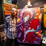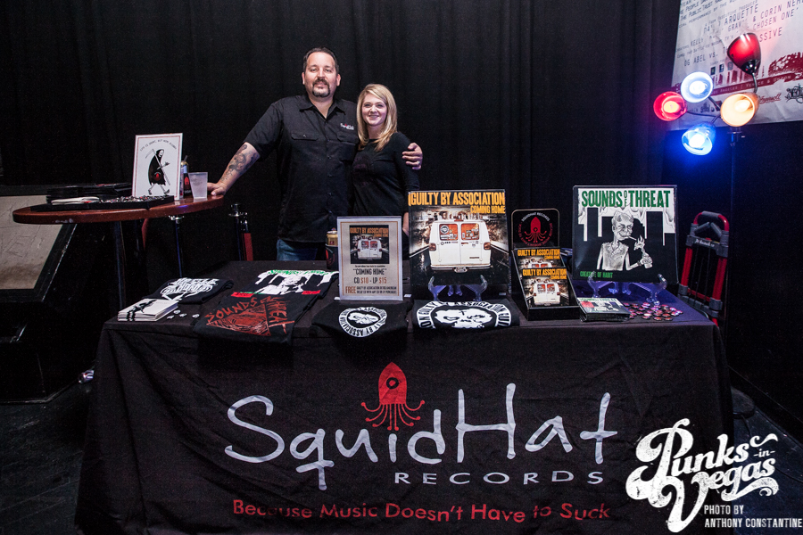 I arrived to Backstage Bar and Billiards a bit early for the Guilty By Association Coming Home album release show. I wasn’t alone, though. There were quite a few people at the bar and a few couples playing pool. The Squidhat Records booth had already been set up. Dead Girls and Robots had their art set up on a table, a few racks, and an easel with a mostly blank canvas on it set up for some live painting. Then I noticed members of Sounds of Threat getting on stage.
