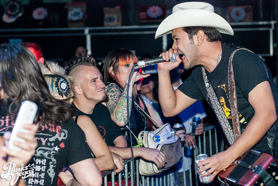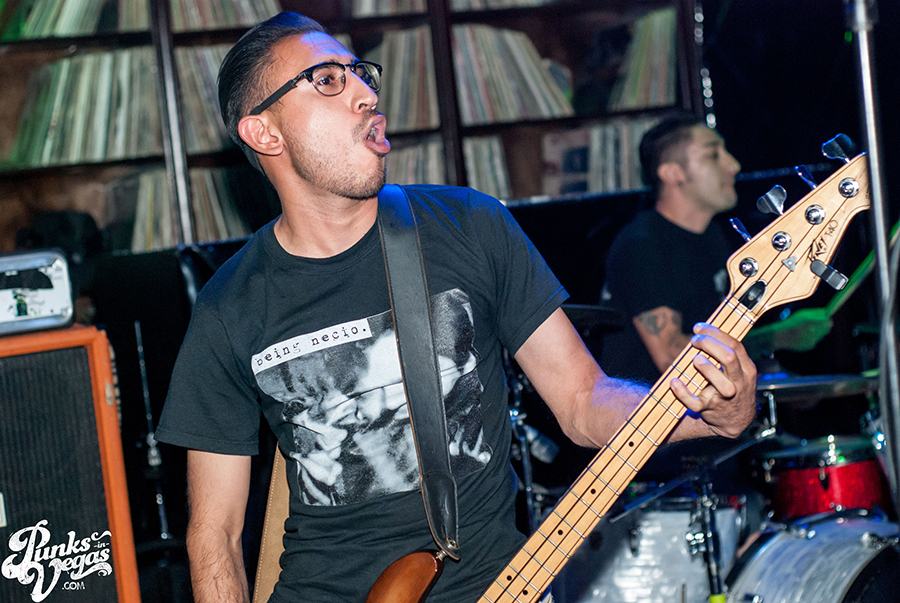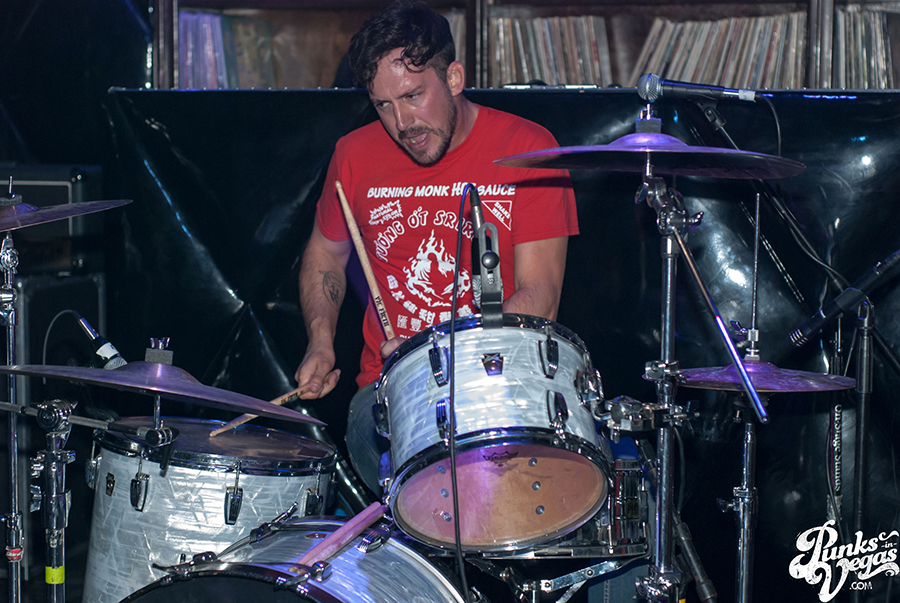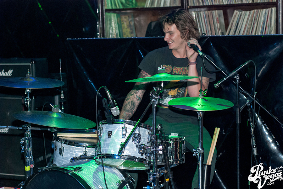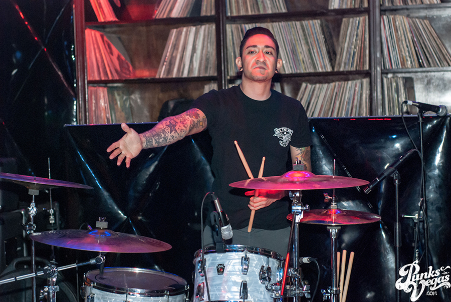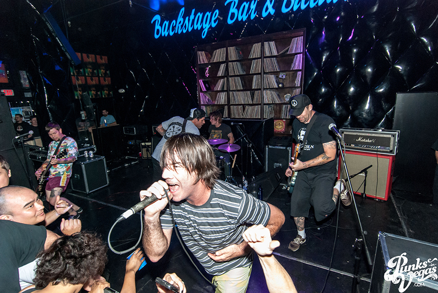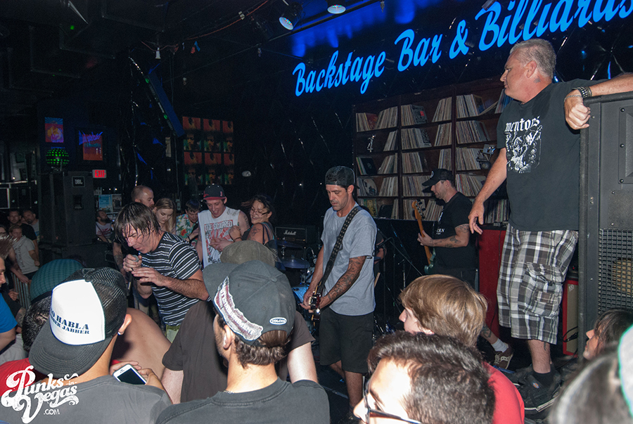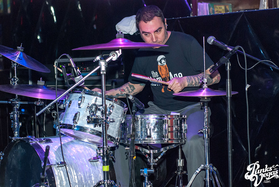 It’s starting to seem as though Las Vegas might be the second home for Huntington Beach, California’s Guttermouth. In the past year, they’ve played here four times, three in 2013 alone. Despite having seen several shows next door at the Fremont Country Club, this was my first time at Triple-B and I was immediately impressed by the venue, particularly the road-case themed furniture, bartop, tables, etc.  Impressed enough that while I was there I Googled buying some road-case furniture for my house (only to be disappointed that I can’t actually afford it). I can say without reservation that it’s the coolest venue I’ve been to in some time.