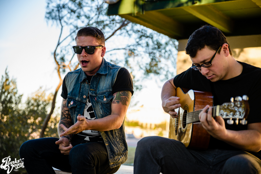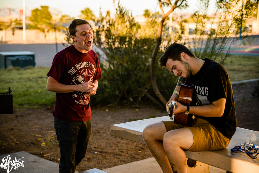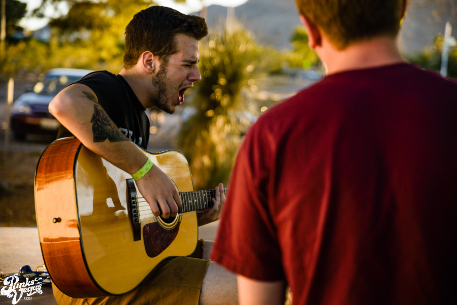 Before the Las Vegas date of “The Lost Boys” tour, pop punk bands  Handguns and A Loss for Words played a special acoustic set for one  lucky fan at the Eagle Hall’s adjacent park. I was lucky enough to be  invited along to capture the moment, in part due to the fact that the  bands borrowed the trusty PIV acoustic. Check out the  photos here and check back soon for our Stripped Down Sessions with these bands as well as Hunter Wallace’s coverage of the main show.