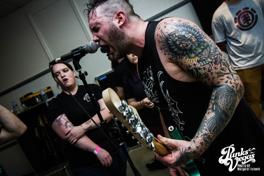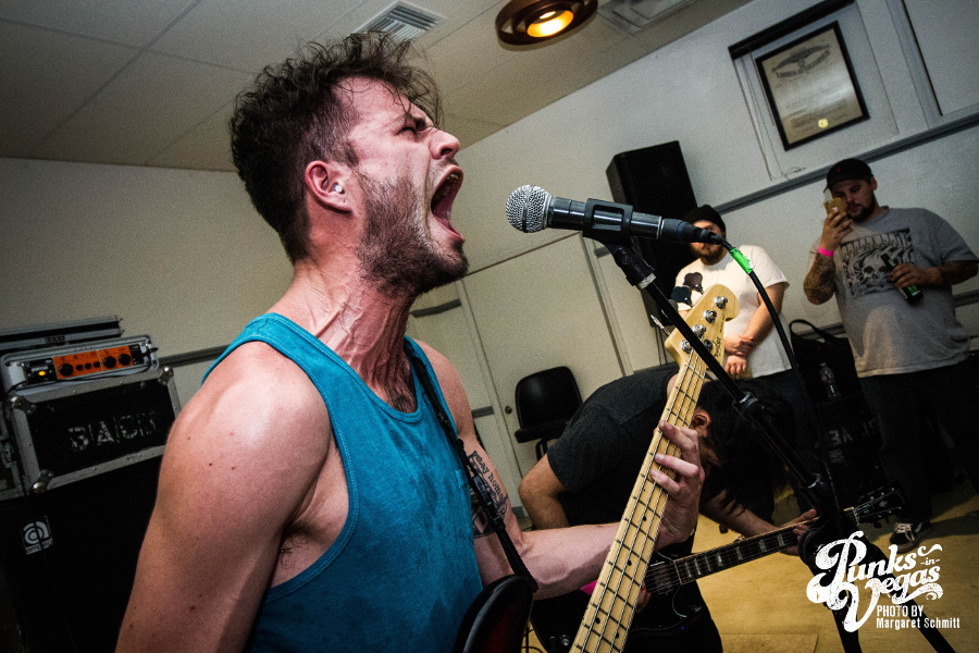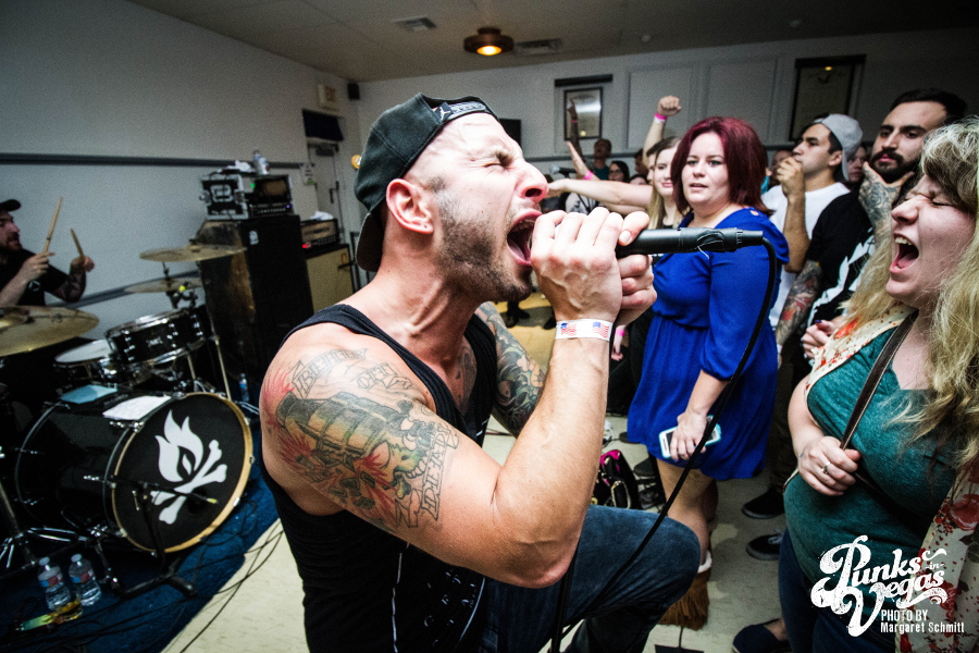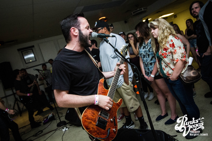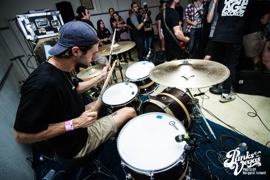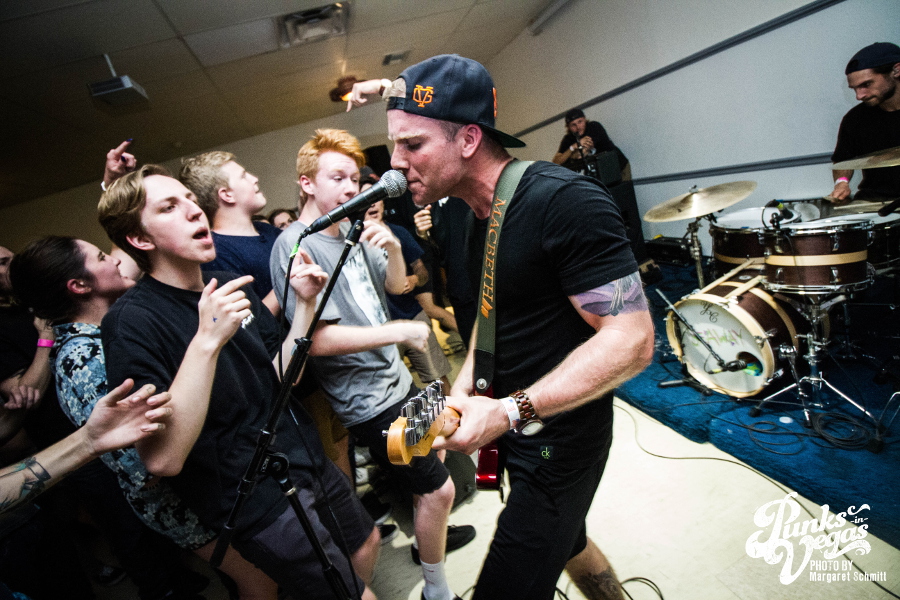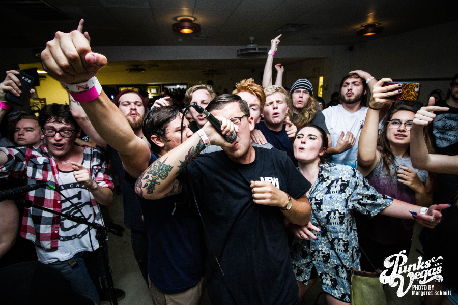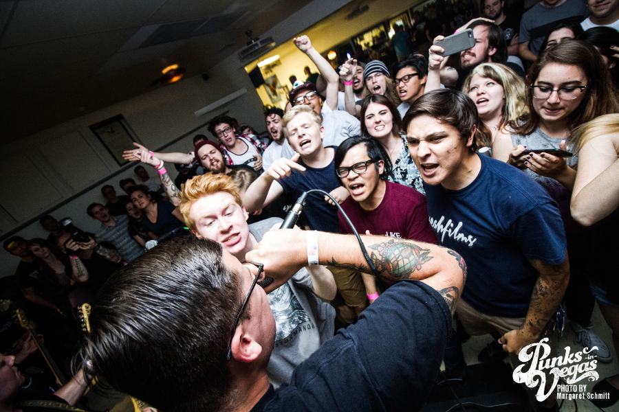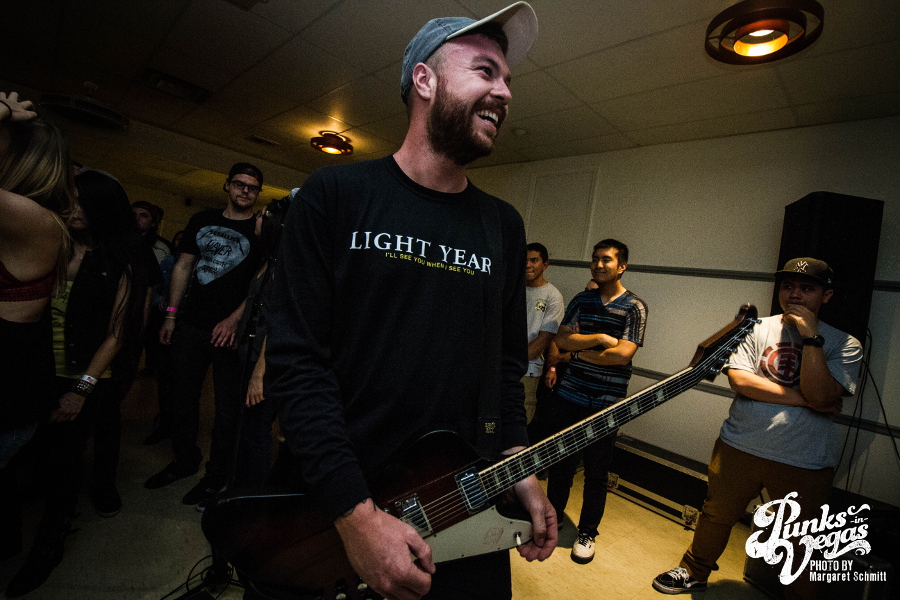 Finally, the night ended with Hit the Lights. Around since 2003, these pop punkers were the veterans of the night. They’re from Lima, OH, but the crowd showed them love like they were locals. The joy and excitement in the room was contagious, and this band’s unique blend of pop punk and rock was beyond refreshing. One of the upsides of a floor show is that frontman Nick Thompson could be as close to the crowd as he wanted to be, creating a closeness you just don’t get from larger venues. Fans were eager to sing along to songs like “Breathe In,” “Life on the Bottom” and “Bodybag.” This was the band’s second trip to Vegas on the singer’s birthday so one of the crew members bought shots to celebrate the best way you can.