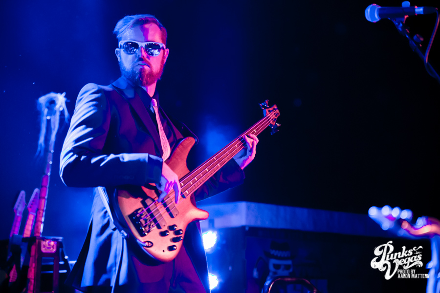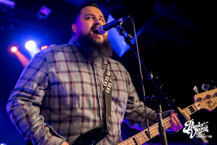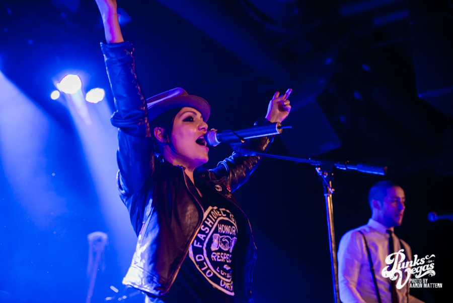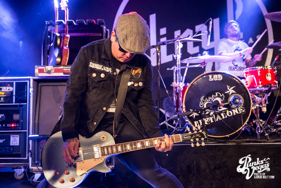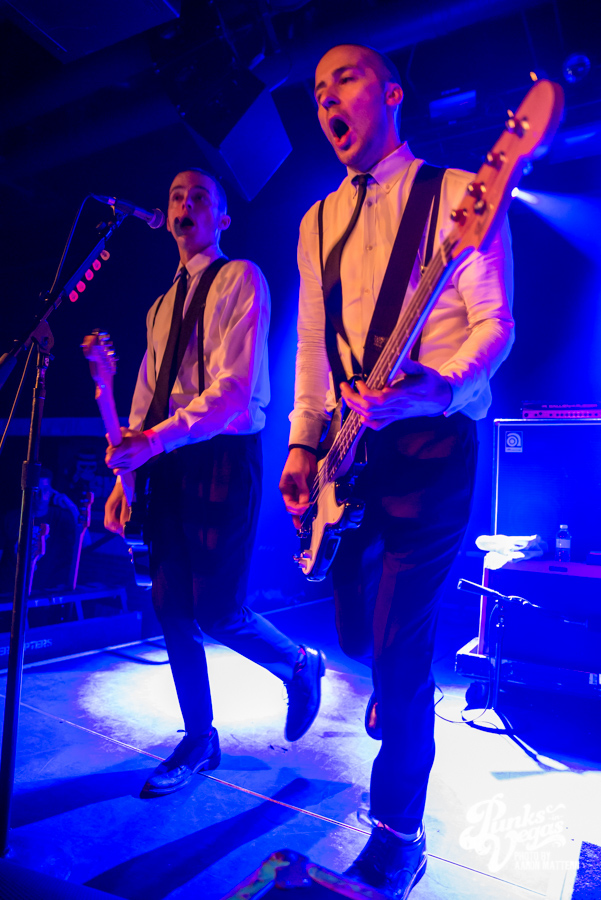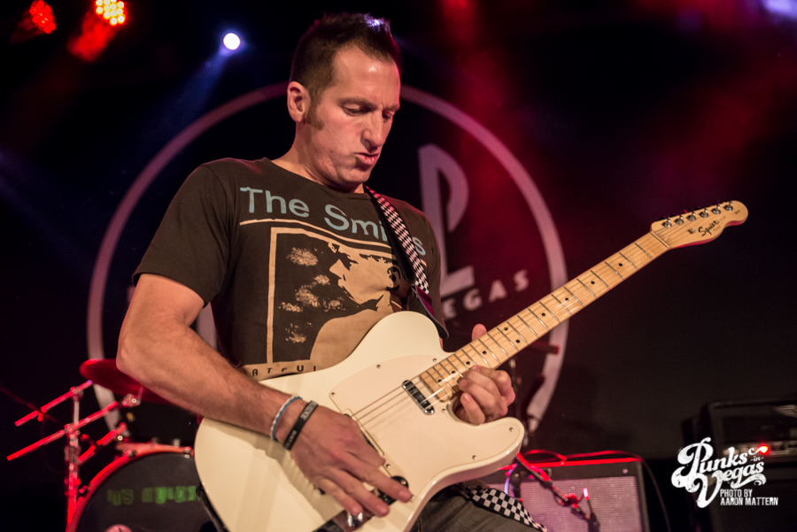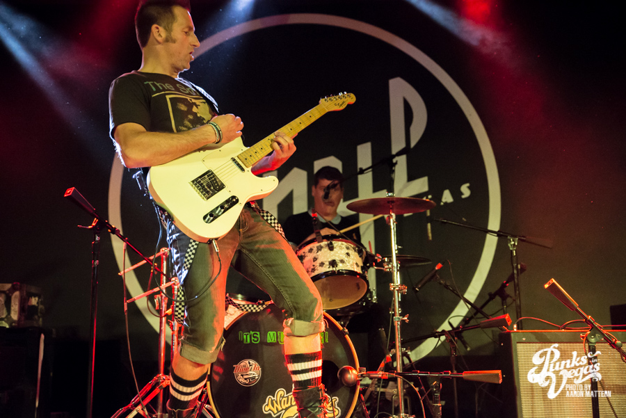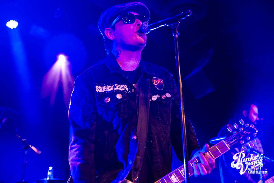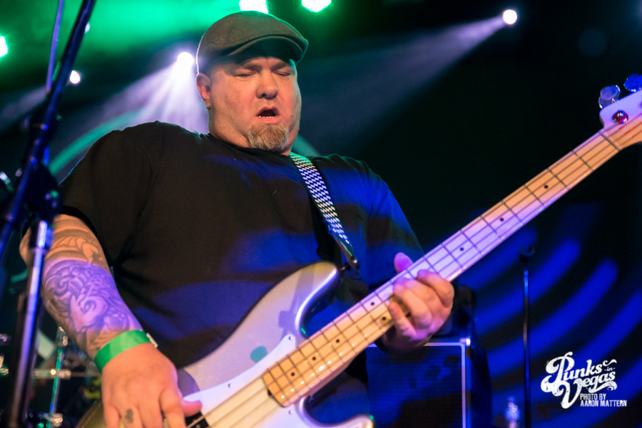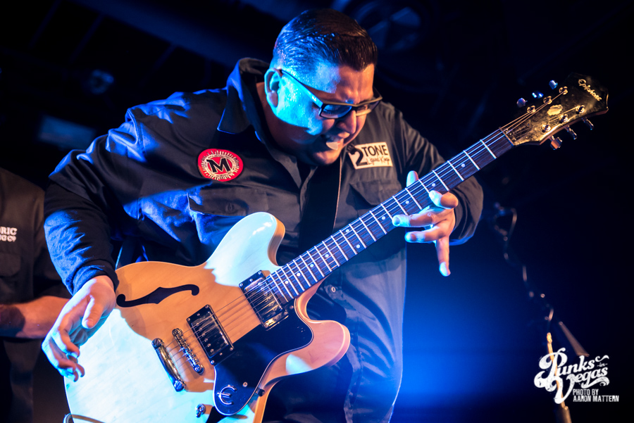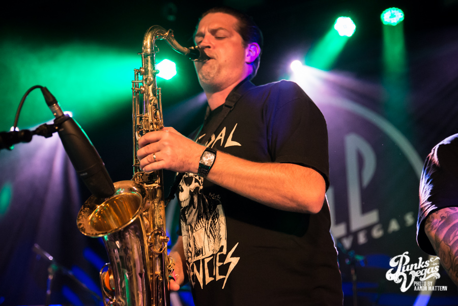 I was excited for Viva Ska Vegas in general, but the band I was most looking forward to was Left Alone, from Wilmington, California. The lead vocalist and guitarist, Elvis Cortez, formed the band back in 1996, and later went on to create his own record label, Smelvis Cortez. That night, he was bearing one of the classic hallmarks of punk rockers: black painted fingernails. It was when they played my favorite song, “City to City,” that I finally joined the skank pit. I immediately got elbowed in the face so hard my tooth chipped, but soon after, he bassist, Jimmy Jam, winked at me, so I couldn’t be too upset. At one point, Jimmy Jam traded out his electric for an upright bass, giving the songs a smoother sound, and later on, Aaron Peterson of O.S.S. made another appearance during their performance of “Leather Bound Book,” from their newest EP, Harbor Area.