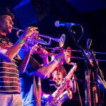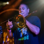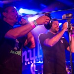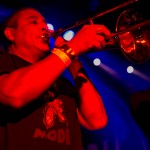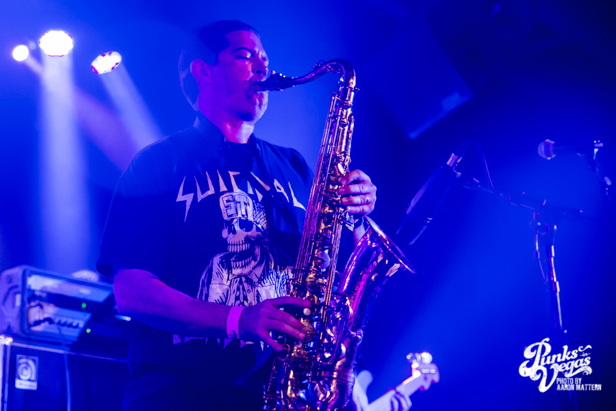 Next up was Oceanside Sound System from, unsurprisingly, Oceanside, California. Their sound was arguably the most punk-heavy of the night. I’m not really sure how exactly they managed to make a saxophone sound hardcore, but O.S.S. pulled it off. As their lead singer, Aaron Peterson said, they’re “punk rockers that play ska.” Fists were in the air during the entirety of “It’s a Revolution,” which has an obvious hardcore influence, and their Operation Ivy cover spurred a circle pit, with Peterson in the midst of it.