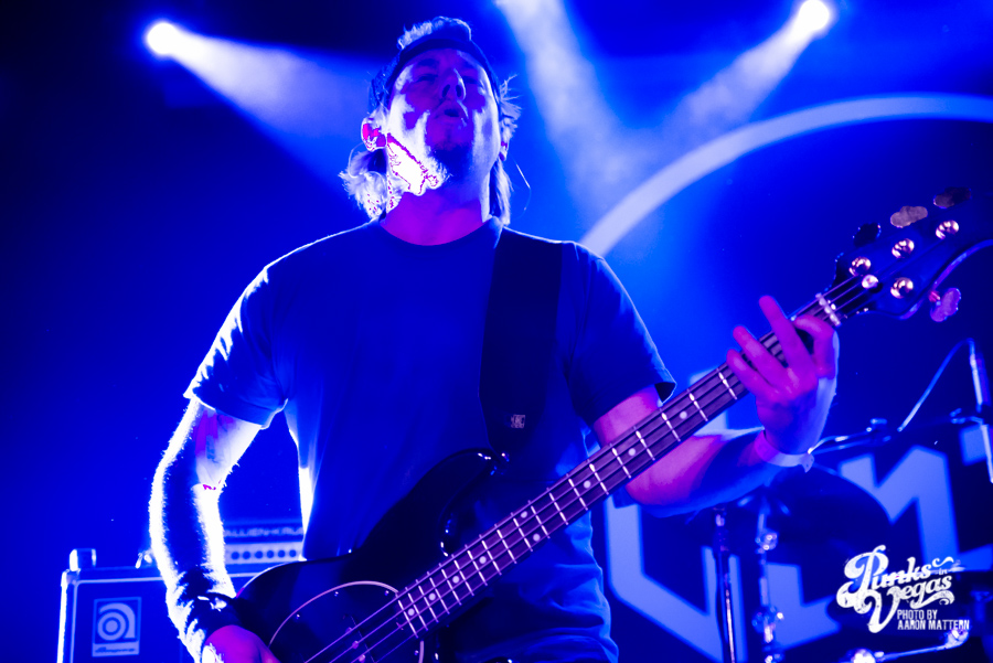 Brothers Kevin, Justin, and Jesse Bivona all sported identical buzz cuts and outfits consisting of white button ups, black pants, and black suspenders. The Interrupters’ incredibly high-energy classic punk sound, mixed with a good amount of ska, had the crowd going crazy in the circle pit for every song. The members of Left Alone came on during the set to give a birthday cake to guitarist Kevin Bivona, who asked the crowd to form an L.A. street punk circle pit as a birthday present. Of course, the audience obliged.