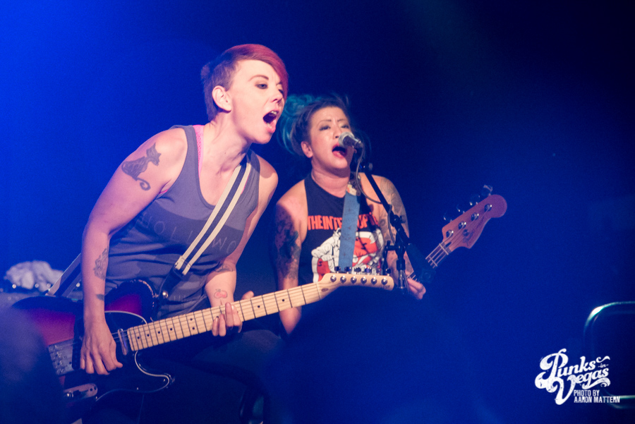 Since I decided to cover this show, I’ve been stressing about writing this review. That’s because I have a confession to make… As popular as they are, before this show, I couldn’t stand LA-based punk outfit Bad Cop/Bad Cop. I didn’t actually know many of their songs, except for “Nightmare,” which I’m not exactly a huge fan of, but I just didn’t understand the hype, chalking up their popularity to being an all-woman band in a scene full of horny single guys. After seeing them live, though, I realized that it was really just the one song that I disliked. I’m a total sucker for both punk women and live music, and it’s undeniable that Bad Cop/Bad Cop can put on an entertaining show. As a non-musician, I have a hard time telling if someone is anything besides “awful” and “good, I think,” but Bad Cop/Bad Cop’s drummer, Myra Gallarza, is ridiculously good. She impressed me so much with how clearly talented she was. I was equally, if not more, enthralled with bassist Linh Le, which is probably pretty narcissistic since we’re both Asian women with blue/green hair and a love of punk. If Linh is me in 10-15 years, though, that means I’ll still look good with blue hair, so I’ll take it.