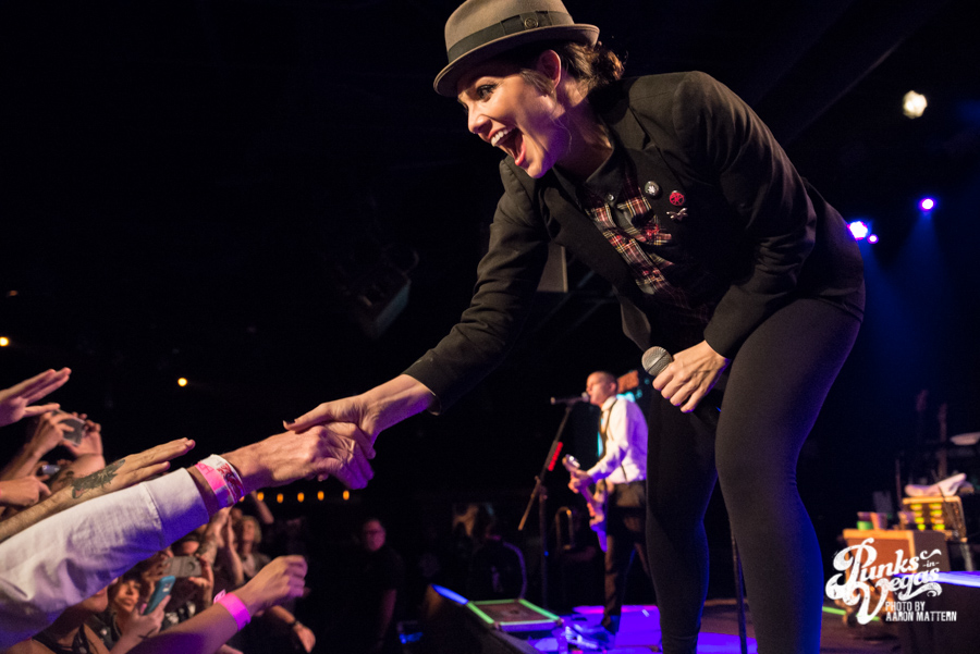 Finally, the headlining band of the night, the Interrupters, launched into “A Friend Like Me” with little delay. The sudden energy from the band and the crowd proved to be more than a short burst, as it continued throughout the rest of their set. I saw The Interrupters at Viva Ska Vegas last year, where they were awesome, but seemed kind of like “Aimee Interrupter and her back-up band.” This time around, they were way more cohesive, and the Bivona brothers (who cover guitar, bass, and drums) were spotlighted more often. The guitarist and bassist were constantly coming to the front of the stage to show off a bit. And they had good reason to be so upbeat (or as my friend who came to the show with me would say, “juiced”): it was their 100th show since releasing their sophomore album, Say It Out Loud, in June. At least, that’s what they said, but even if it’s that not true, they still had a great set.