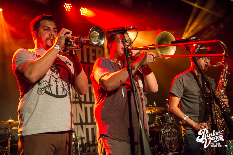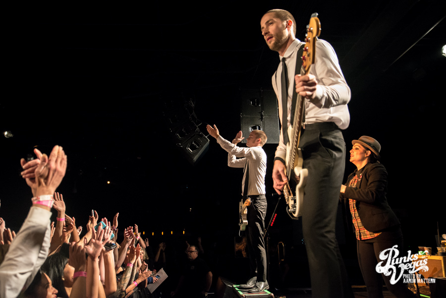 On Thanksgiving Eve, I rushed out of class and to the airport to make my 4:10 p.m. flight from Reno to Vegas. Less than two hours after the plane landed, I was at Vinyl at the Hard Rock for my first ska show in months. The entrance to the venue was congested with what I called “the fresh crop of ska kids”- young teenagers with patch-covered vests and multiple piercings. The opposing ends of the age spectrum were in attendance as well: three or four little girls sporting pink safety headphones shared the space with an adorable and dapperly dressed older couple. A quick survey of the crowd made it quite obvious that most were there for the Interrupters, as many people were wearing t-shirts supporting the band. Of course, as the headliners, the Interrupters were slated to play last, but the bands preceding them were nothing to scoff at, either.