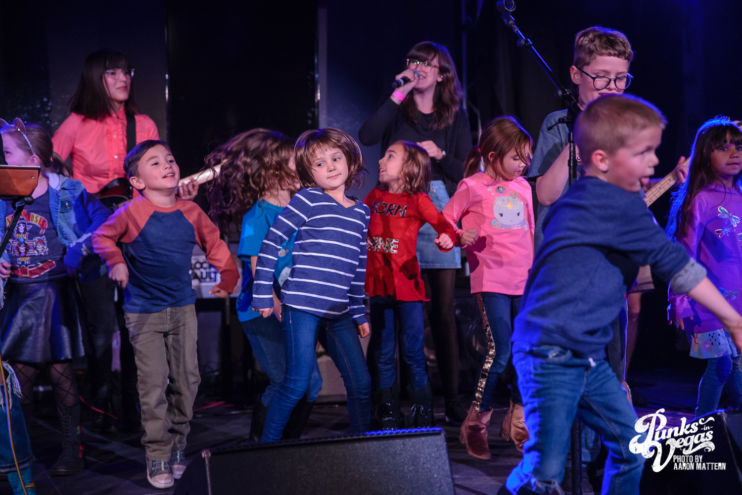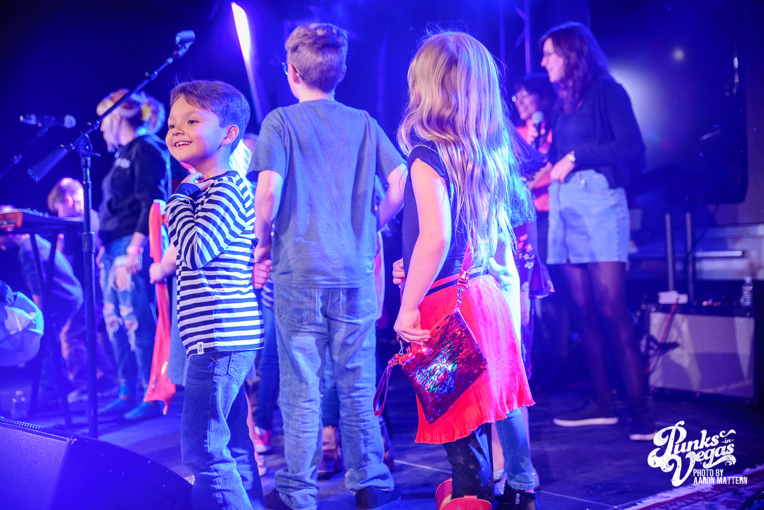 Despite not being a children’s band, Kitty Kat interacted with the pint-sized audience like pros. At one point, bassist Jonathan McMaster brought his magic, bass-playing fingers to the edge of the short stage to allow the little music fans an opportunity to “play along with the band.” The band later invited all the kids on stage to bop and dance around. And to not leave the oldheads out of the fun, they threw in a cover of Modern English’s “I Melt with You.”