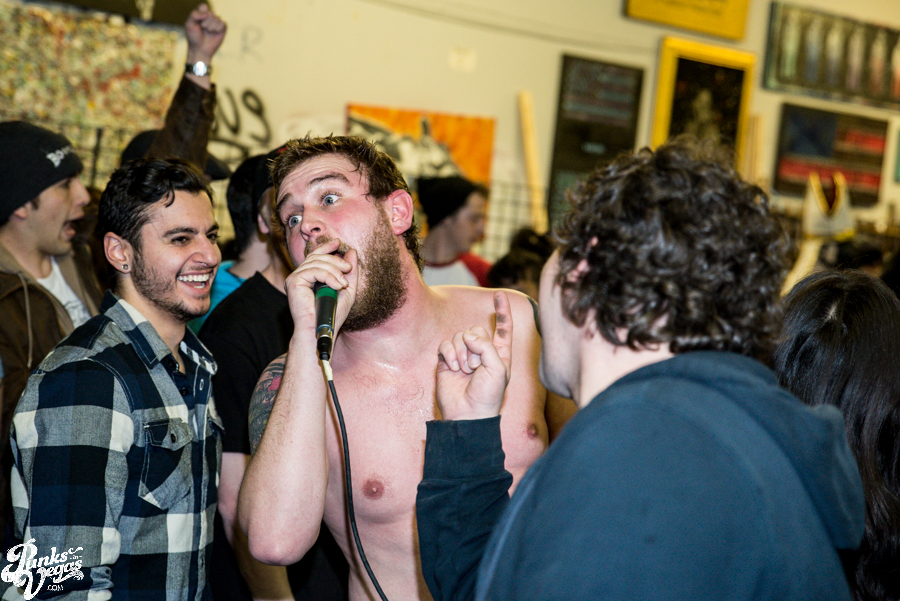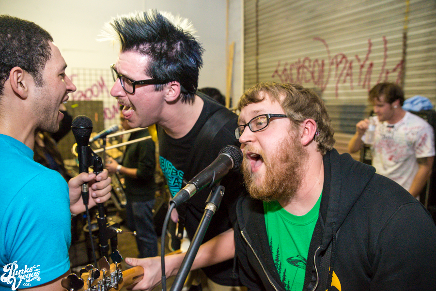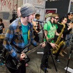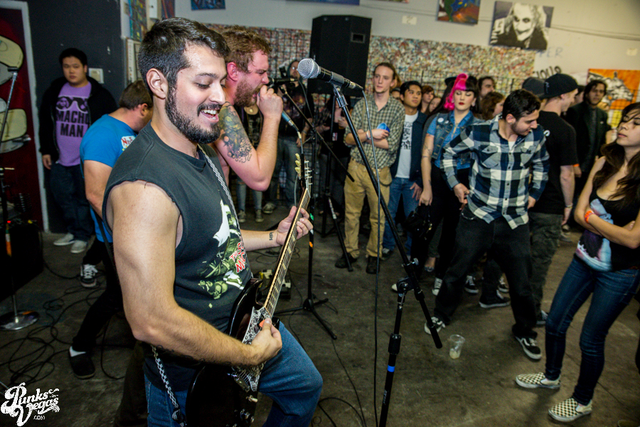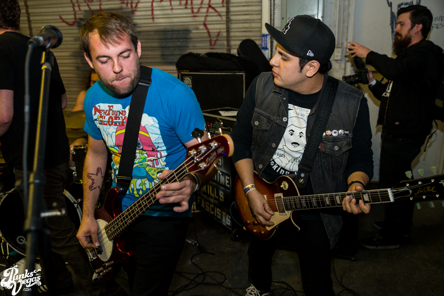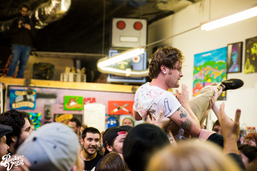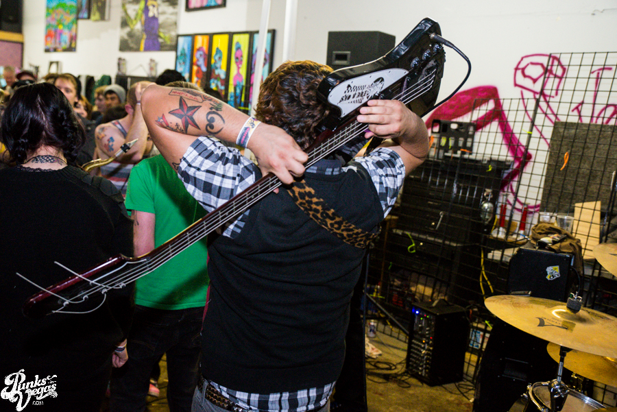 Now in their sixth year of treating us to a frenzied blend of punk, hardcore and ska, Hard Pipe Hitters continued the party vibe. If you turn your iTunes to “R” and play Rancid’s two self-titled albums back-to-back, you’d have a decent idea of what Hard Pipe Hitters sound like (but if you’re going to do that, you might as well just turn to “H” because you should already have their 3-song demo, right?). I’ve always been impressed by how successfully they blend their various influences, from nihilistic to jubilant, from Municipal Waste to New Found Glory (check out bass player Rory Child’s sweet NFG/Adventure Time hybrid shirt in the gallery and join me in being jealous) into a unified sound all its own. They were the first band of the night to incite a circle pit and had the whole crowd singing along to the lyrically minimal “Chicken and Waffles.”