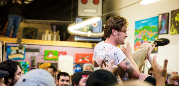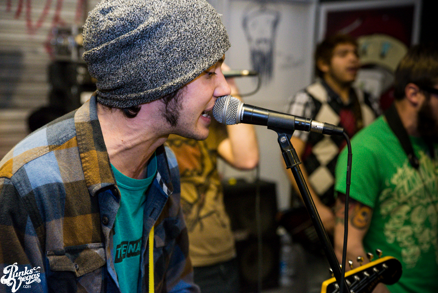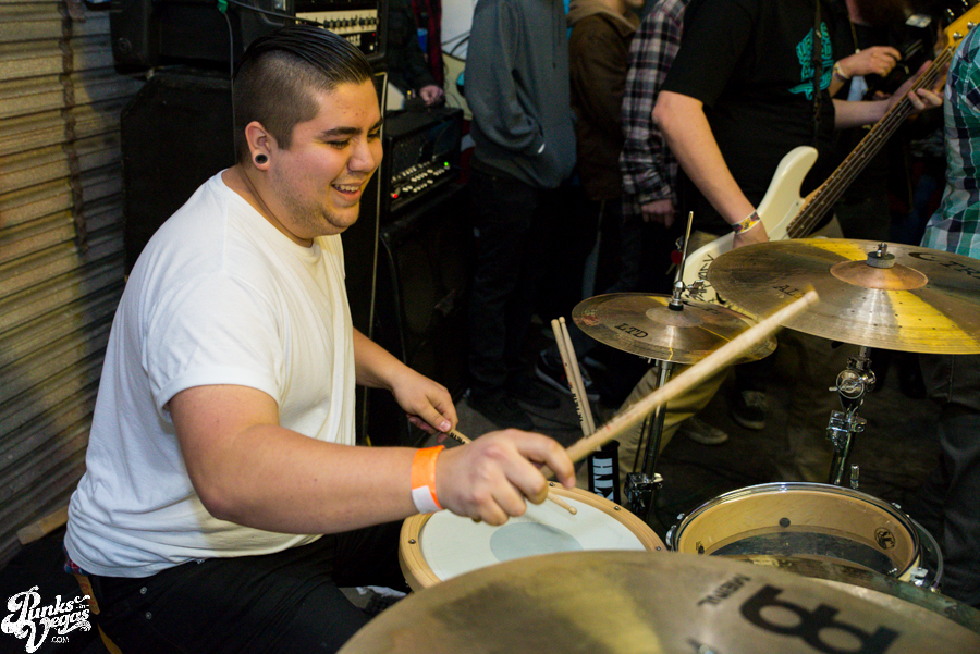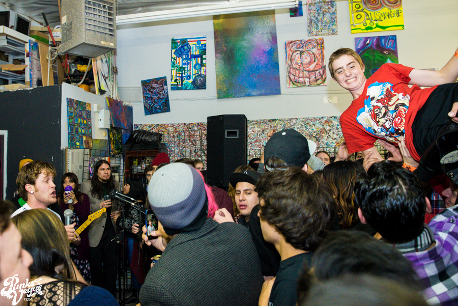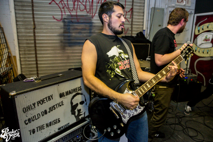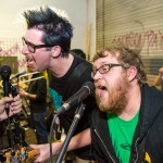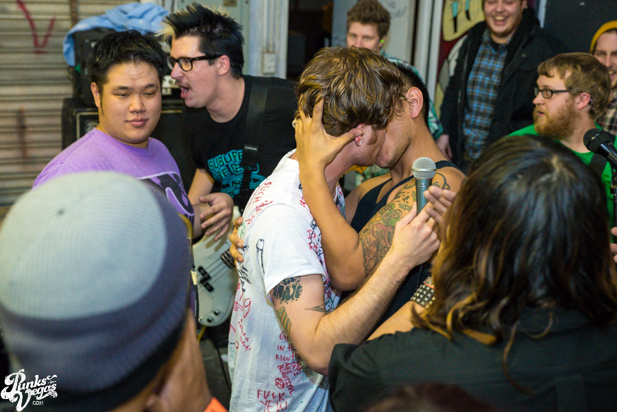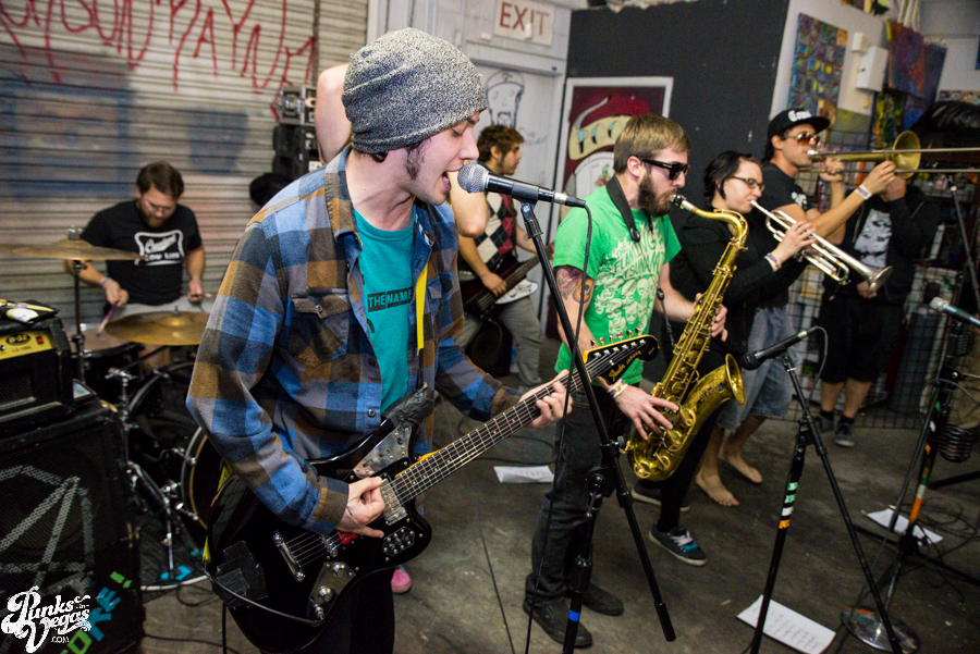 Now in their sixth year of treating us to a frenzied blend of punk, hardcore and ska, Hard Pipe Hitters continued the party vibe. If you turn your iTunes to “R” and play Rancid’s two self-titled albums back-to-back, you’d have a decent idea of what Hard Pipe Hitters sound like (but if you’re going to do that, you might as well just turn to “H” because you should already have their 3-song demo, right?). I’ve always been impressed by how successfully they blend their various influences, from nihilistic to jubilant, from Municipal Waste to New Found Glory (check out bass player Rory Child’s sweet NFG/Adventure Time hybrid shirt in the gallery and join me in being jealous) into a unified sound all its own. They were the first band of the night to incite a circle pit and had the whole crowd singing along to the lyrically minimal “Chicken and Waffles.”