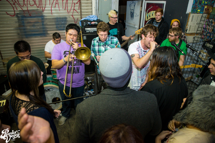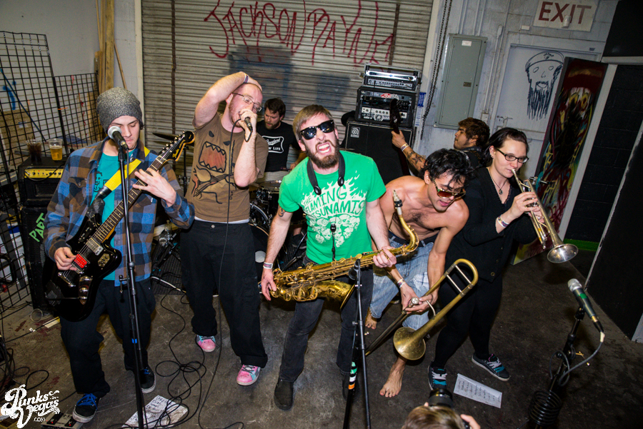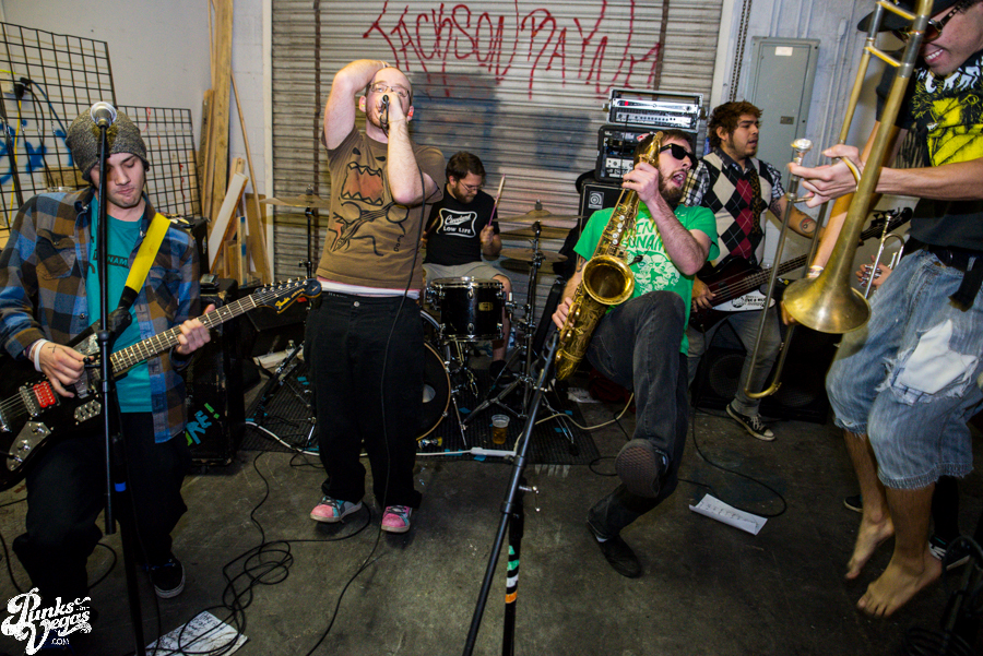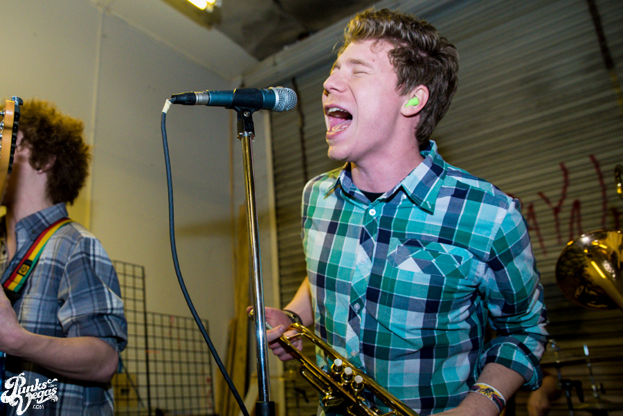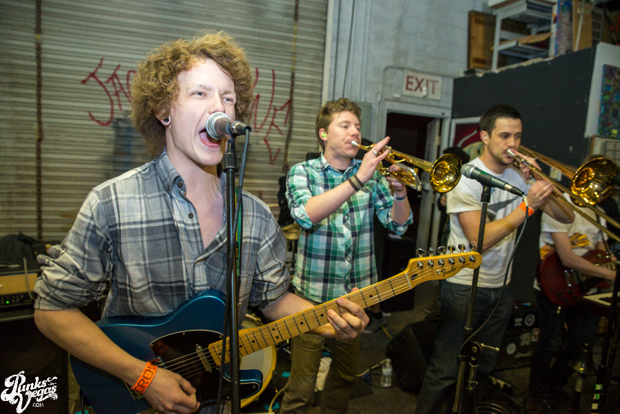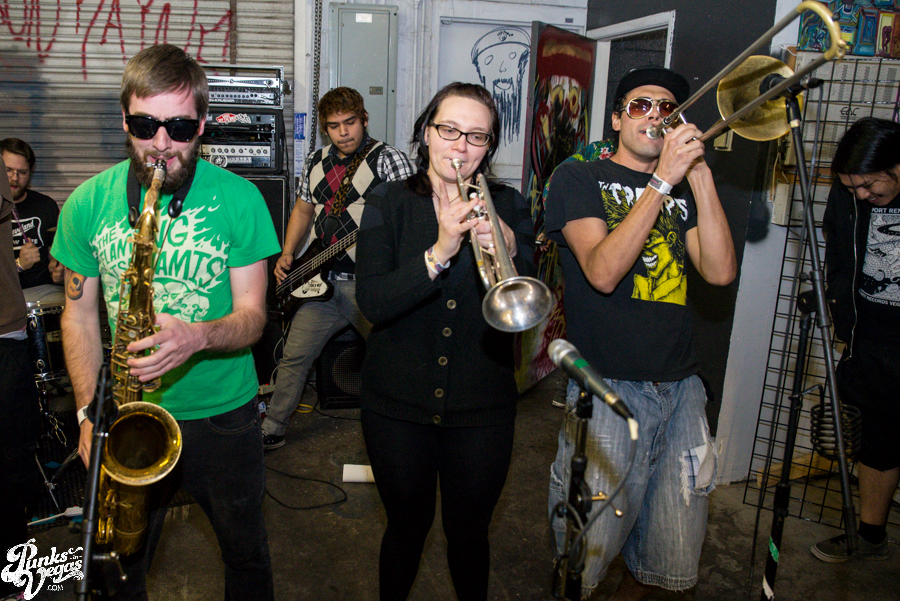 The first of the night’s touring bands, The A-Oks came to us via Denver to play a brand of rambunctious, youthful ska in the vein of, well, the bulk of the mainstream 3rd wave. But to be more specific, for a moment there, I felt like I was whisked away by a blue police box and dropped off in the mid-to-late 90s to see one of the earliest shows by pop/ska acts like The Hippos (before they went new wave) or Telegraph and Slapstick, or maybe a few years later when High School Football Heroes were still doing their thing. Seemingly suffering from a fear of gravity, these guys and girls spent most of their swift set with all feet in the air. After claiming to have invented the circle pit, vocalist Mark Swan and trombone player Matt Sanchez split their time rocking out up front and joining the dance frenzie. Between The A-Oks’ boisterous performance and the set put on by their fellow Denverites in The Potato Pirates at last year’s Viva Ska Vegas I have to imagine some svengali is up in Colorado teaching a seminars on stage presence. If you like fun and they’re coming through your town, I highly recommend checking them out (and in the meantime, give their new live LP a listen over at For the Love of Punk).
