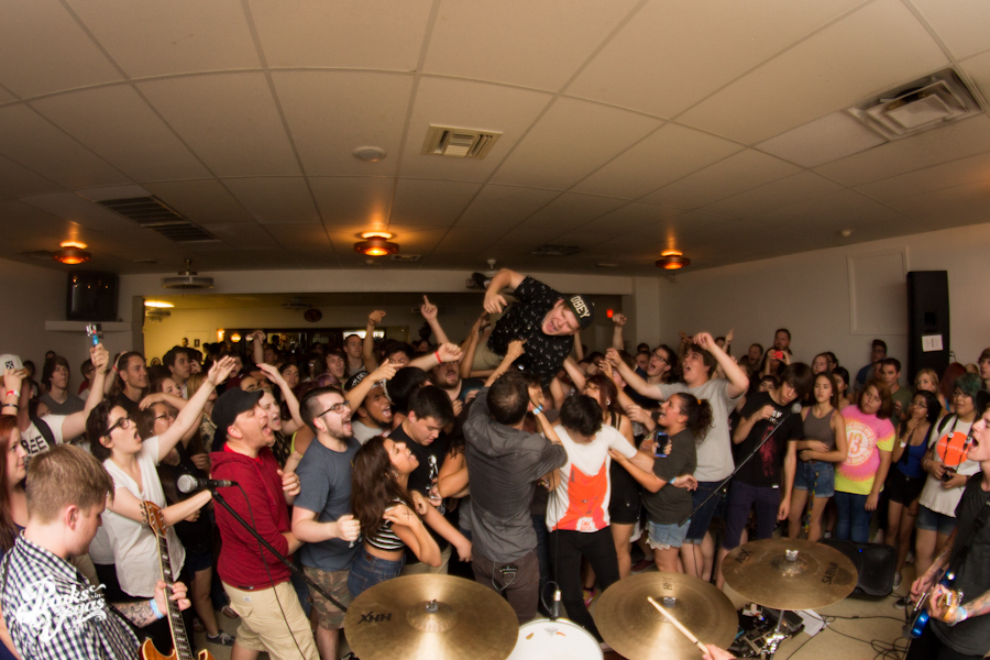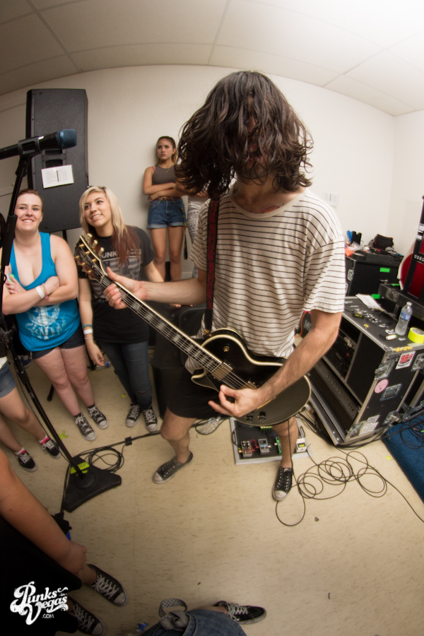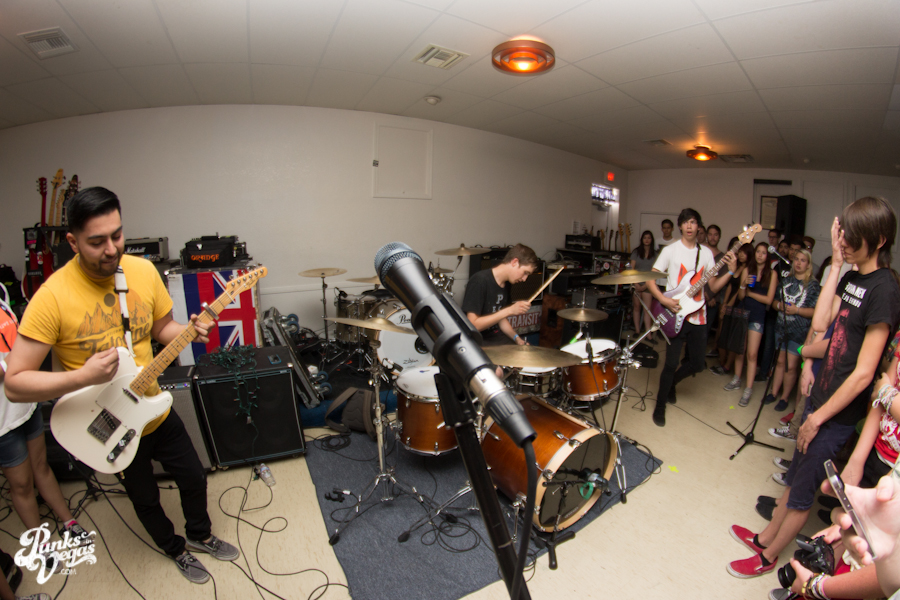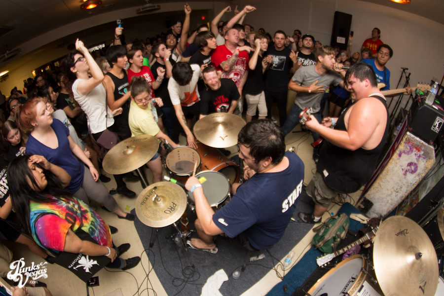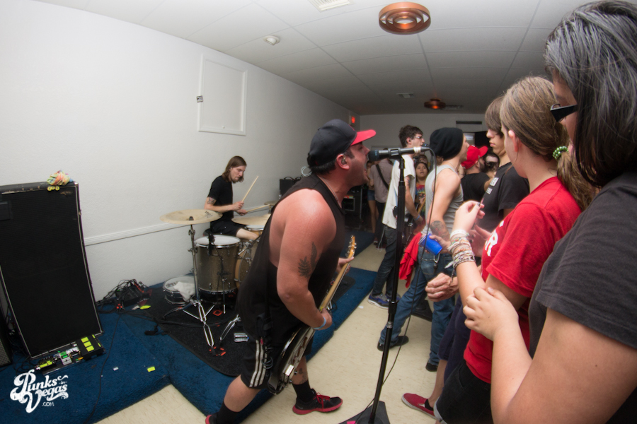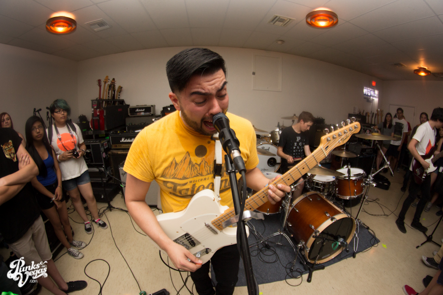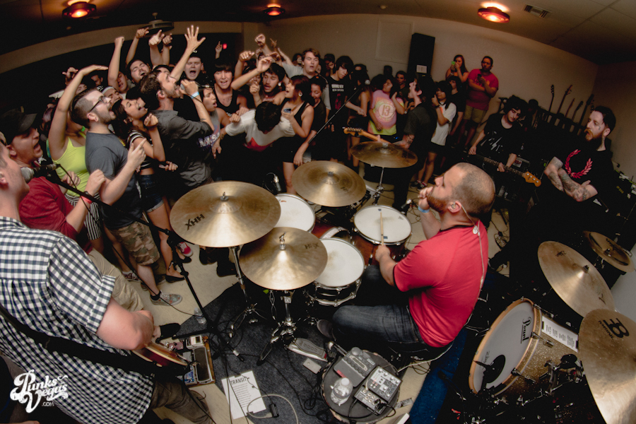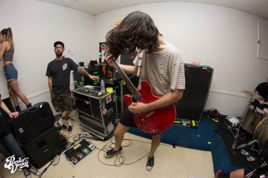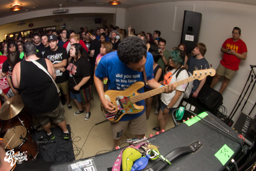 The first touring band of the night was Chicago’s Knuckle Puck. Usually as an opening touring band you have the select few fans that are ahead of the game and already know the words to everything you’ve put out, but tonight was an exception – their crowd was enormous. Maybe it was the few words exchanged between them and Austin Jeffers of local pop punk stalwarts Last Call before their set (Knuckle Puck are self-proclaimed fans of the Vegas pop punk group), or the turn out that got them going, but they powered through their set with such energy that when you went outside afterwards, the desert heat felt cool against your sweat soaked skin. Between each song, frontman Joe Taylor thanked everyone for the great energy they provided, while politely reminding everyone to keep their distance from the drum set as the lack of stage and the rush of fans was causing the vocalist to be slammed into drummer John Siorek’s kit. Taylor told the crowd how it reminded the band of a venue back home, Centennial Lanes, which was nice for them to feel at home while over 1,700 miles away.