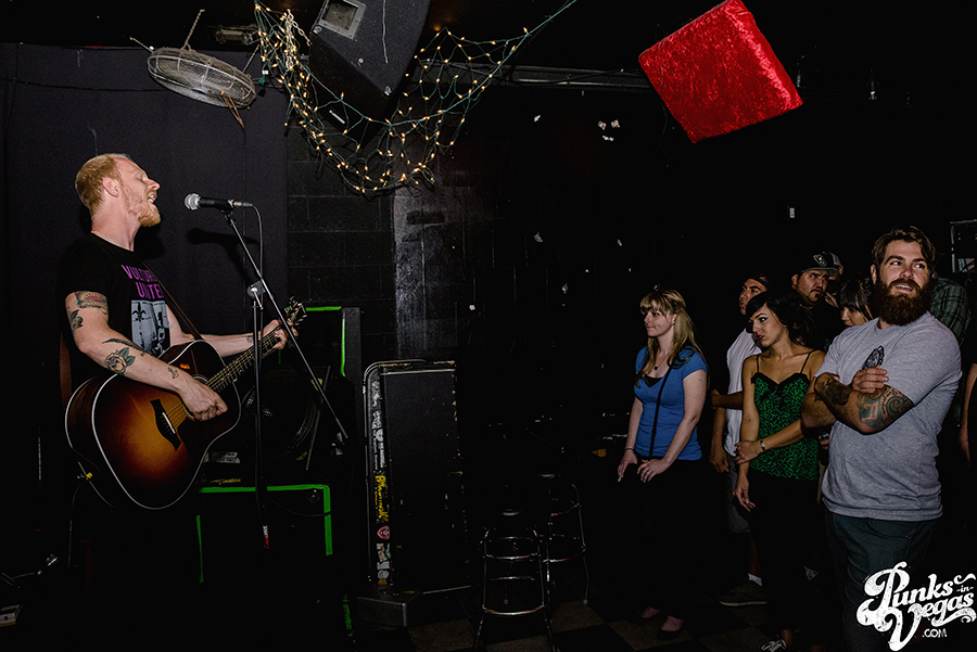 Recent Red Scare signee Sam Russo was a bit of the odd man out on this tour musically, taking the stage with only his acoustic guitar. Hailing from the UK, Russo is a folk troubadour, with working-class lyrics reminiscent of Revival Tour regulars Chuck Ragan and Tim Barry but with a more delicate sound in the vein of John K. Samson and John Darnielle. The crowd’s unfamiliarity with him meant a lot of loud voices conversing over his singing which is unfortunate, but those who were up front paying attention were definitely won over. If Chuck decides to do another Revival Tour, Russo definitely needs to be on the bill.