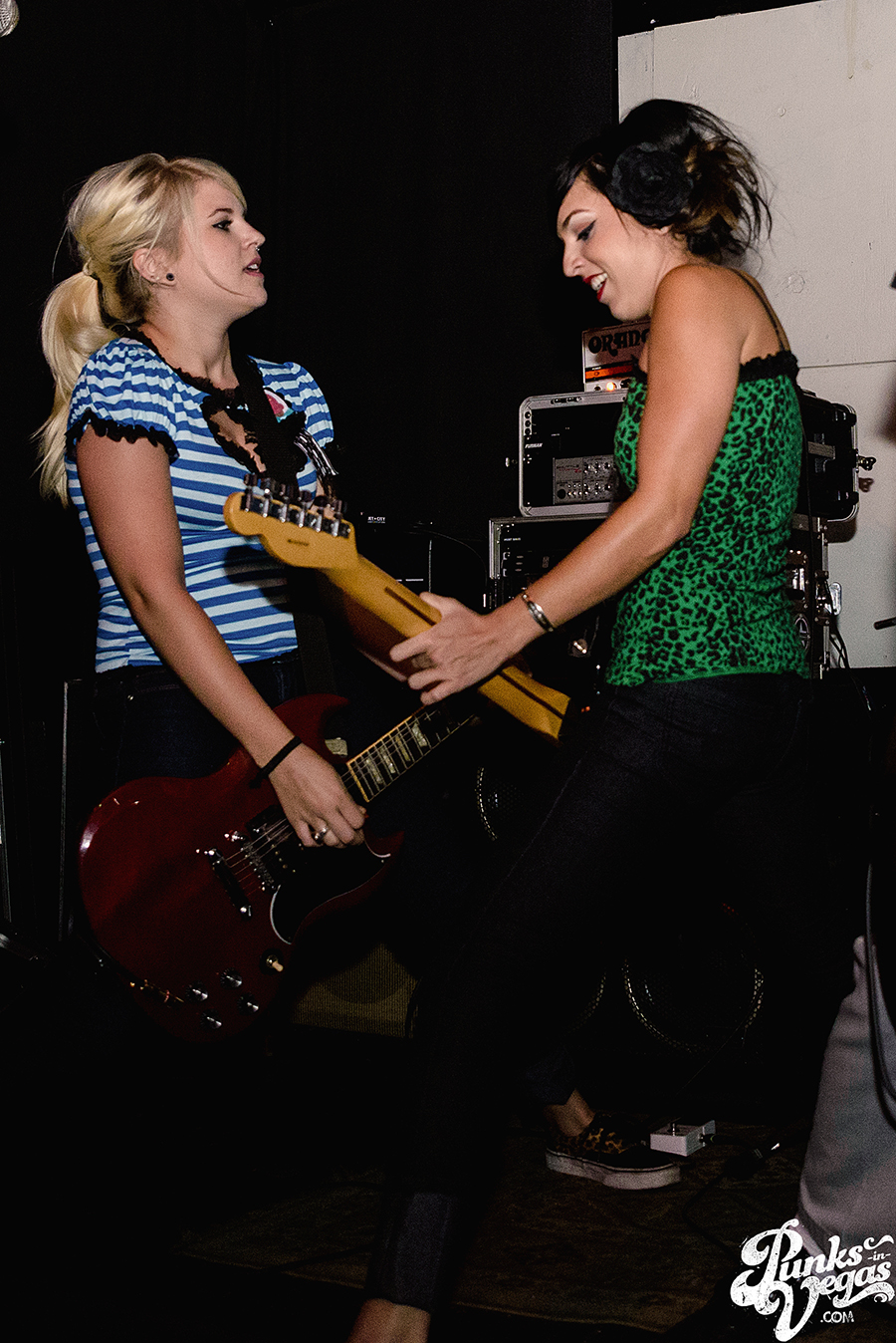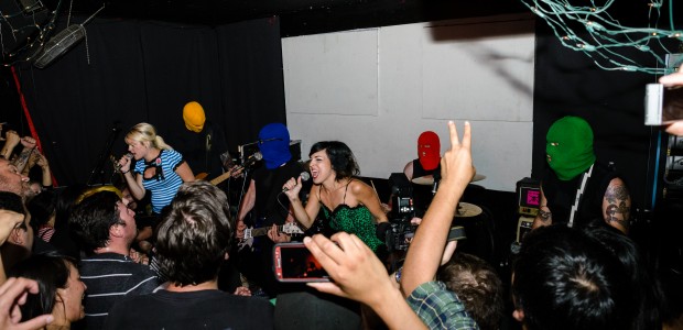 Songs from the band’s excellent 2012 self-titled full length made up the bulk of the set, with favorites like “How Do I Get to You” and “I Don’t Want to Be Alone Tonight” getting huge responses. Even Officer Bradford joined in on the fun, leaping headfirst into the thickest part of the crowd and party boy-style dancing and crowd surfing. Maura Weaver’s part on “Heart Shaped Guitar” was filled in by The Bombpops’ awesome Poli van Dam and Jen Razavi.